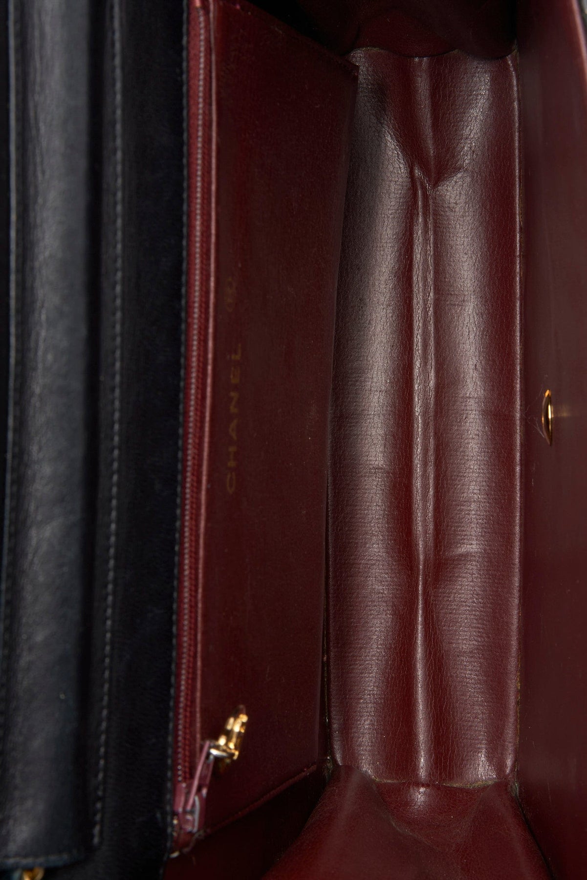 This bag is in overall fair vintage condition, with some minor scratches to the leather and some scuffs to the leather on the base corners. The CC on one side has come loose at the top two points.