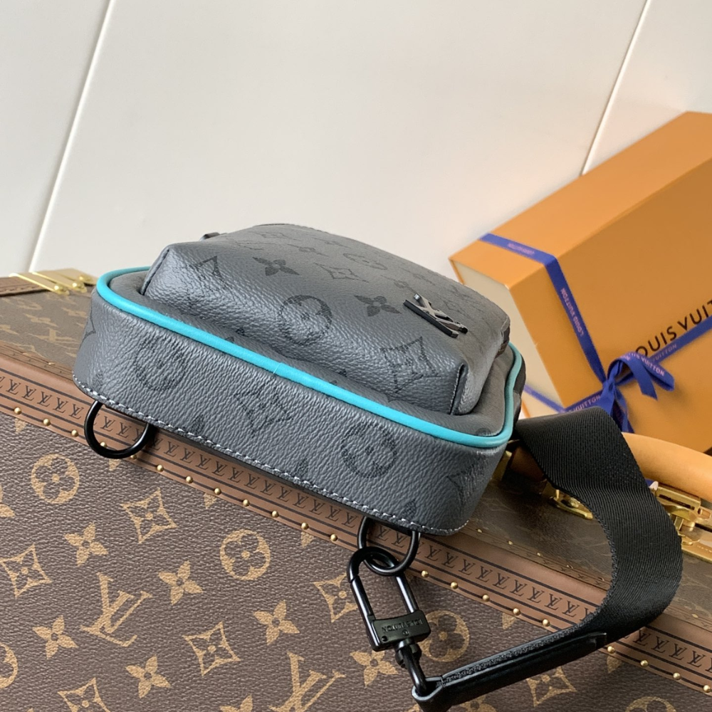 Measurements: 6.75" x 4.5" x 2.5"; strap drop: 8.5"