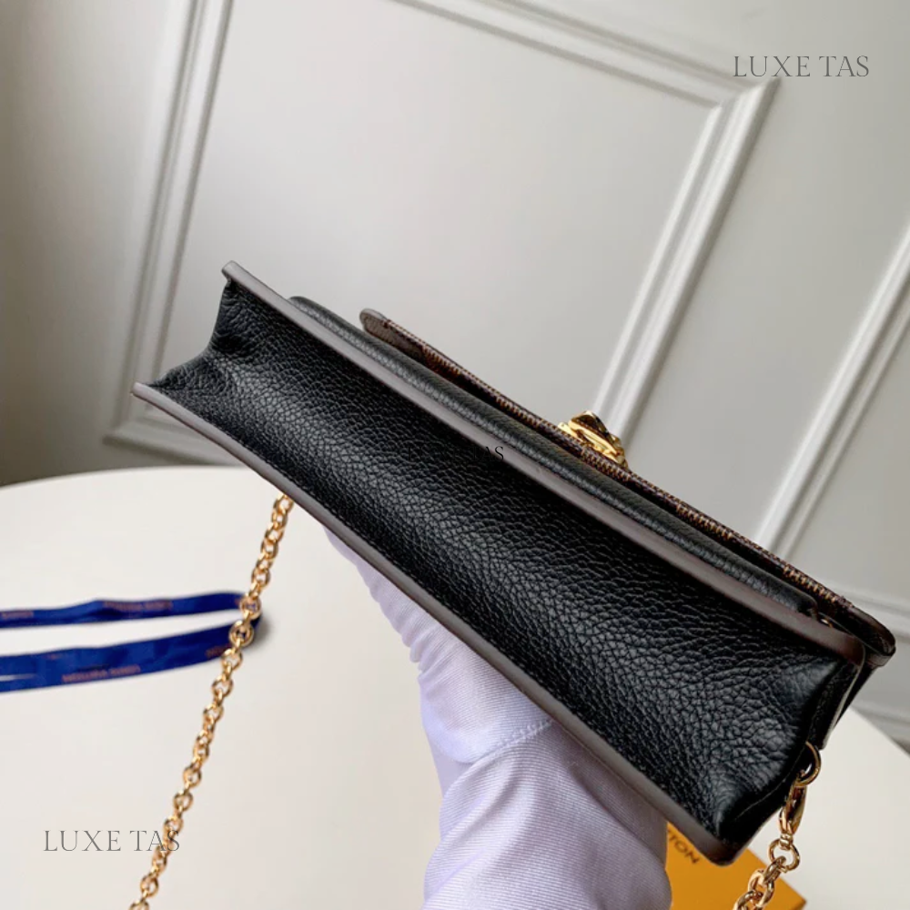 The black lambskin leather is beautiful and silky soft. The gold coloured hardware is also in good condition, with minor signs of wear.