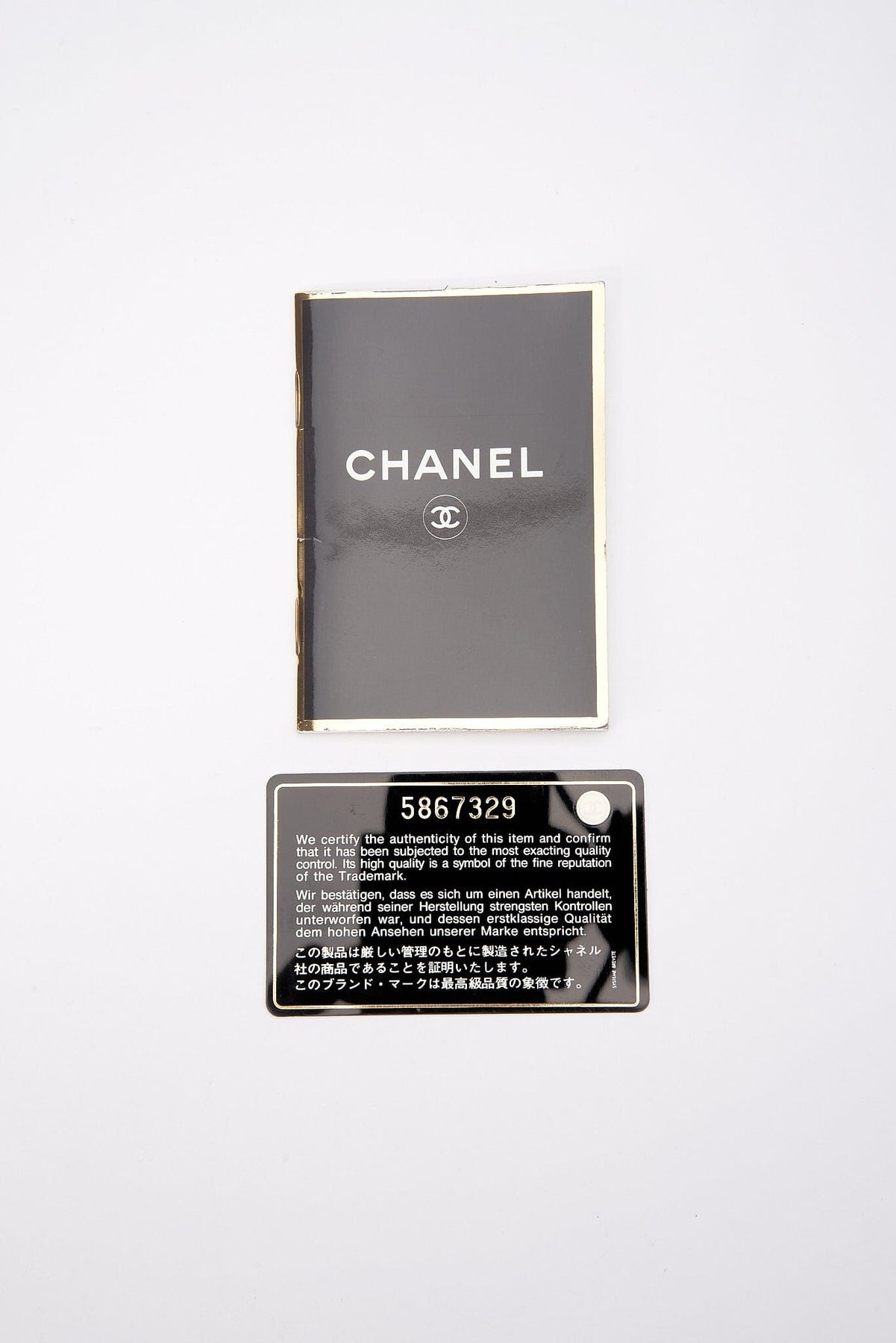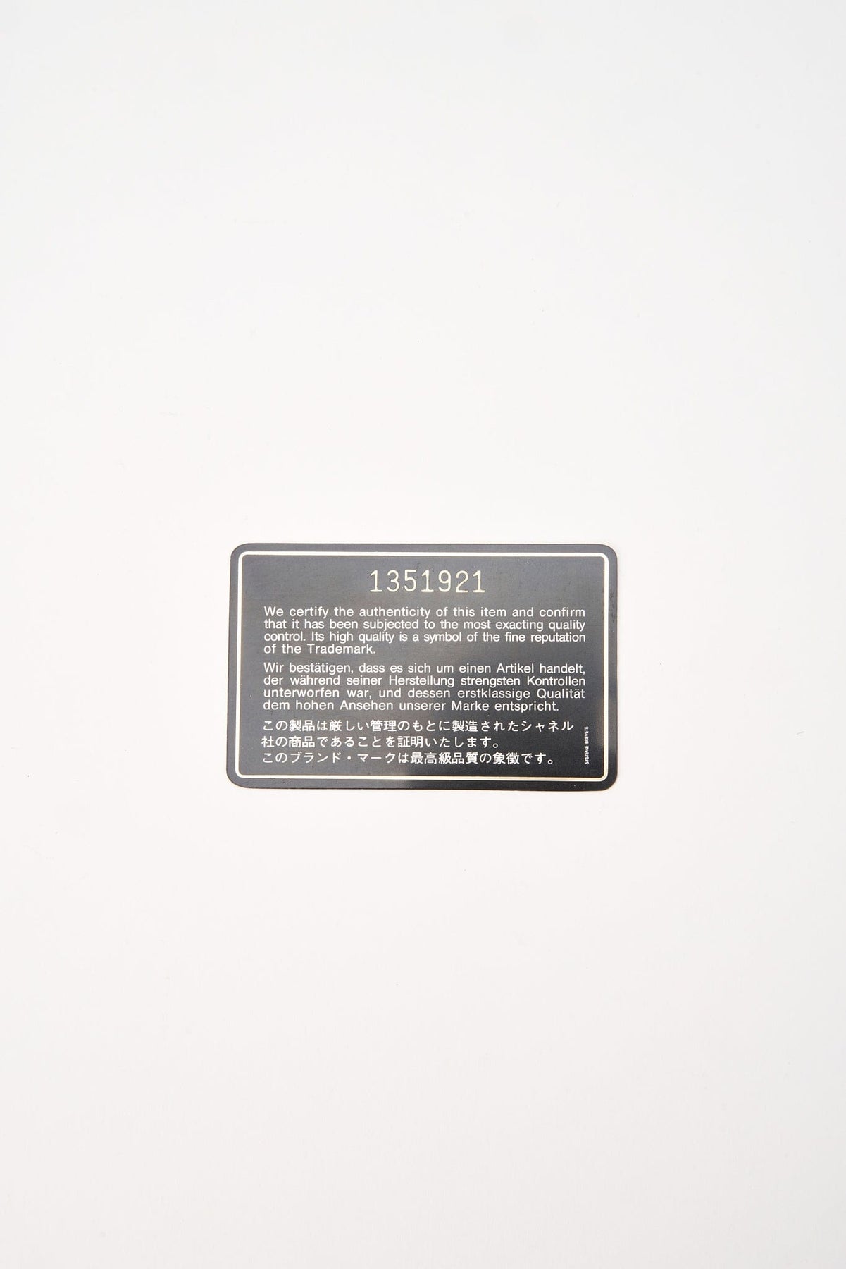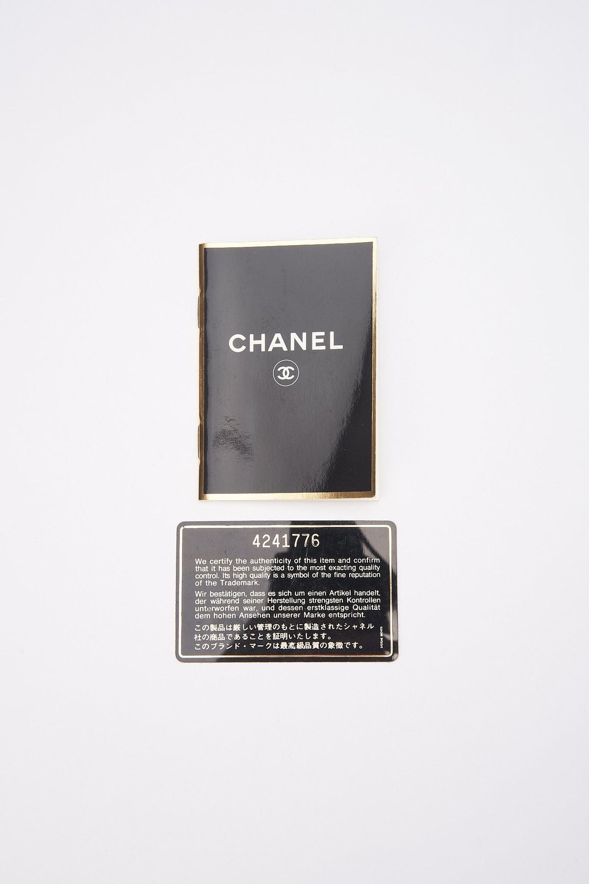 The serial number on the card tells us the bag was made between 1991 and 1994. This bag is in good vintage condition with some minor signs of use. The hallmark on the CC turn lock confirms the gold hardware is plated in 24K gold, a real collectors item. Before 2008, Chanel Classic Flaps with gold coloured hardware (chains, clasps, grommets, and CC turn locks) were all plated in real 24K gold.