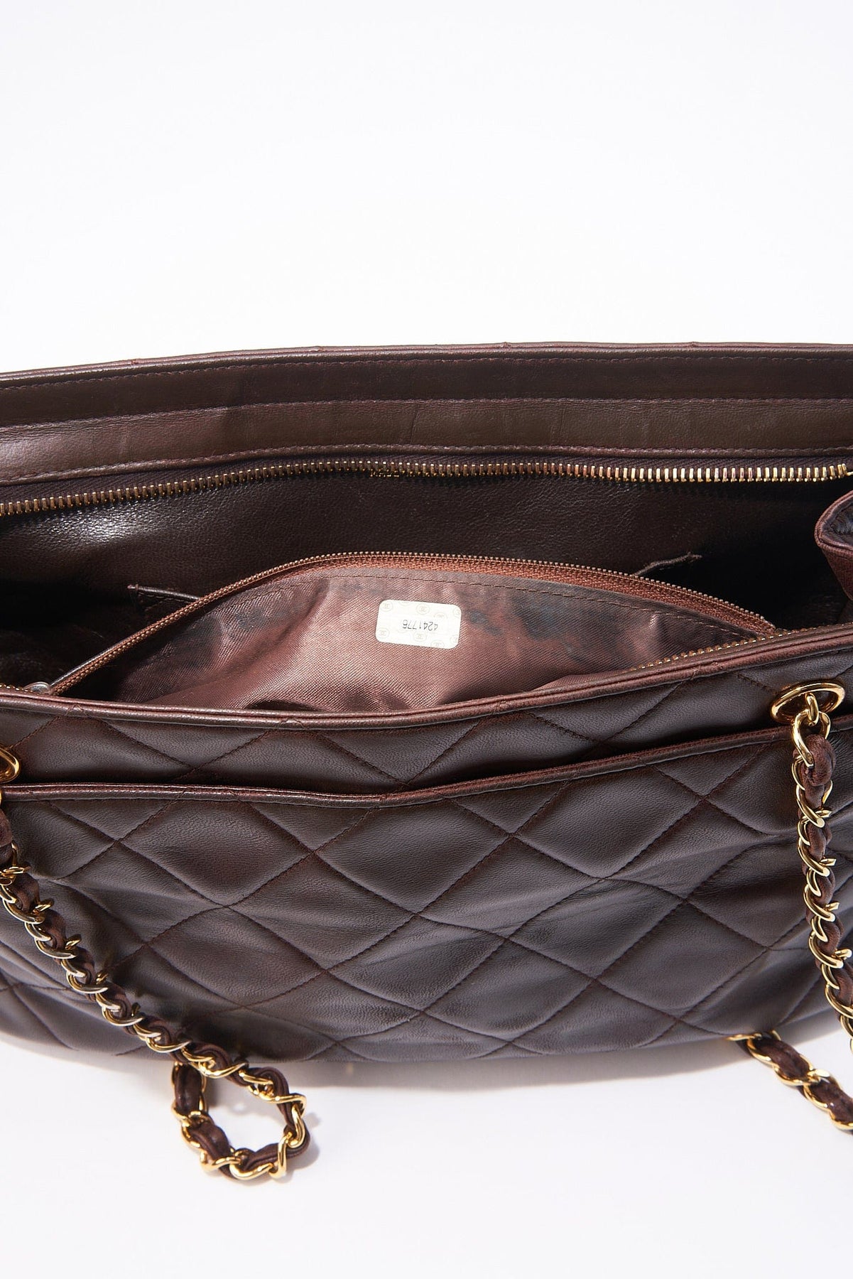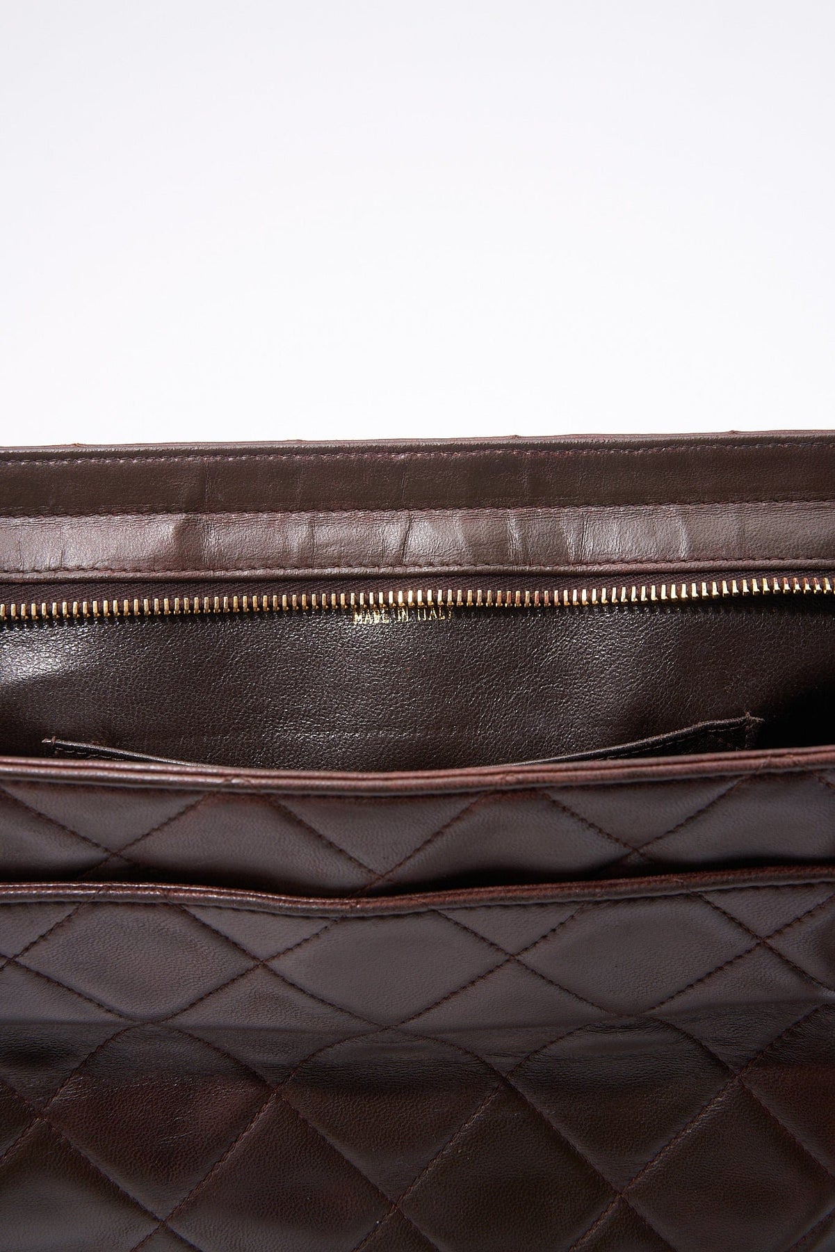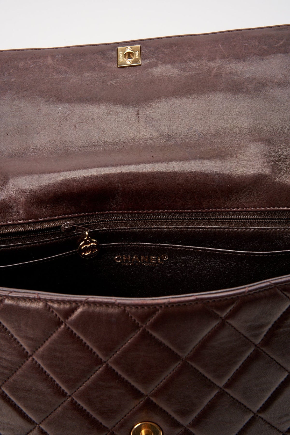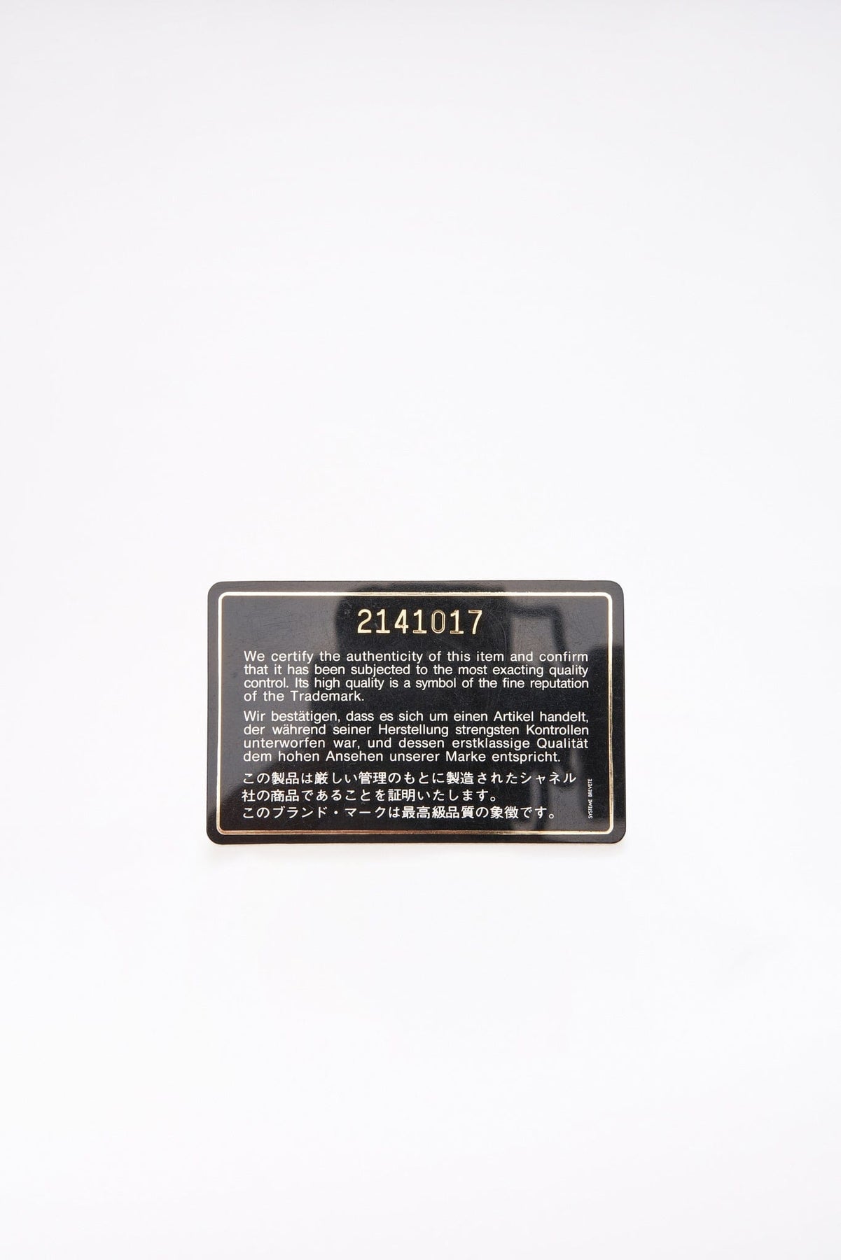 The serial number on the card tells us the bag was made between 1991 and 1994. This bag is in good vintage condition with some minor signs of use. The hallmark on the CC turn lock confirms the gold hardware is plated in 24K gold, a real collectors item. Before 2008, Chanel Classic Flaps with gold coloured hardware (chains, clasps, grommets, and CC turn locks) were all plated in real 24K gold.