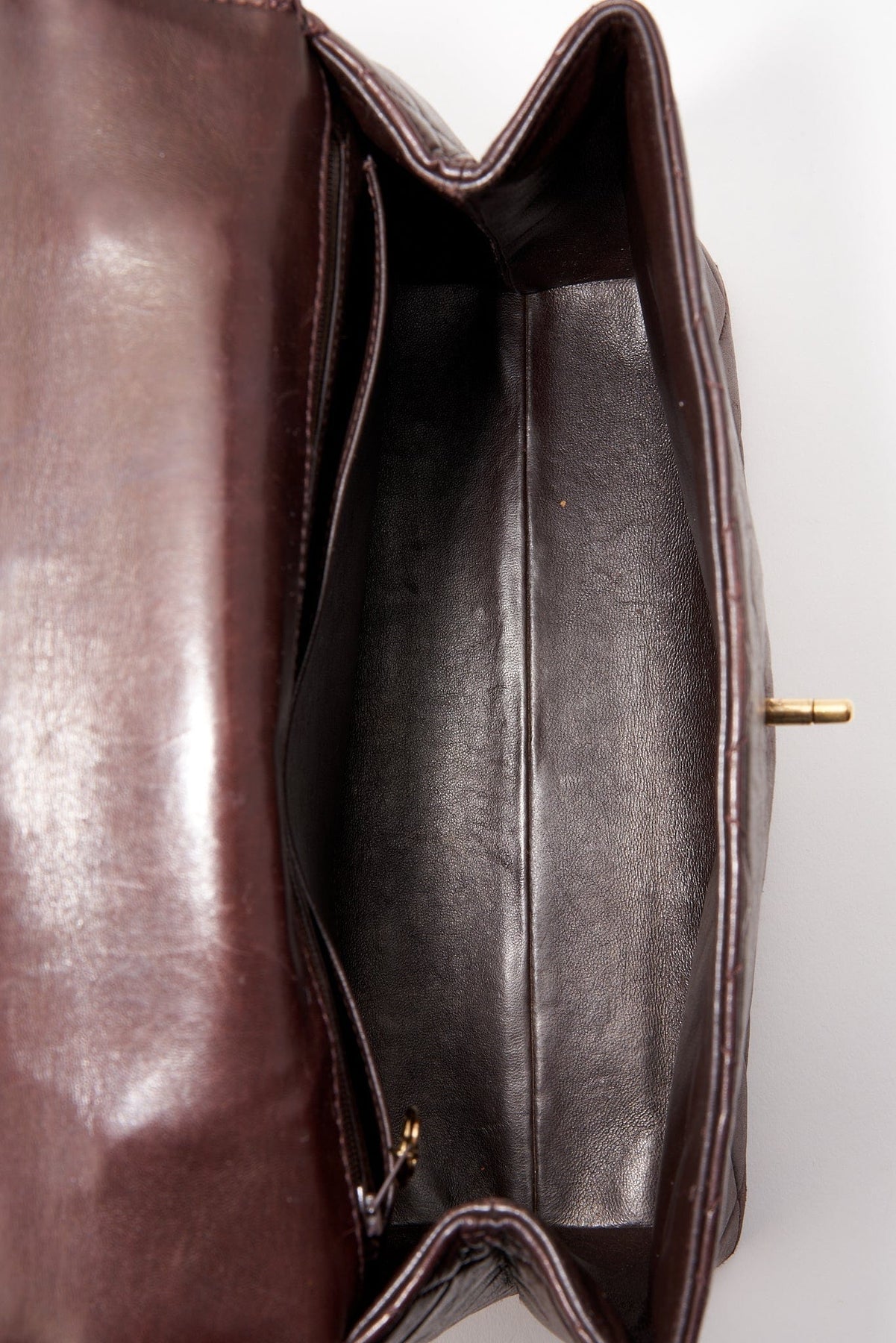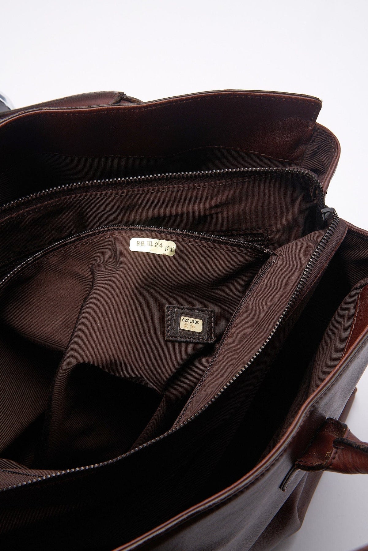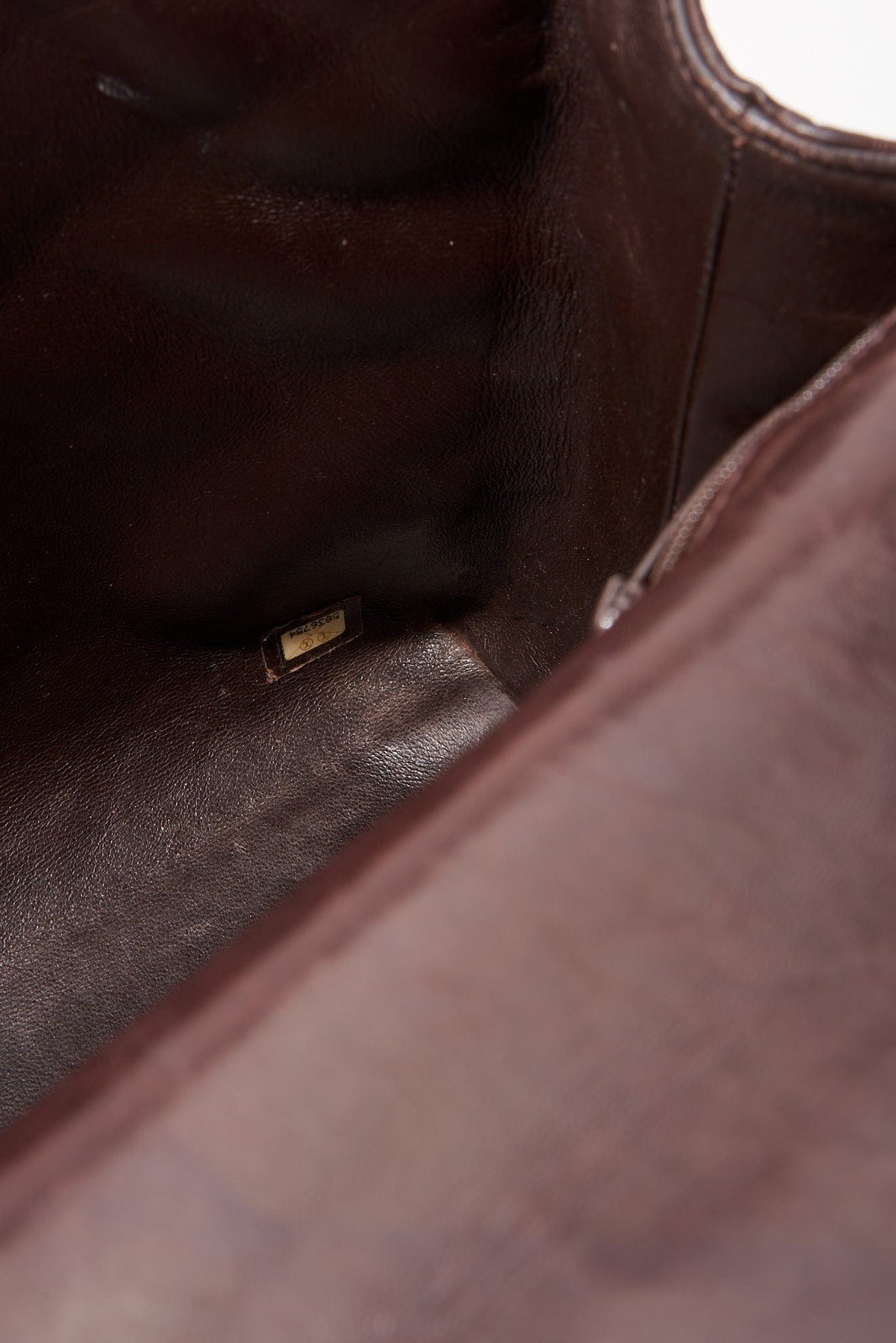 The serial number on the card tells us the bag was made between 1989 and 1991. This bag is in good vintage condition with some signs of use, some wrinkling and creasing to the leather.