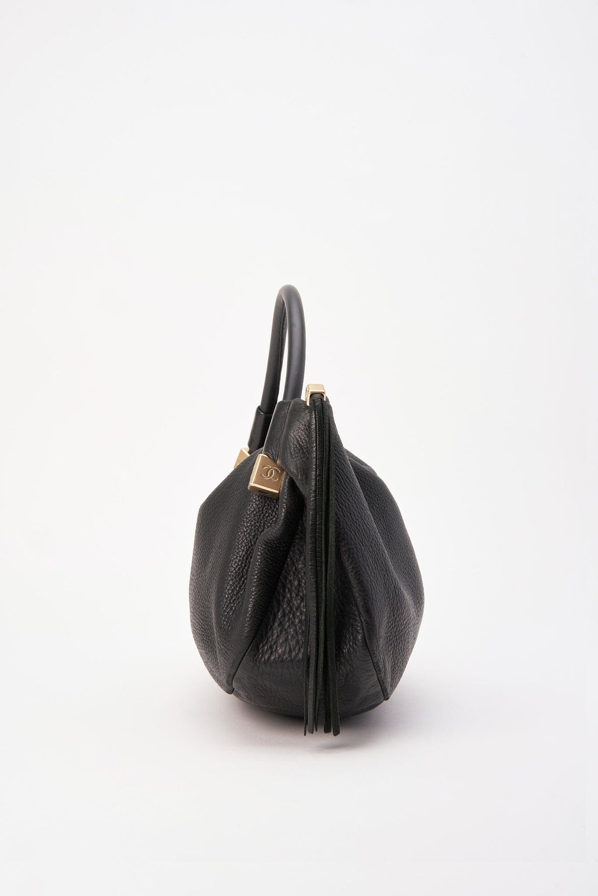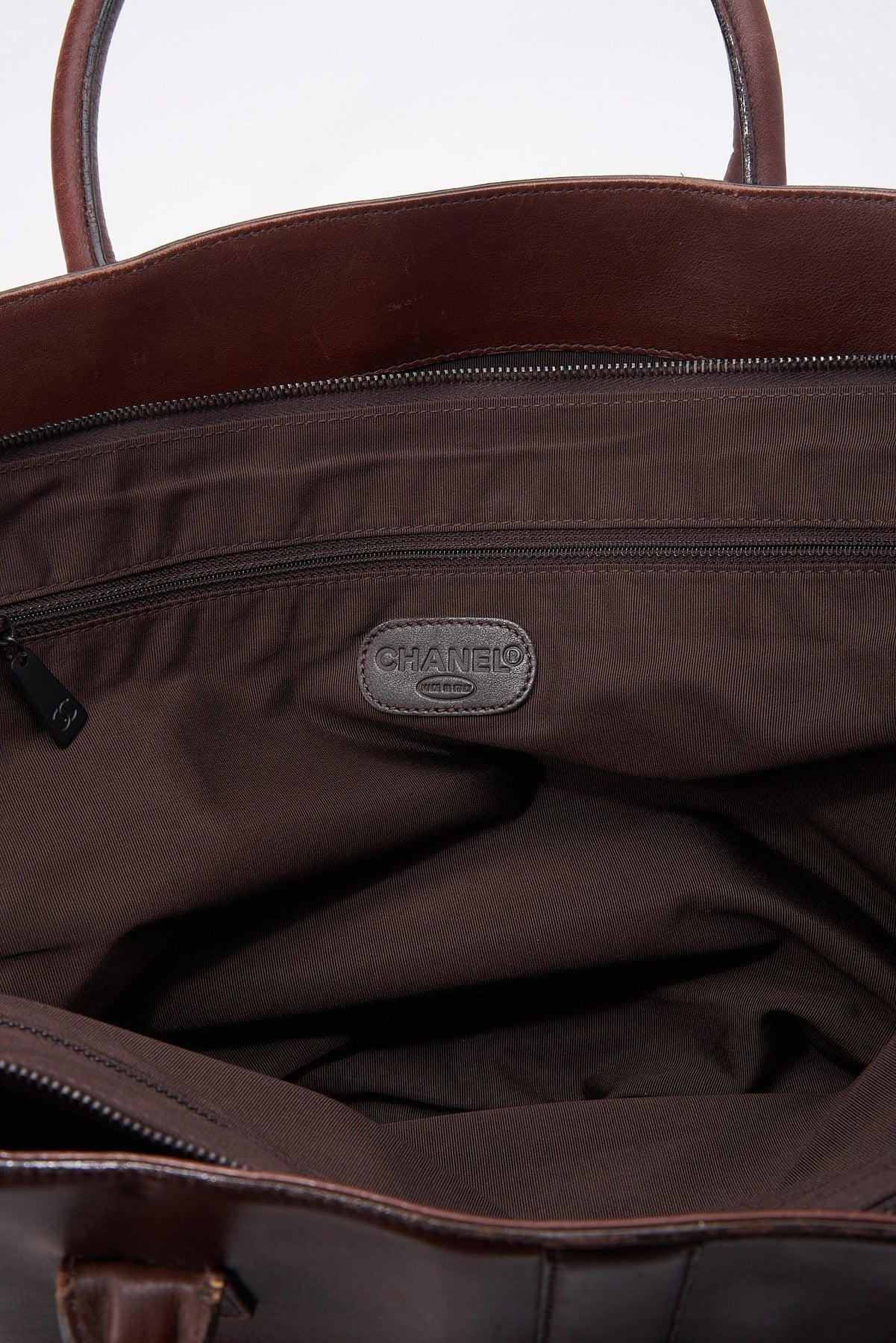 The interior is lined in Black leather and features a zipper pocket with Chanel pull.