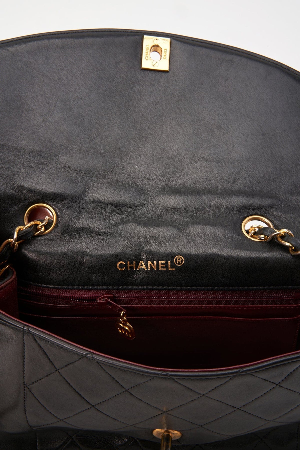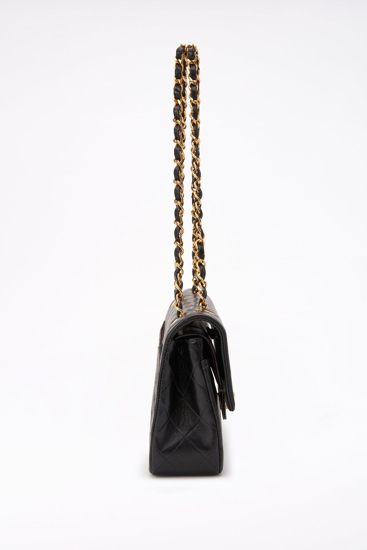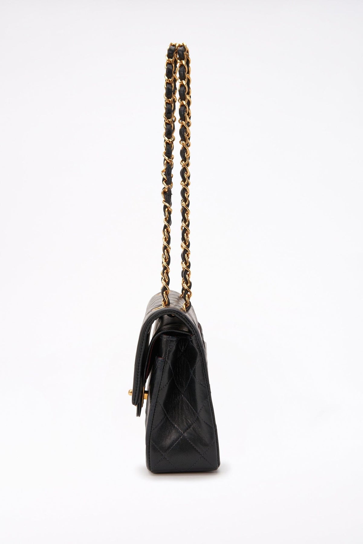Vintage Chanel Classic Double Flap Bag Small Black Lambskin Leather