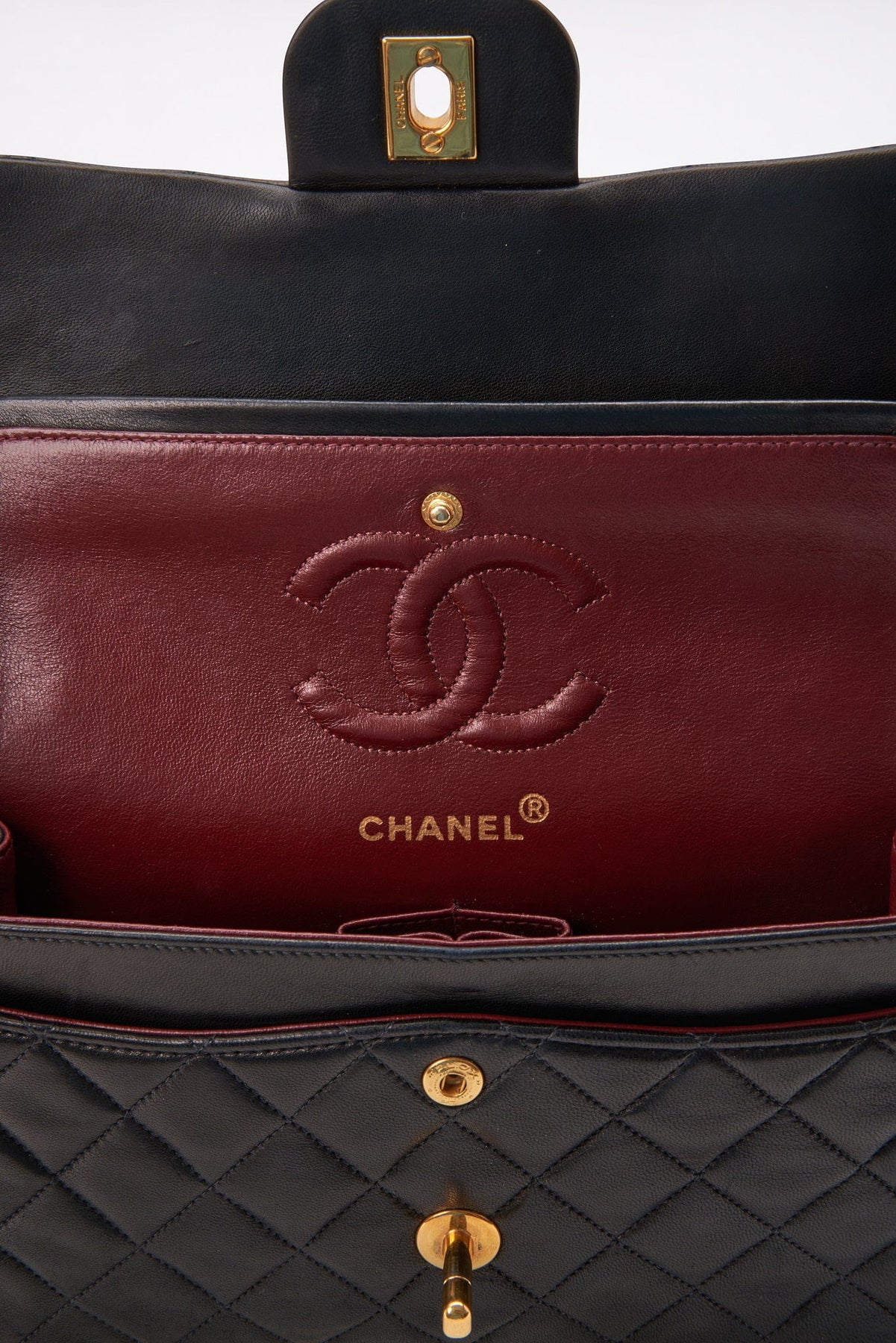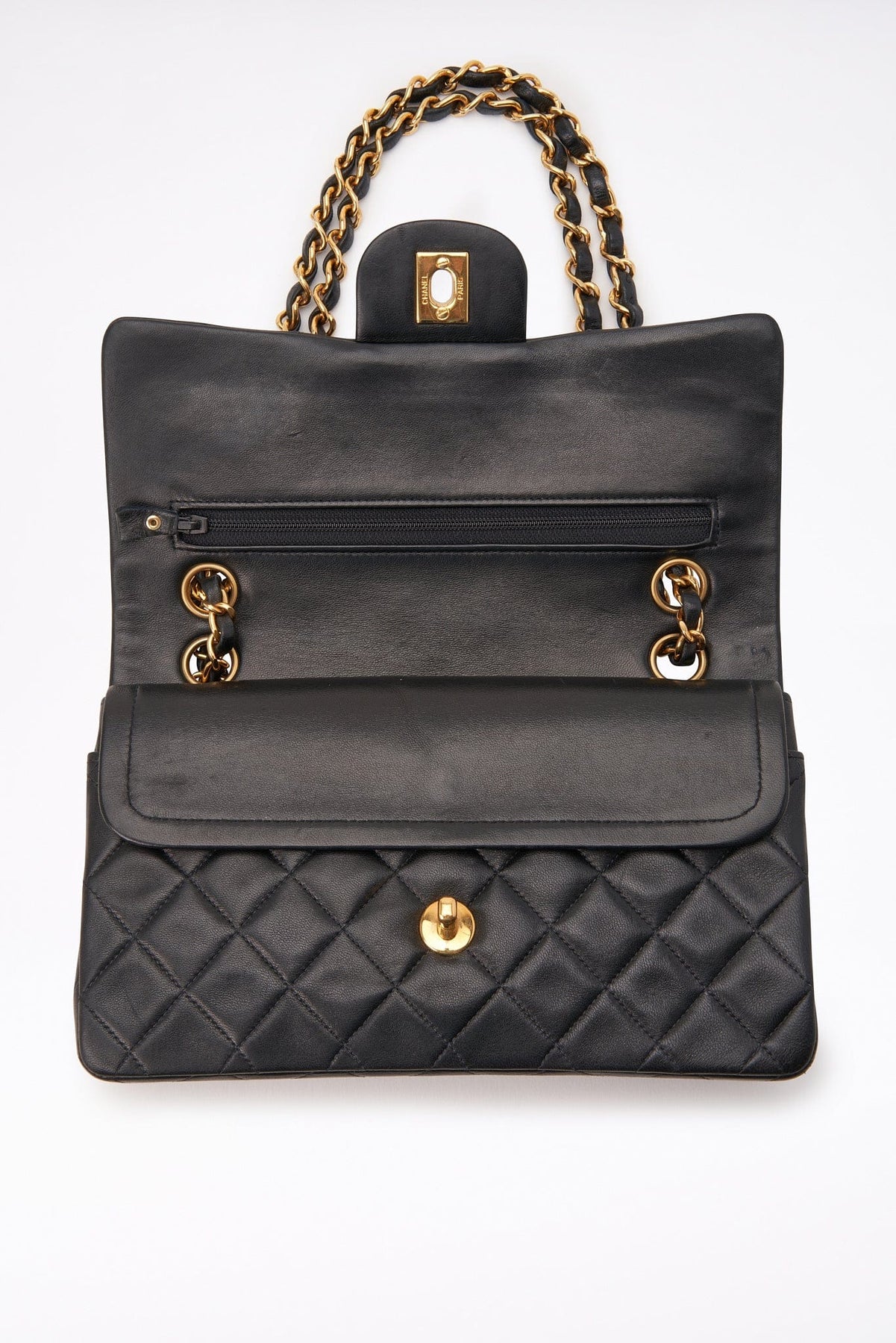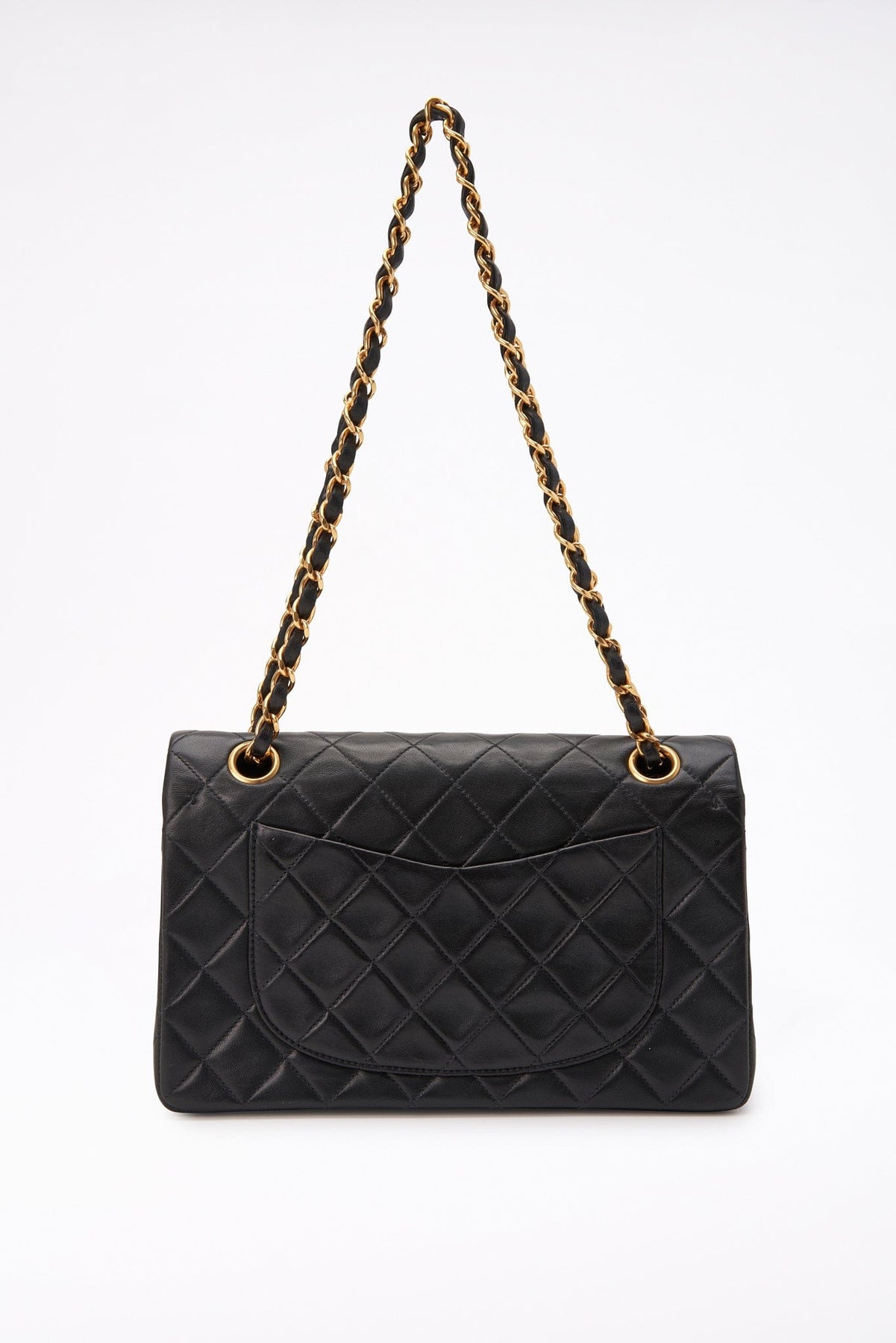 Vintage Chanel Classic Double Flap Bag Small Black Lambskin Leather