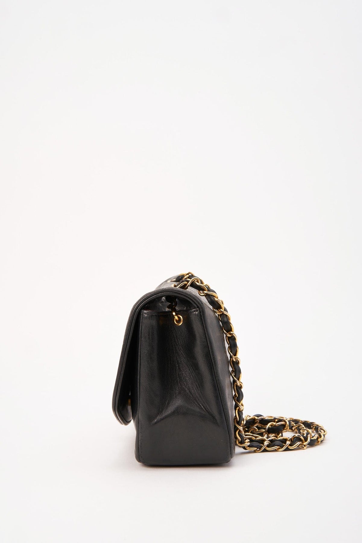Vintage Chanel Diana Black Single Flap with 24k gold plated hardware
