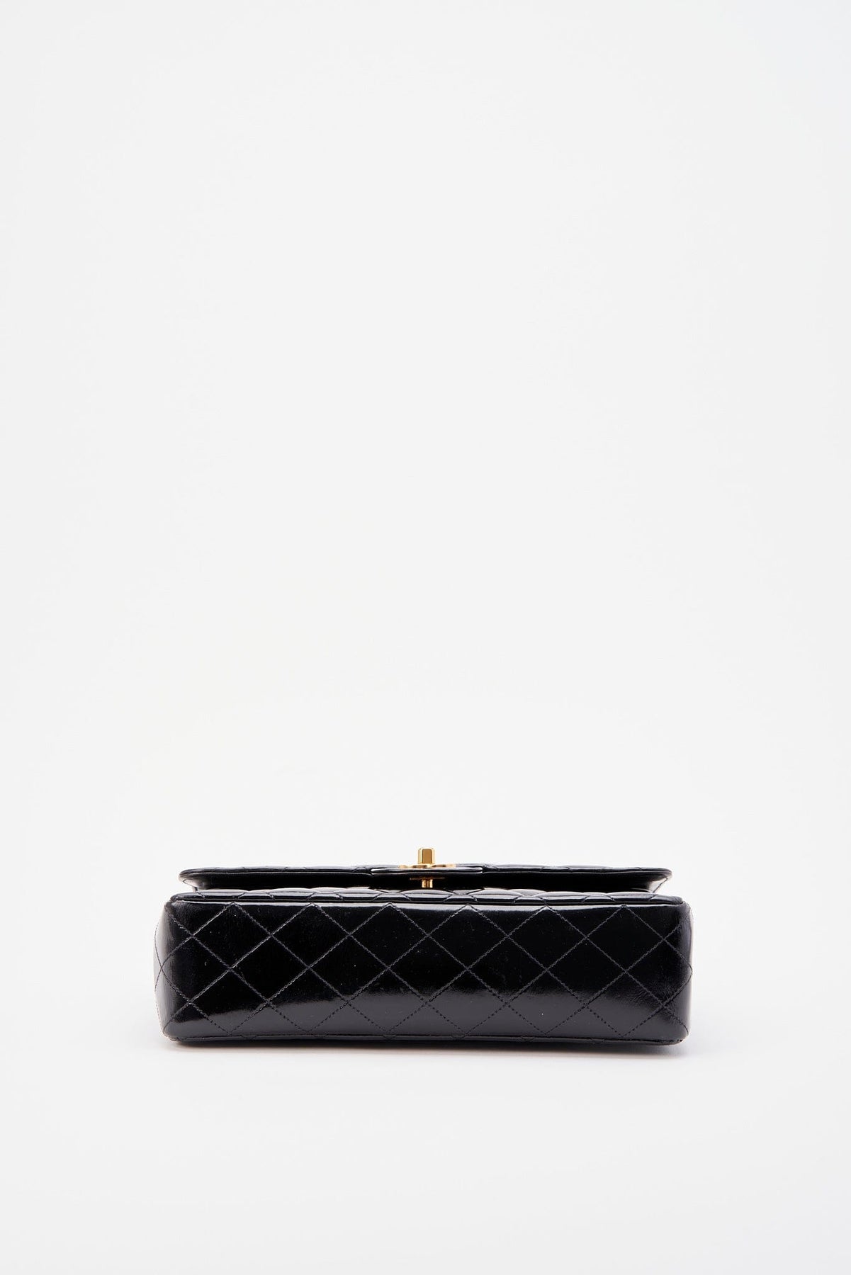 Vintage Chanel Classic Double Flap Bag Medium Black Patent Leather With 24K Gold Plated Hardware