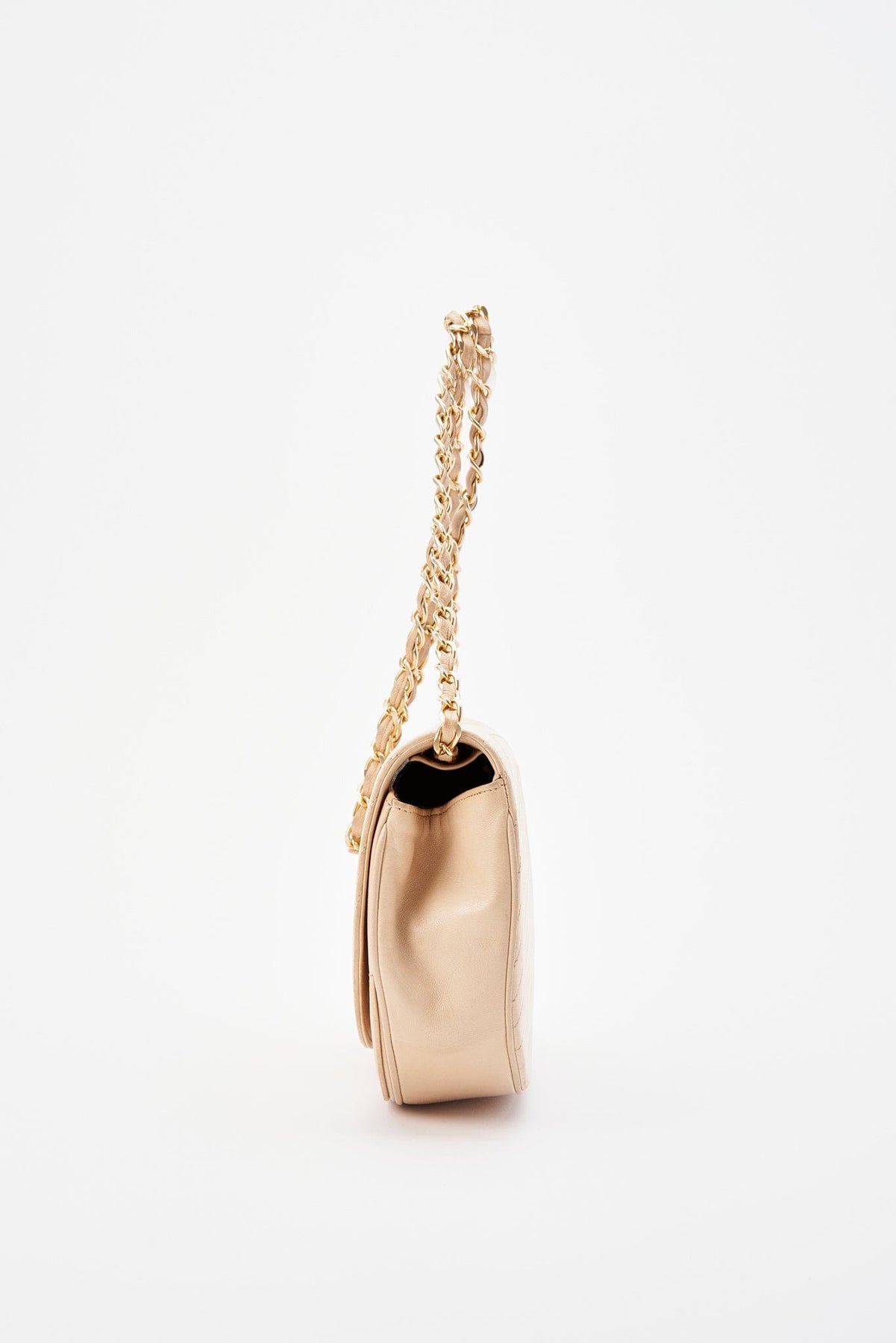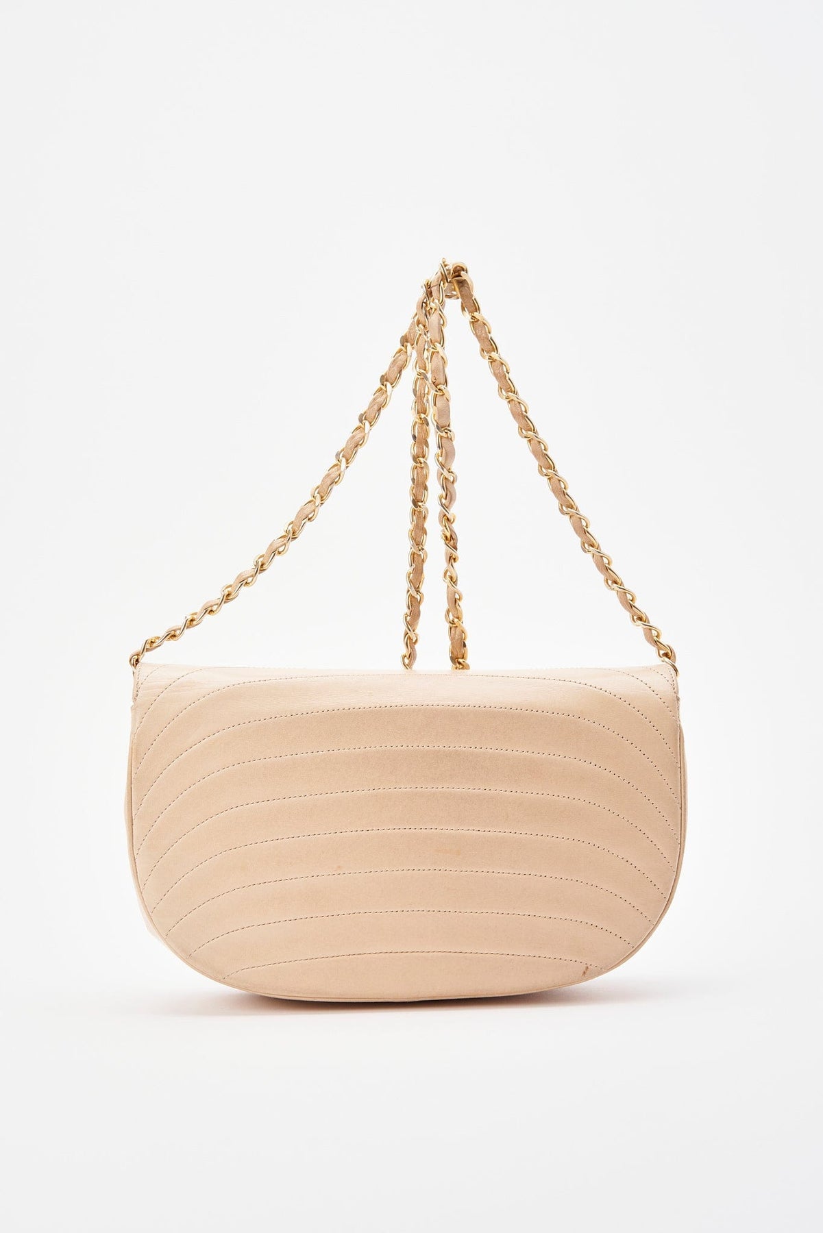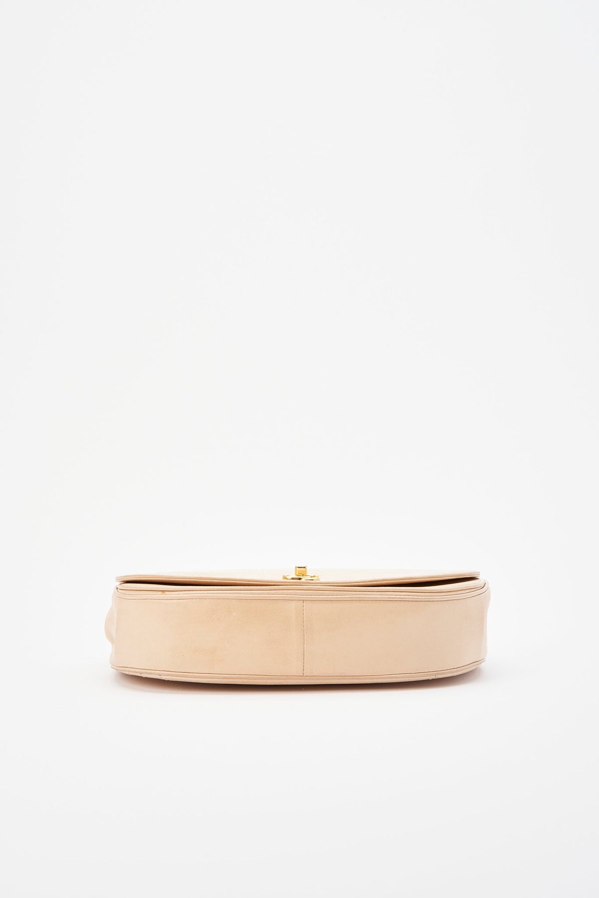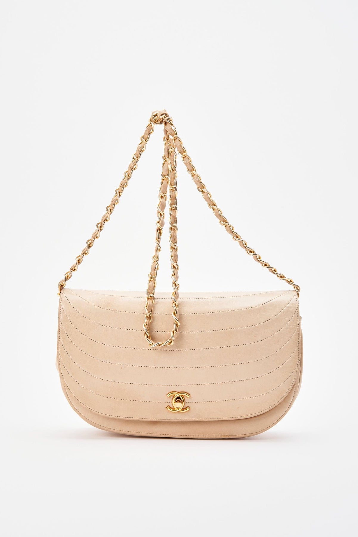 Vintage Chanel Half Moon Cream Leather Flap Bag With 24K Gold Plated Hardware