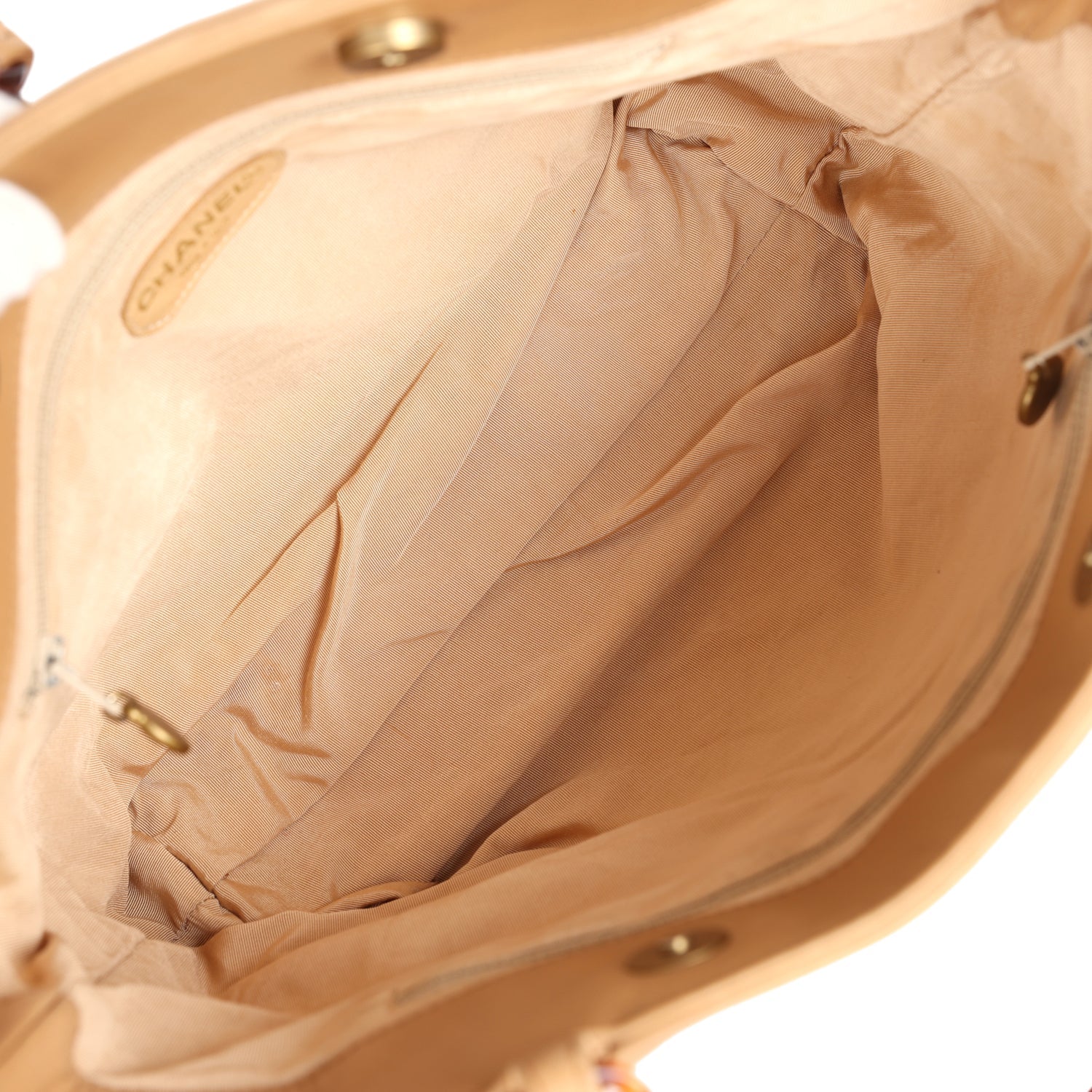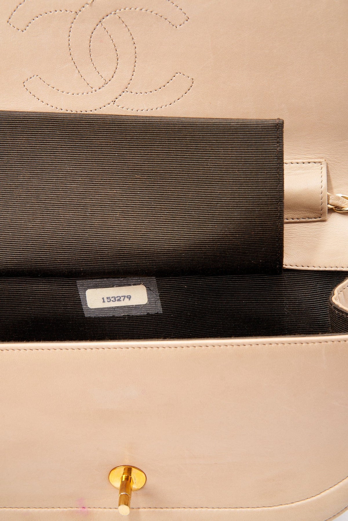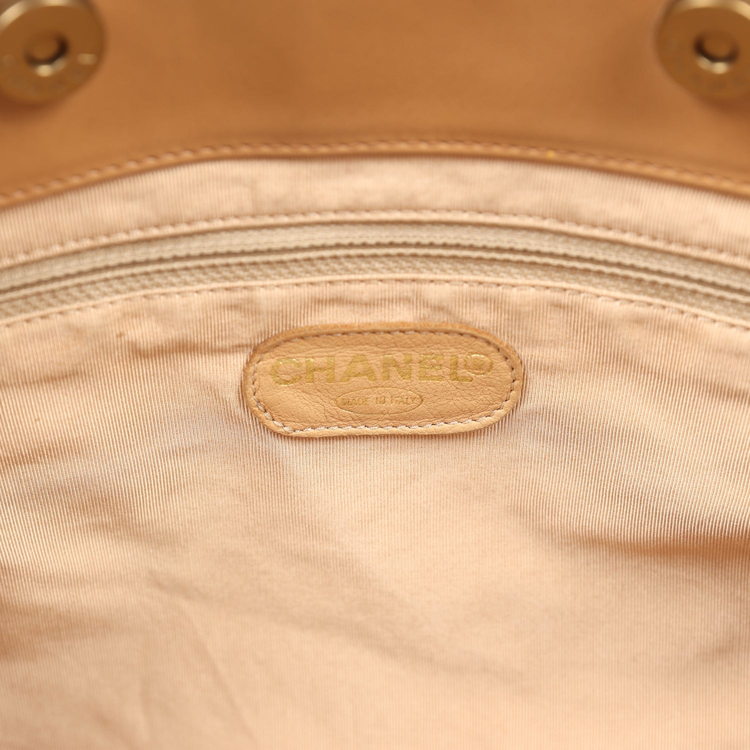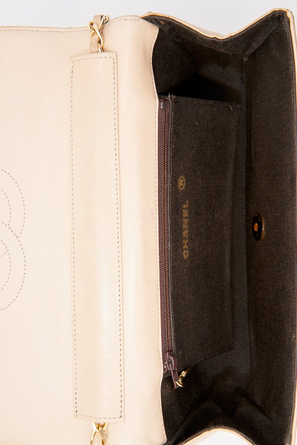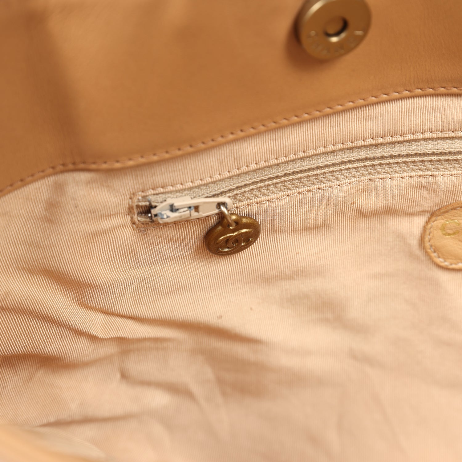 Regular price $2,020.00 Sale price $430.00 Save $1,590.00A beautiful vintage beige flap Chanel crossbody bag with the iconic CC turn lock. There is a hallmark on the turn lock showing us that the gold hardware is plated in 24k gold. Chanel stopped plating with real gold in late 2008. There are some lovely Chanel branding details on this bag, under the flap the CC is stitched under the flap. Inside the bag the gold CC charm is still intact on the inner zip.