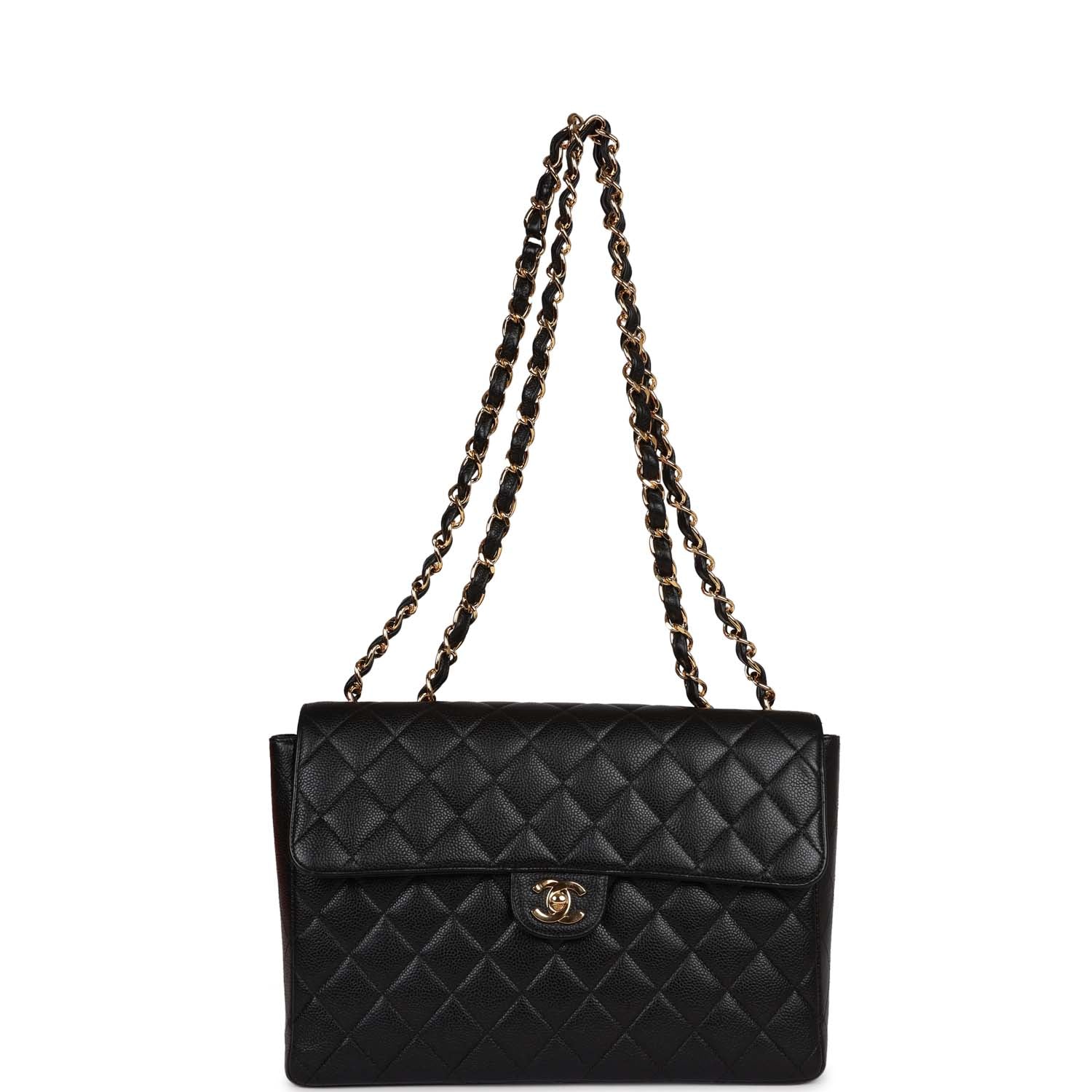 Vintage Chanel Jumbo Classic Single Flap Bag Black Caviar Gold Hardware