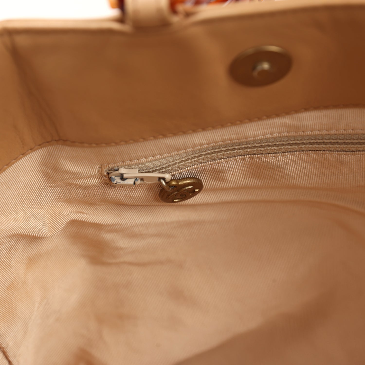 Condition: Vintage; Excellent - This bag retains its structure. There is no plastic on the hardware resulting in some light scratching on the CC turnlock closure. The exterior wicker has been retouched there are noticeable signs of peeling and damage to the wicker underneath the painted area. The interior is clean.