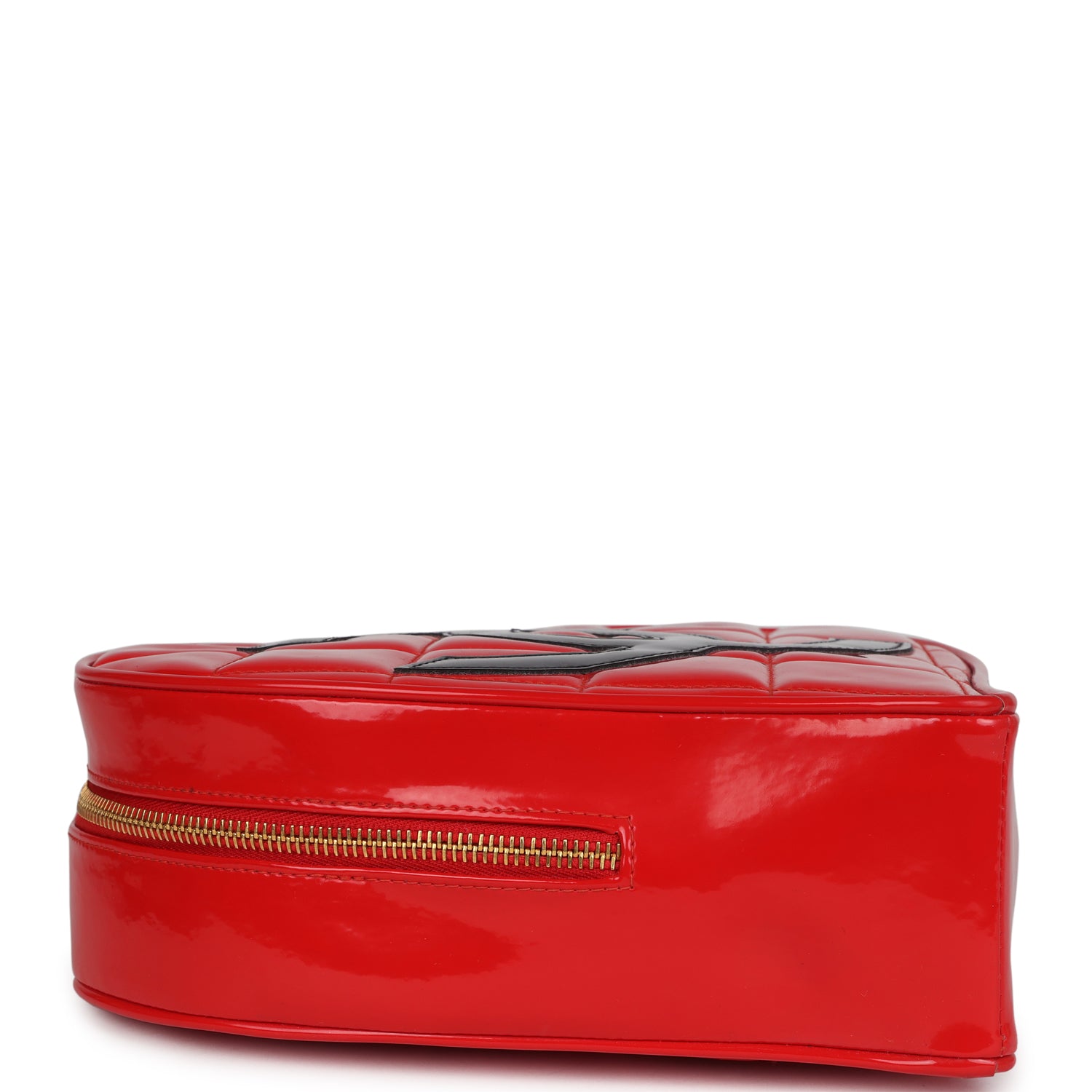 Vintage Chanel Heart Vanity Bag Red and Black Patent Antique Gold Hardware