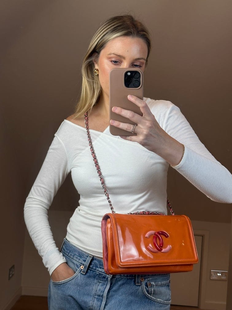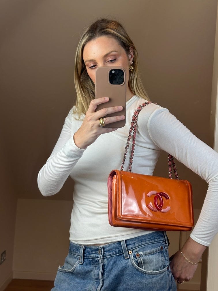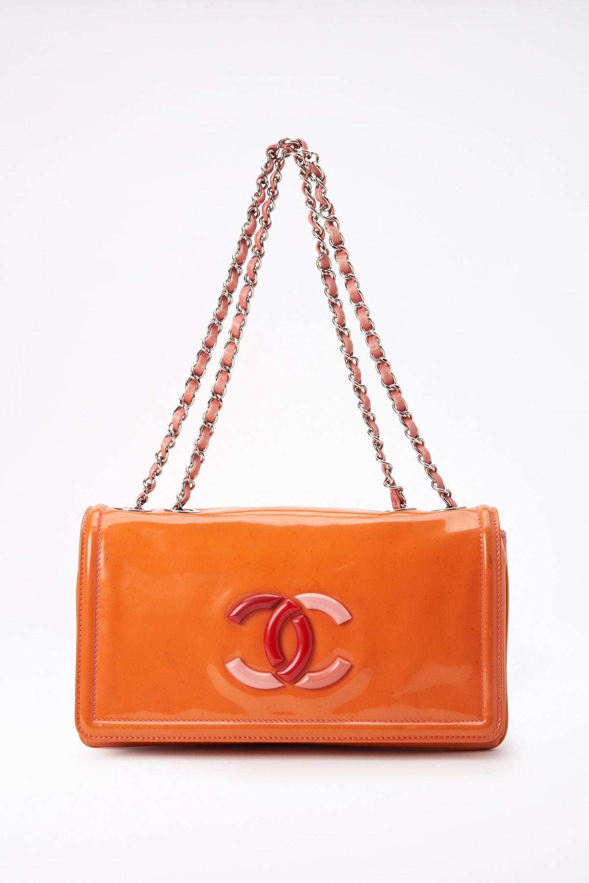 Vintage Chanel Patent Orange and Pink Leather Bag