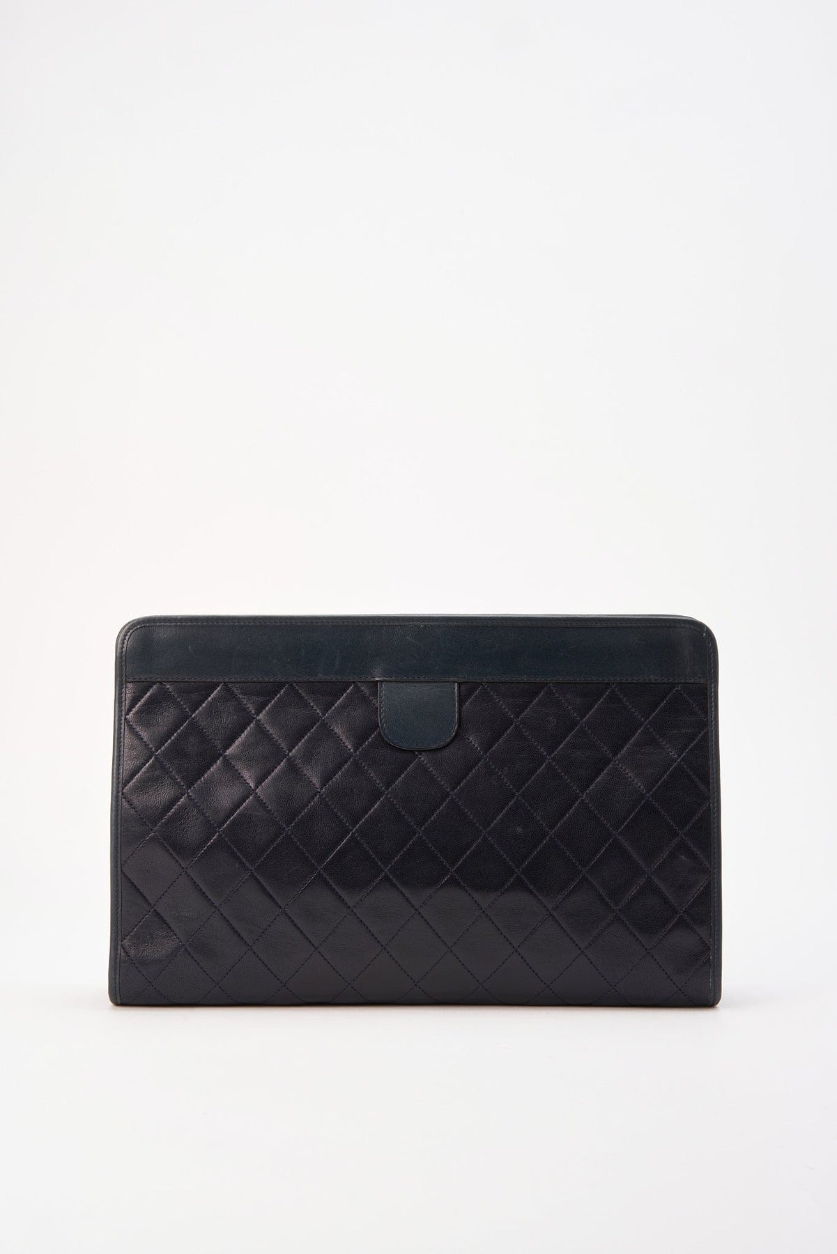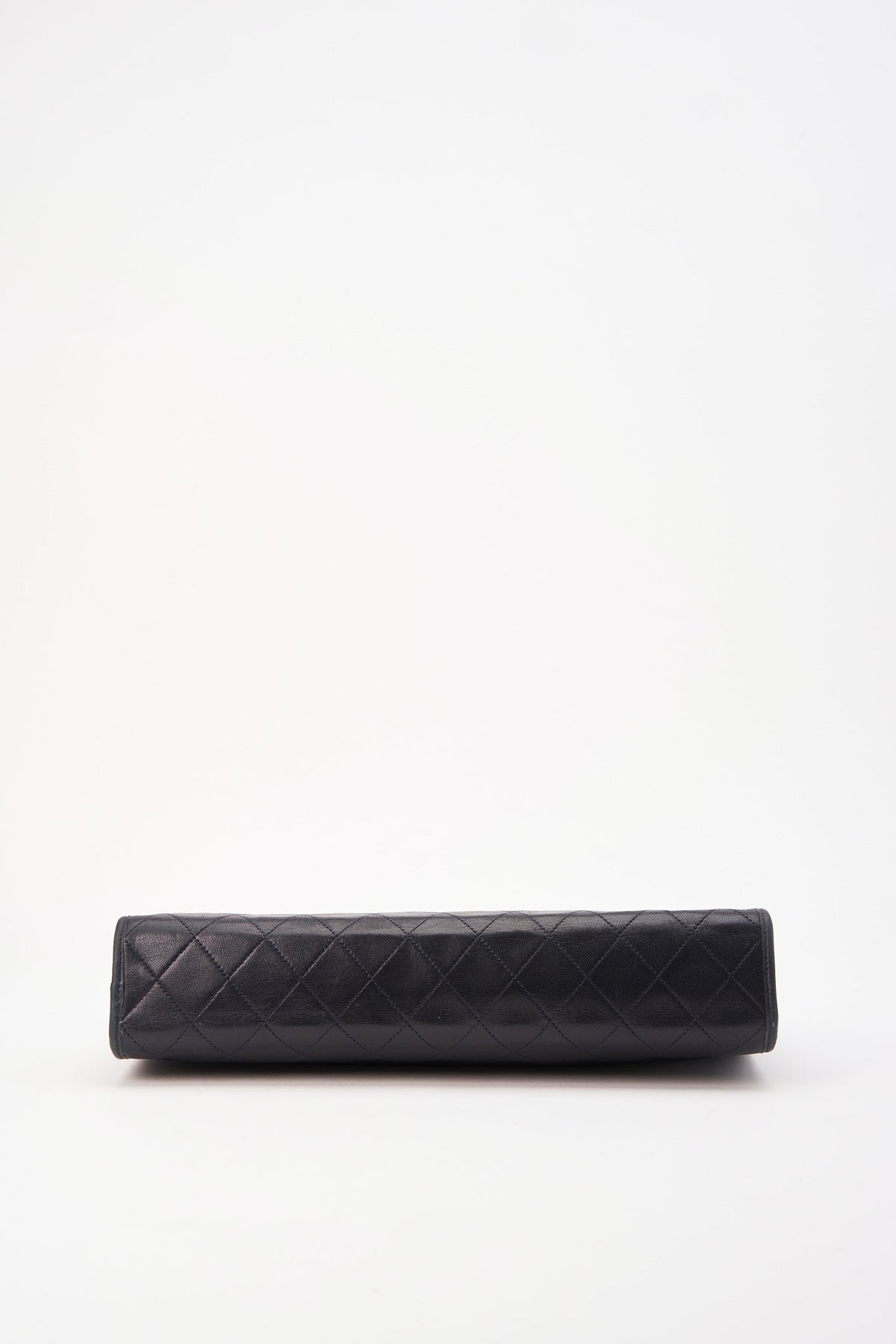 Vintage Chanel Navy Leather Clutch Bag With 24K Gold Plated Hardware