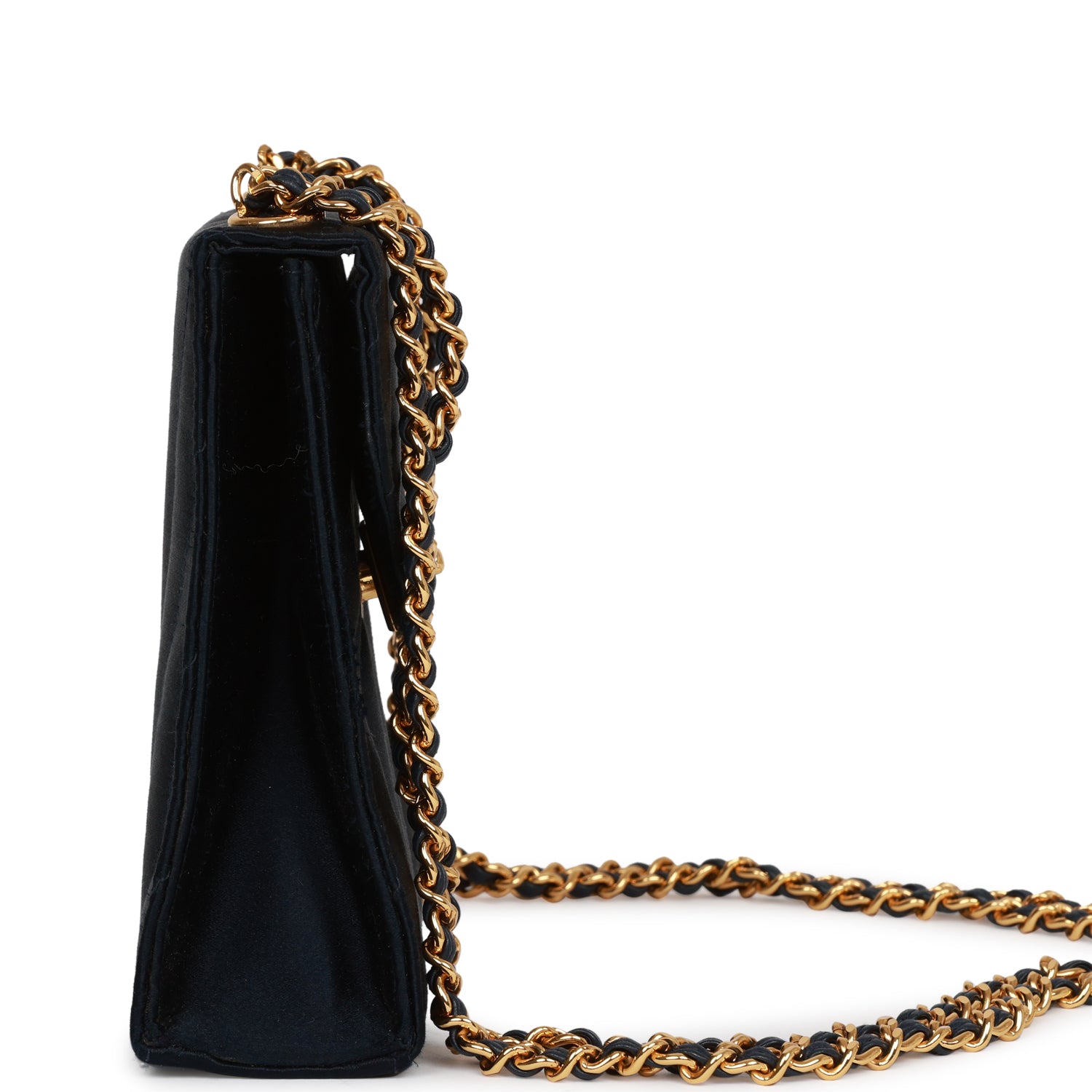 Vintage Chanel Mini Straight Flap Bag Pink Satin Gold Hardware