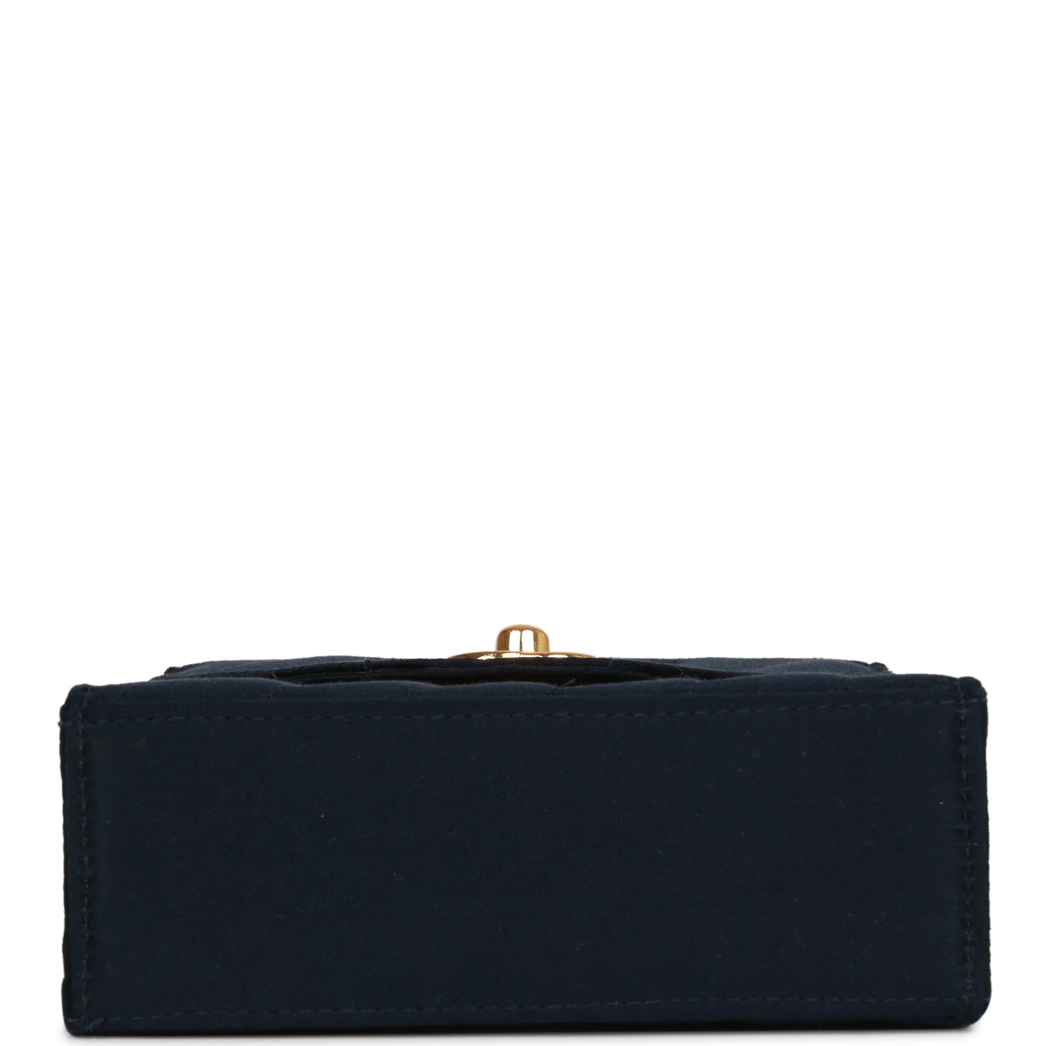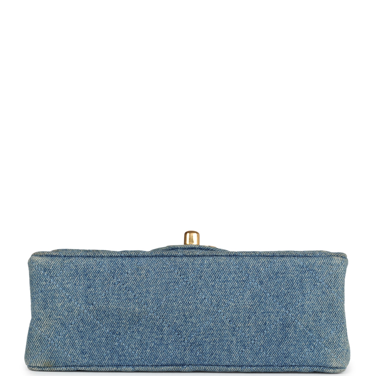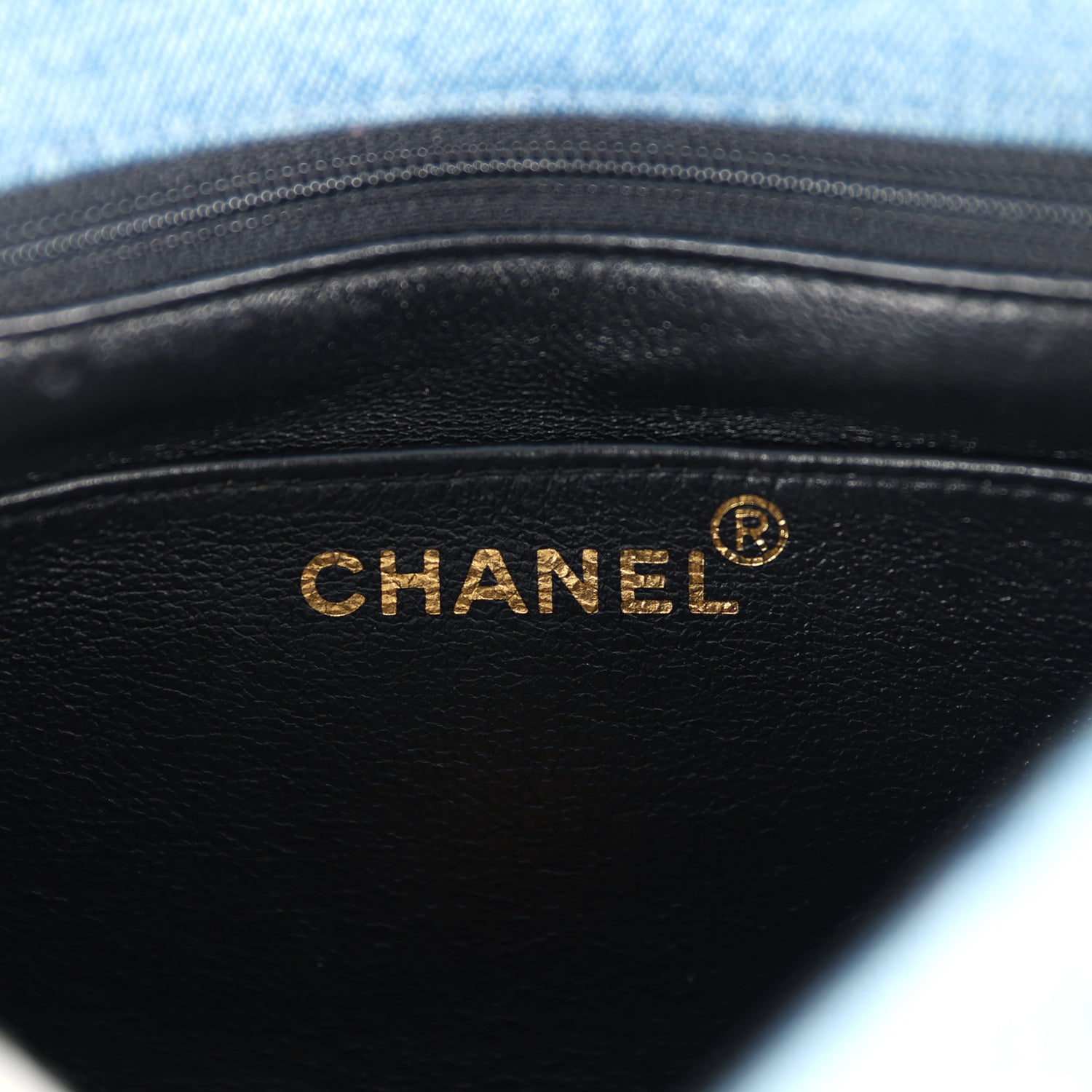 Vintage Chanel Mini Square Flap Bag Blue Denim Gold Hardware