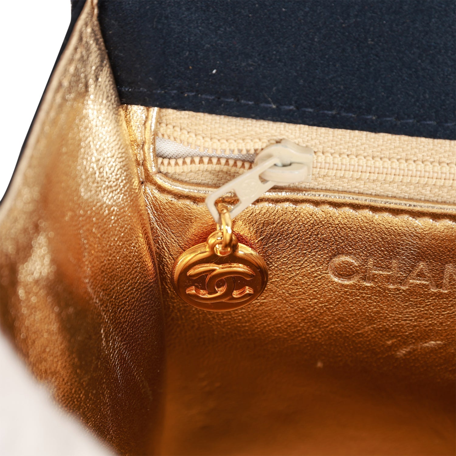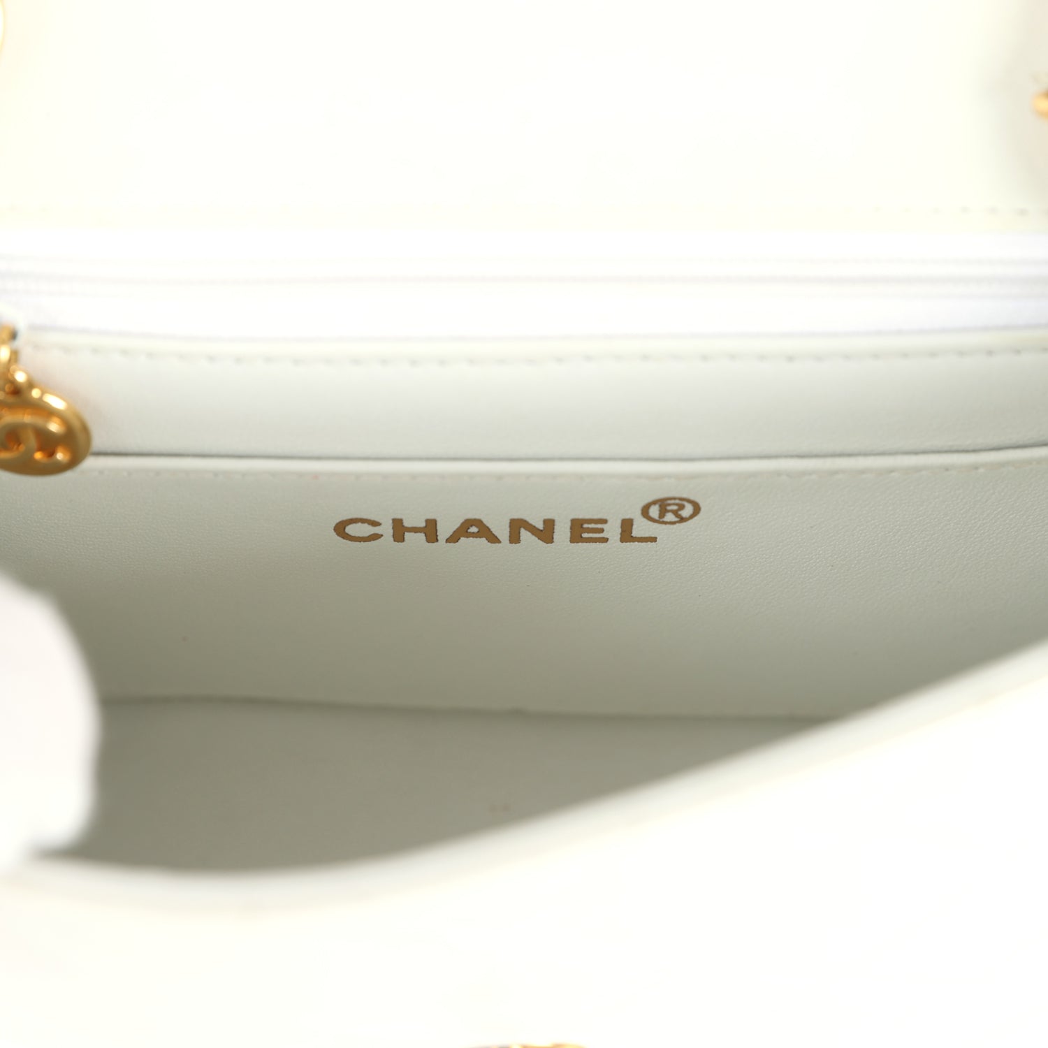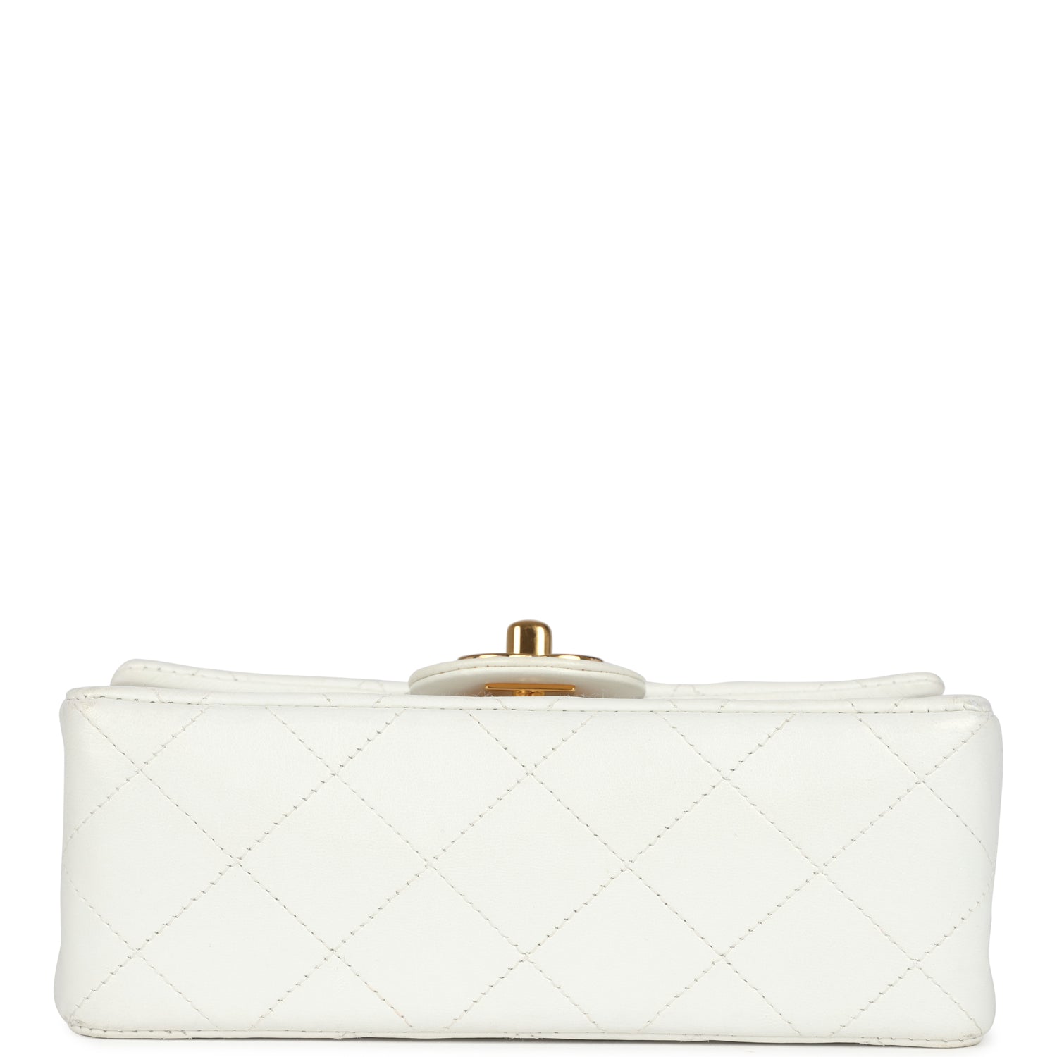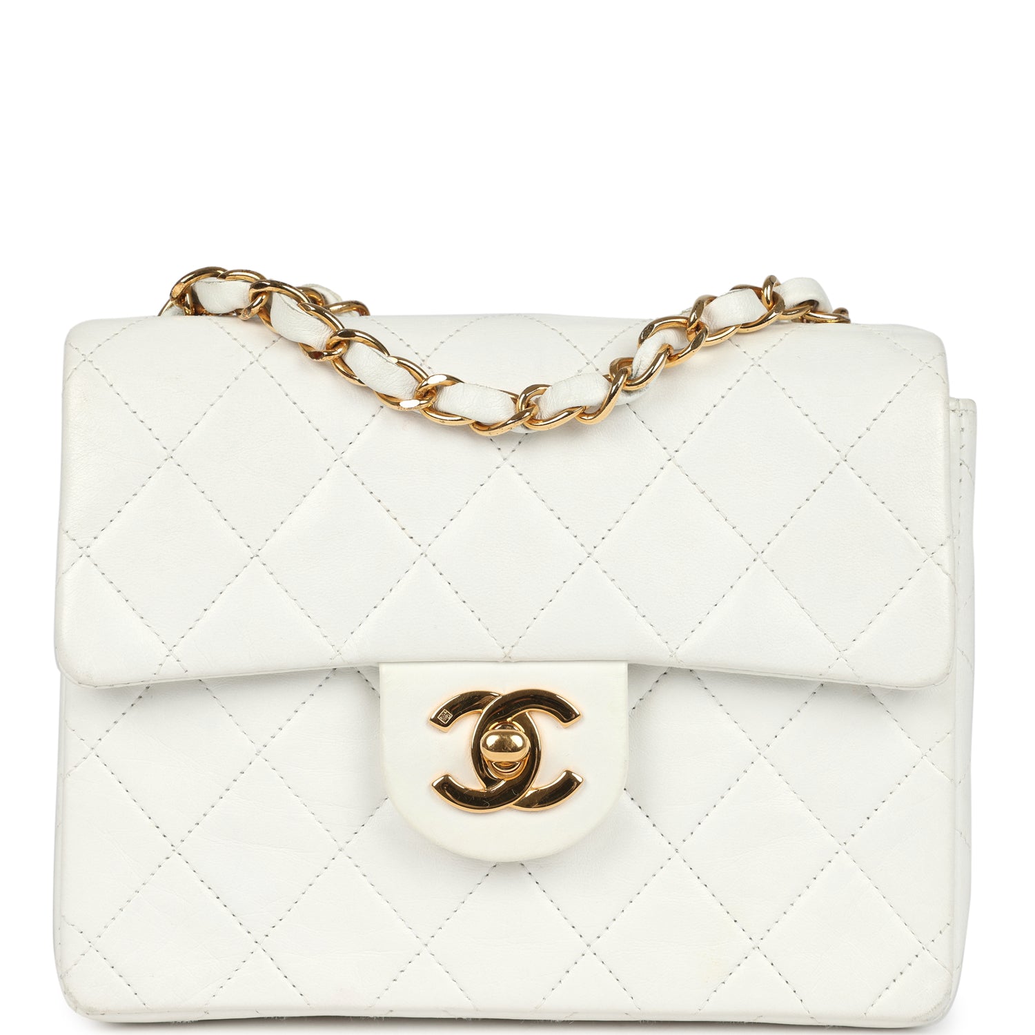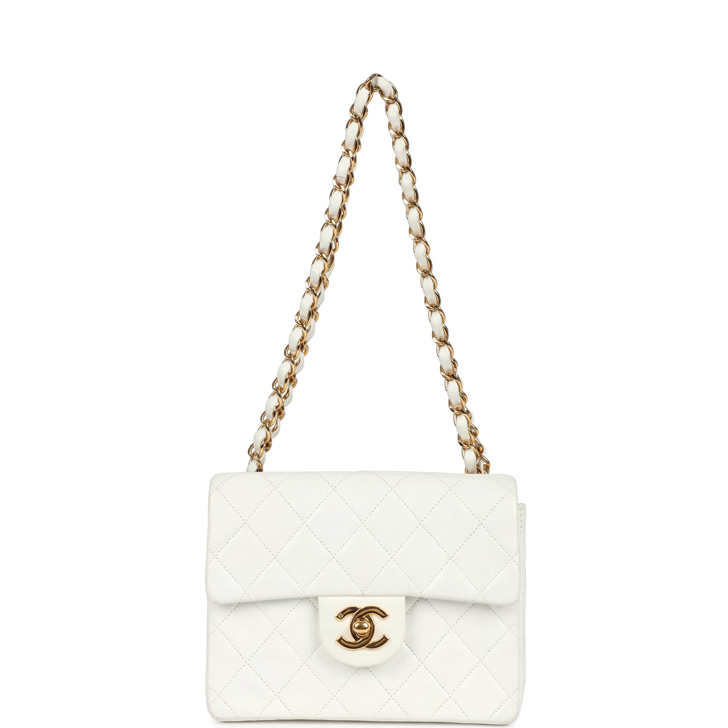 Vintage Chanel Mini Square Flap Bag White Lambskin Gold Hardware