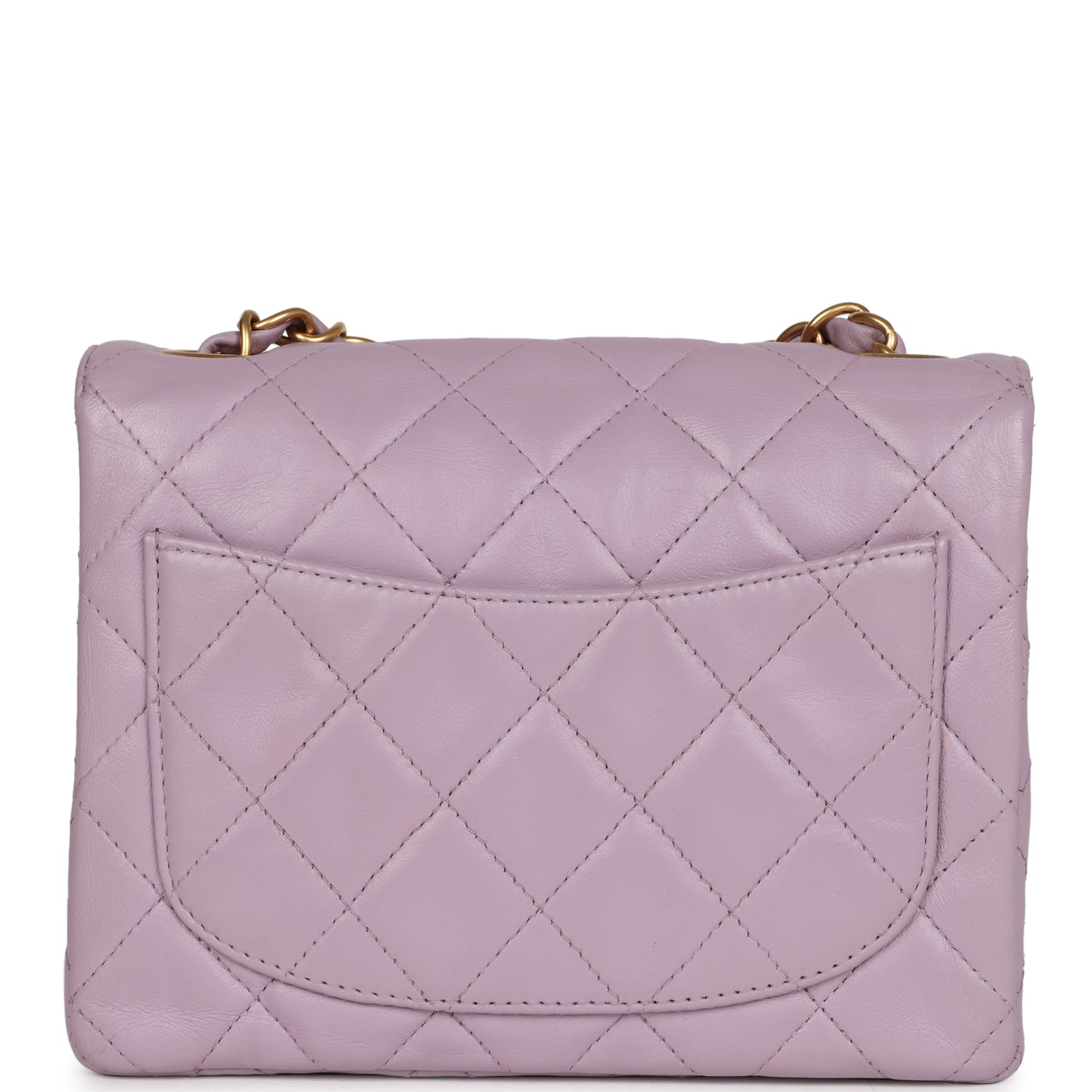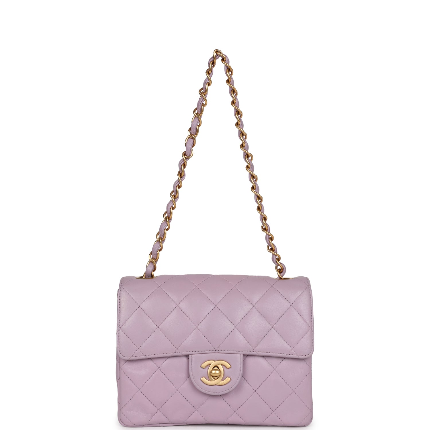 Vintage Chanel Mini Square Flap Bag Light Purple Lambskin Matte Gold Hardware
