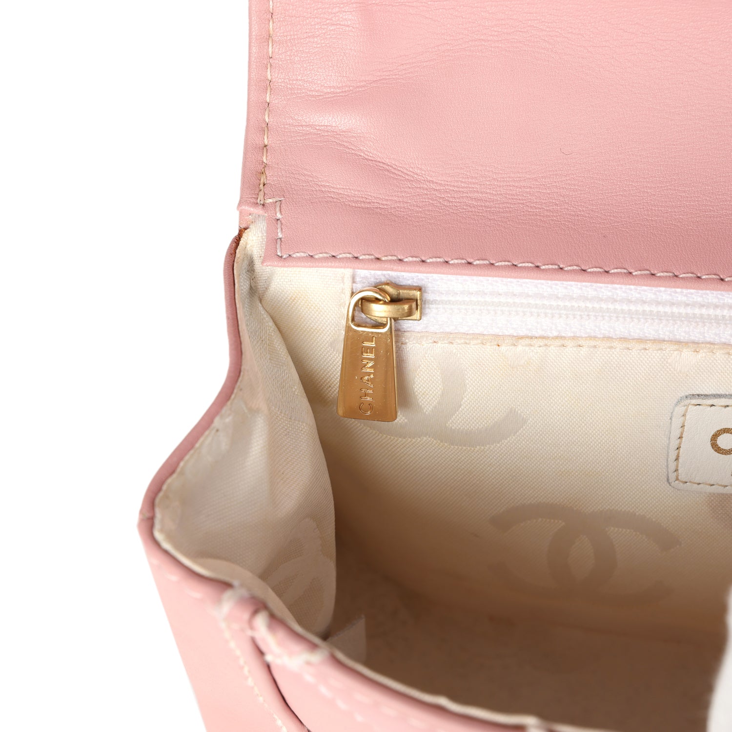 Vintage Chanel Mini Wild Stitch Surpique Top Handle Flap Bag Pink Calfskin Gold Hardware