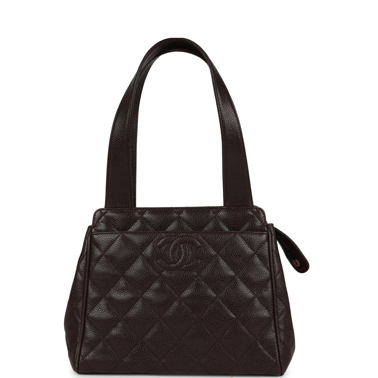 Vintage Chanel Mini Shopper Shoulder Bag Brown Caviar Gold Hardware
