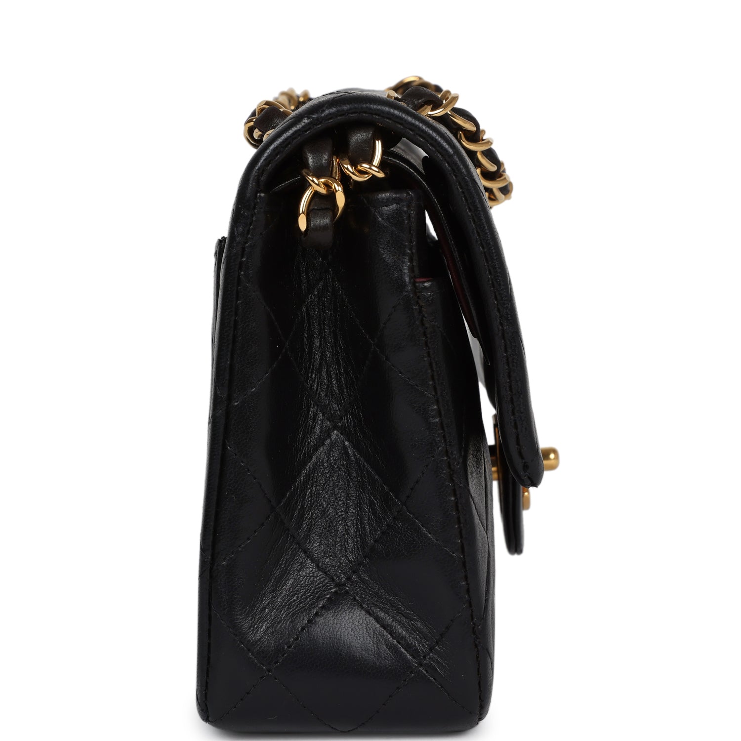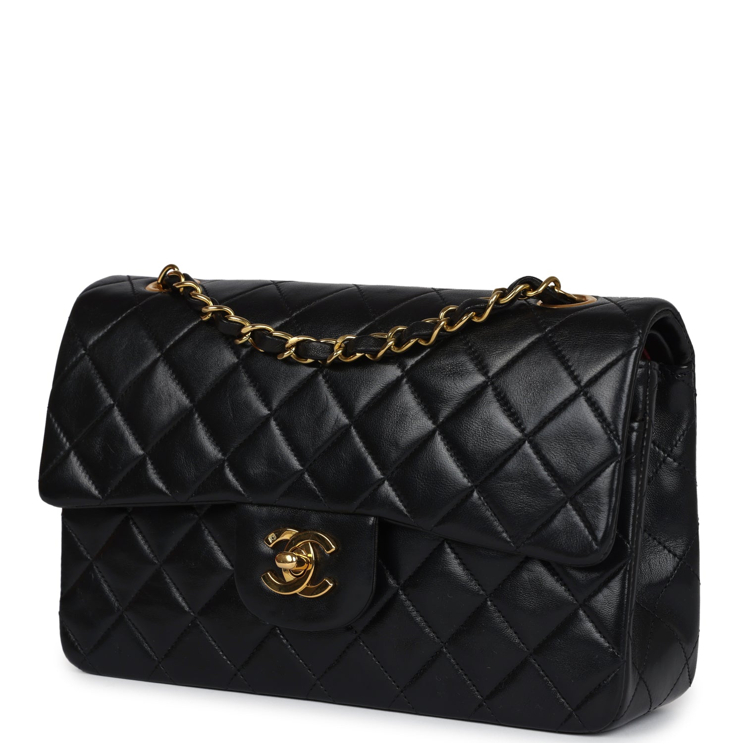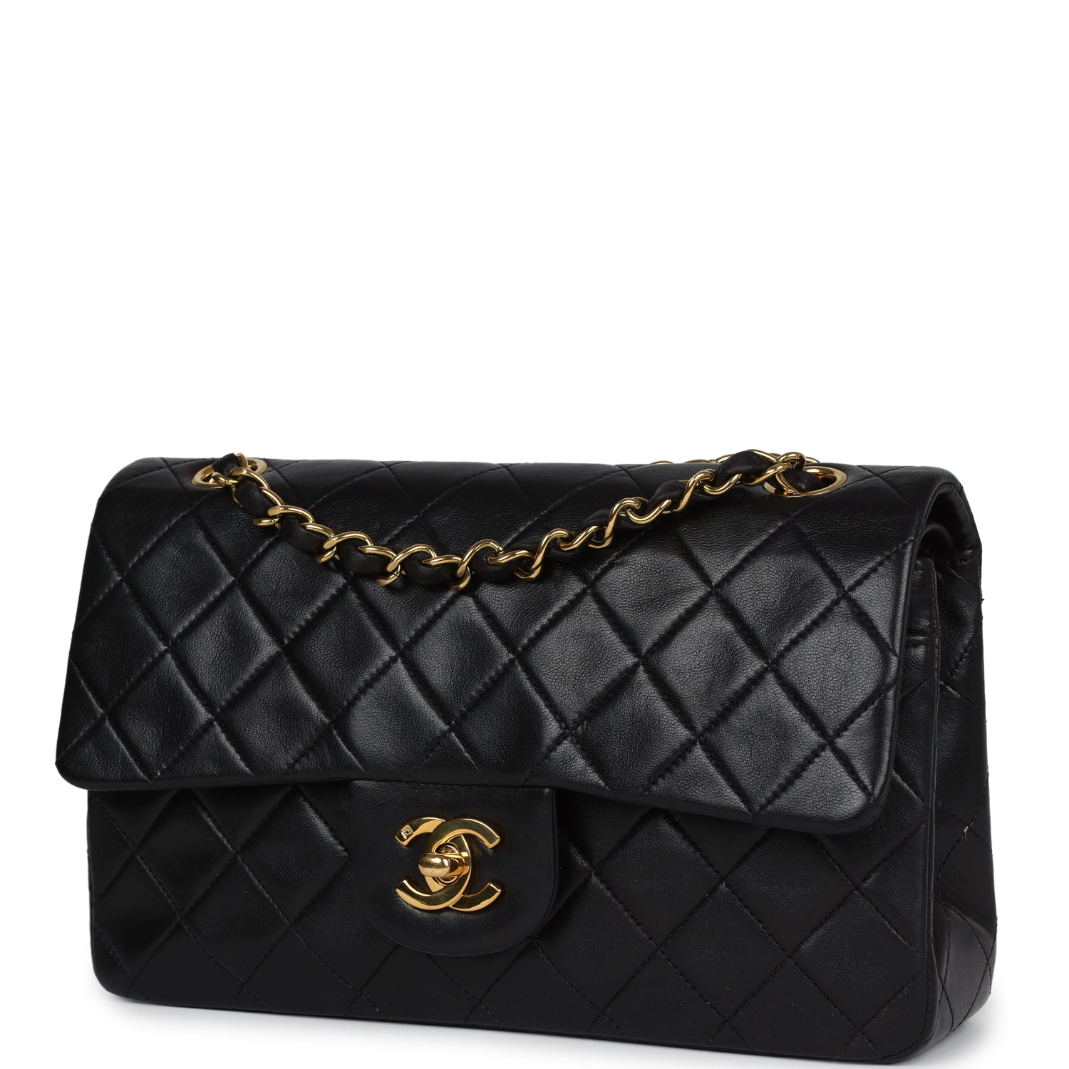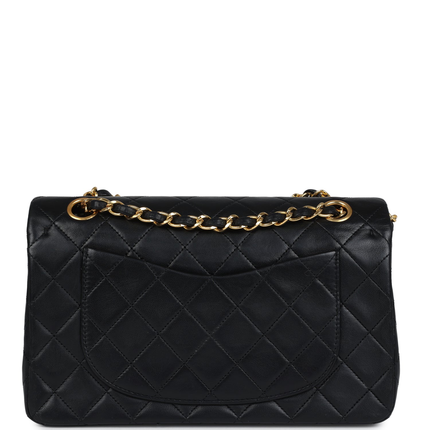Vintage Chanel Small Classic Double Flap Black Lambskin Gold Hardware