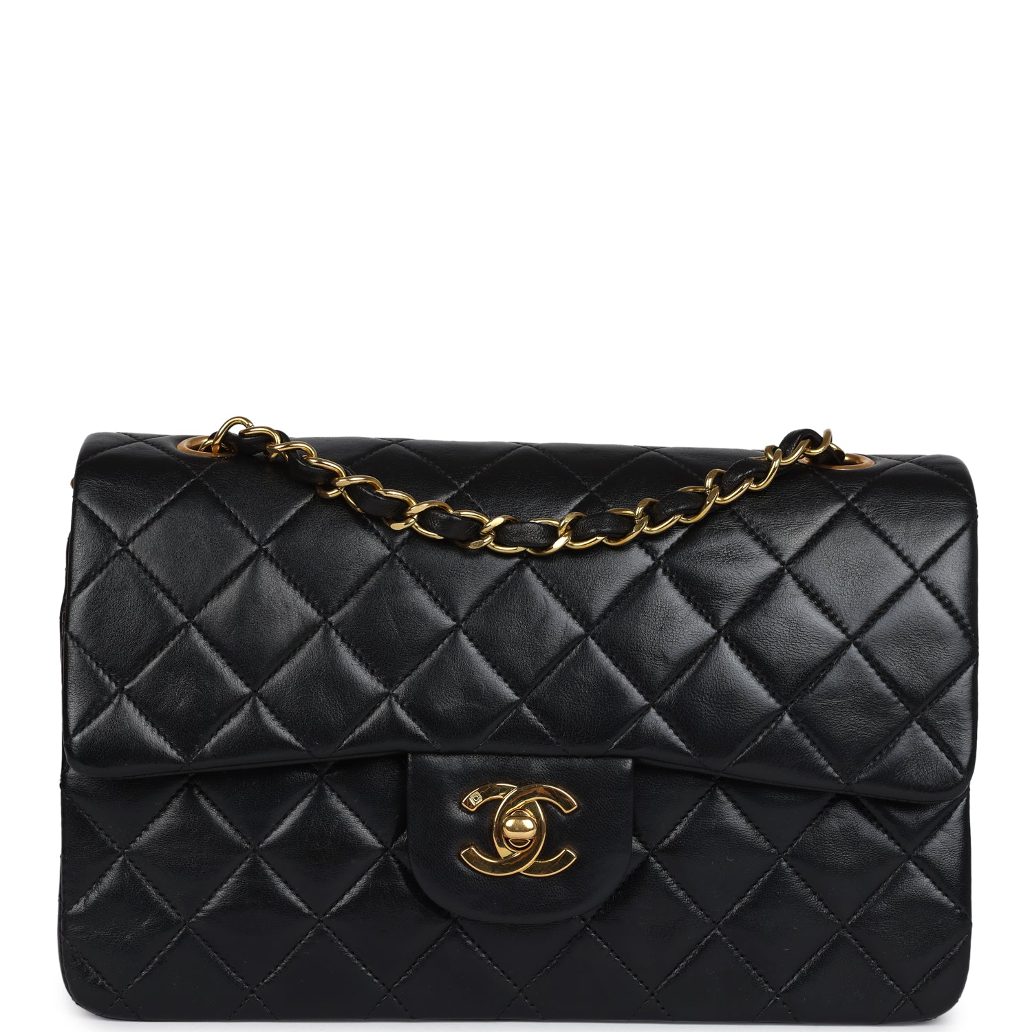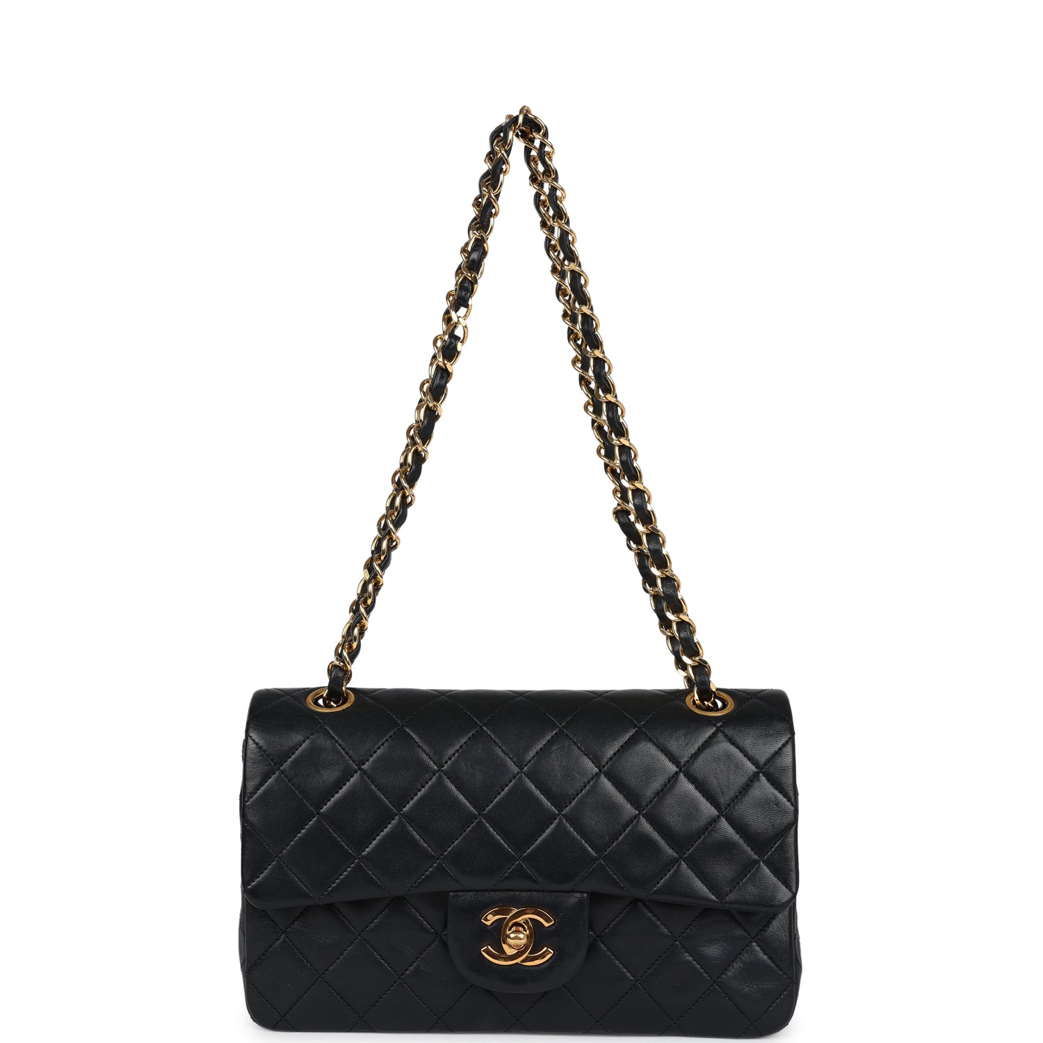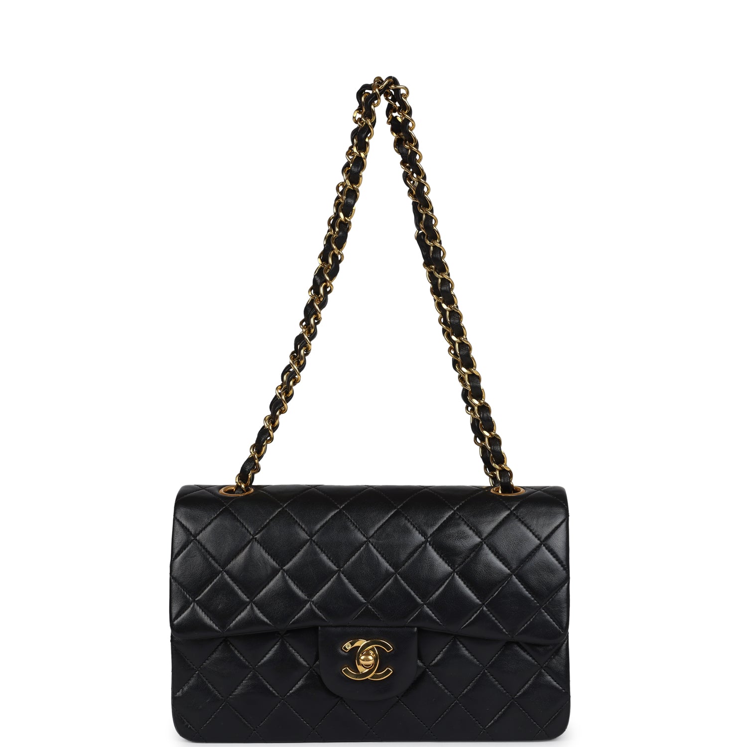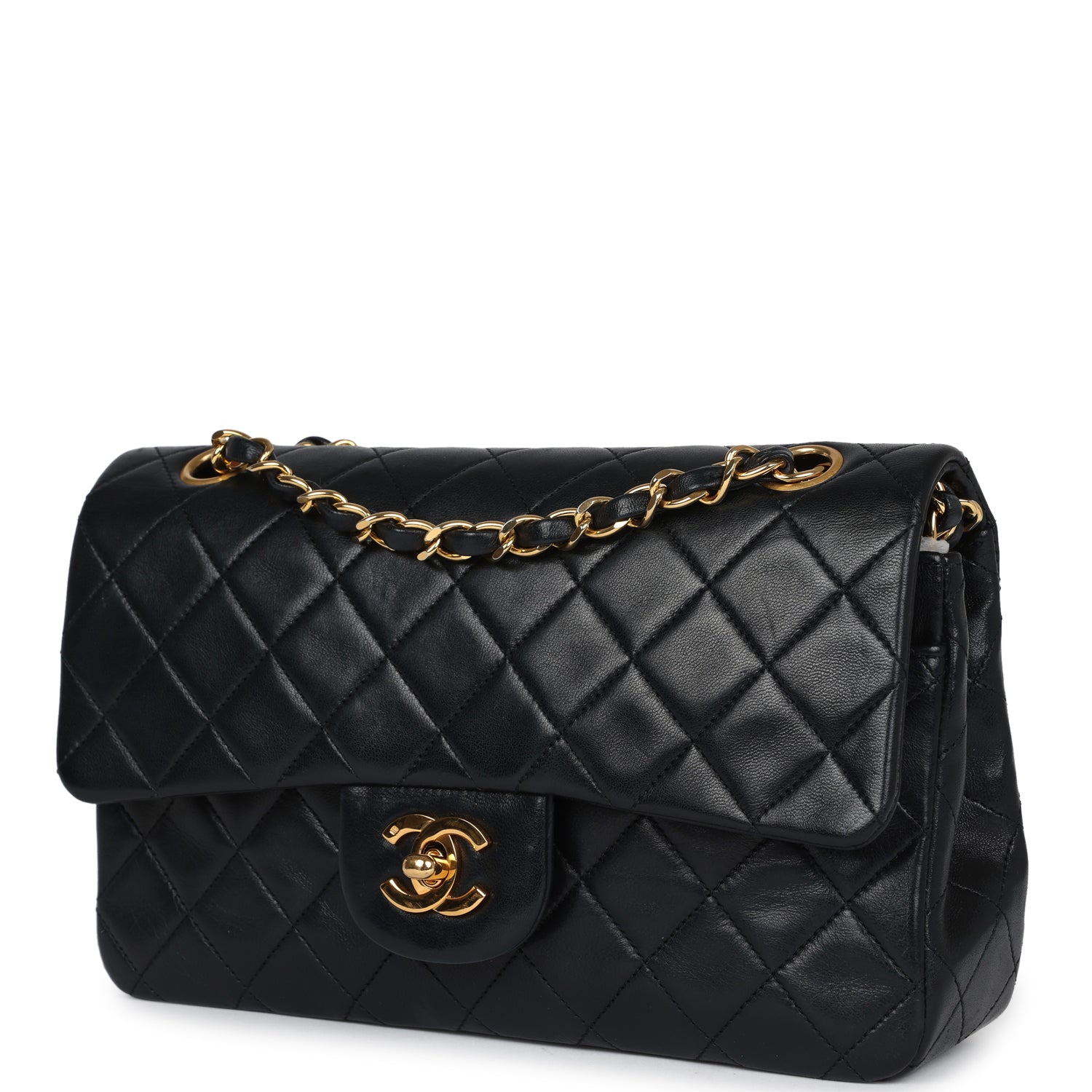 Vintage Chanel Small Classic Double Flap Black Lambskin Gold Hardware