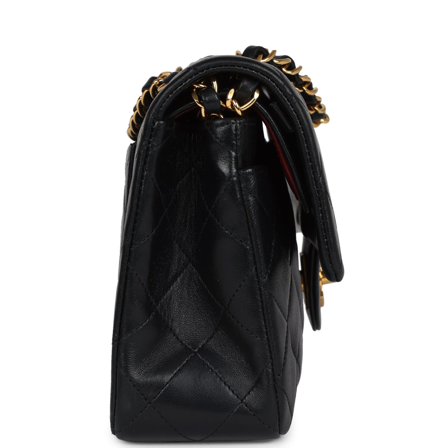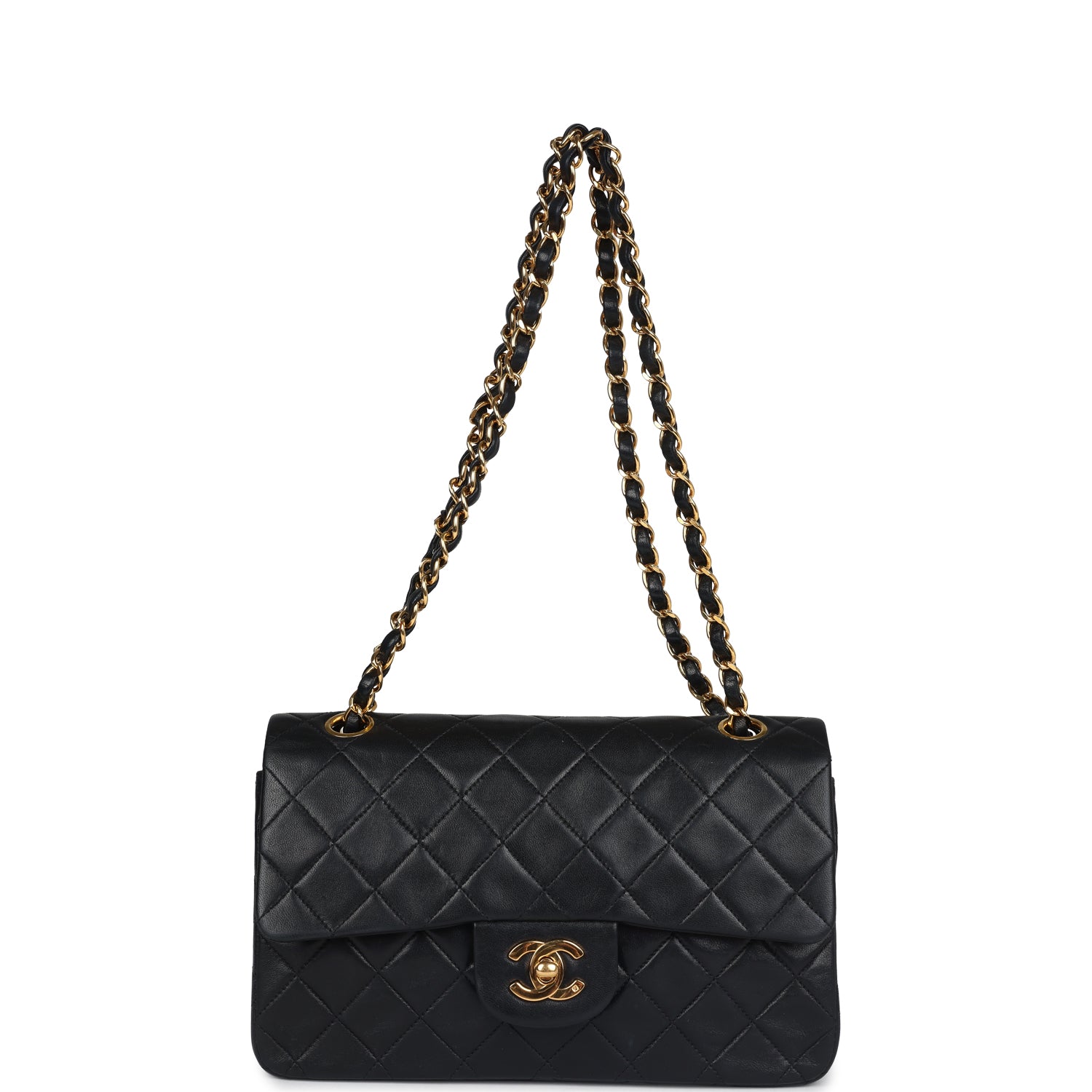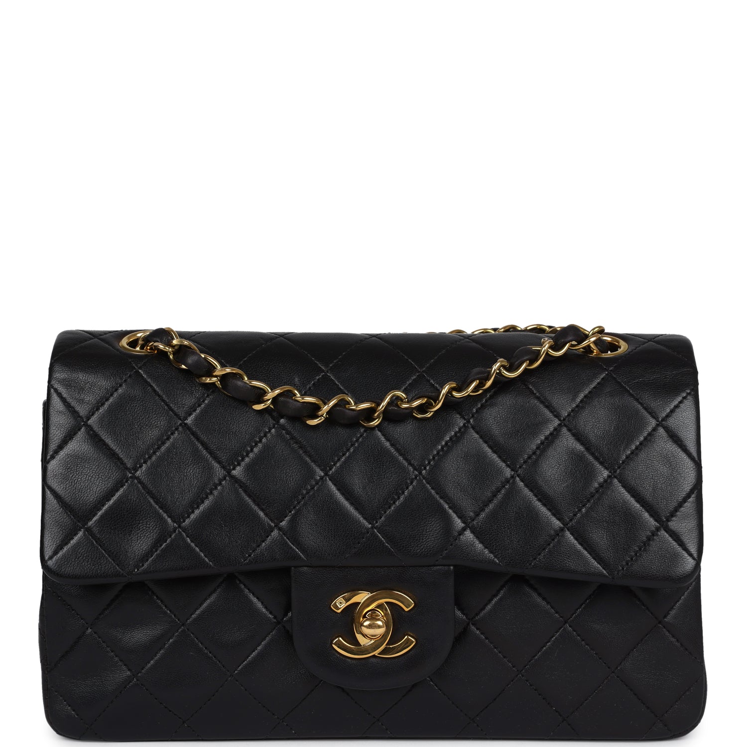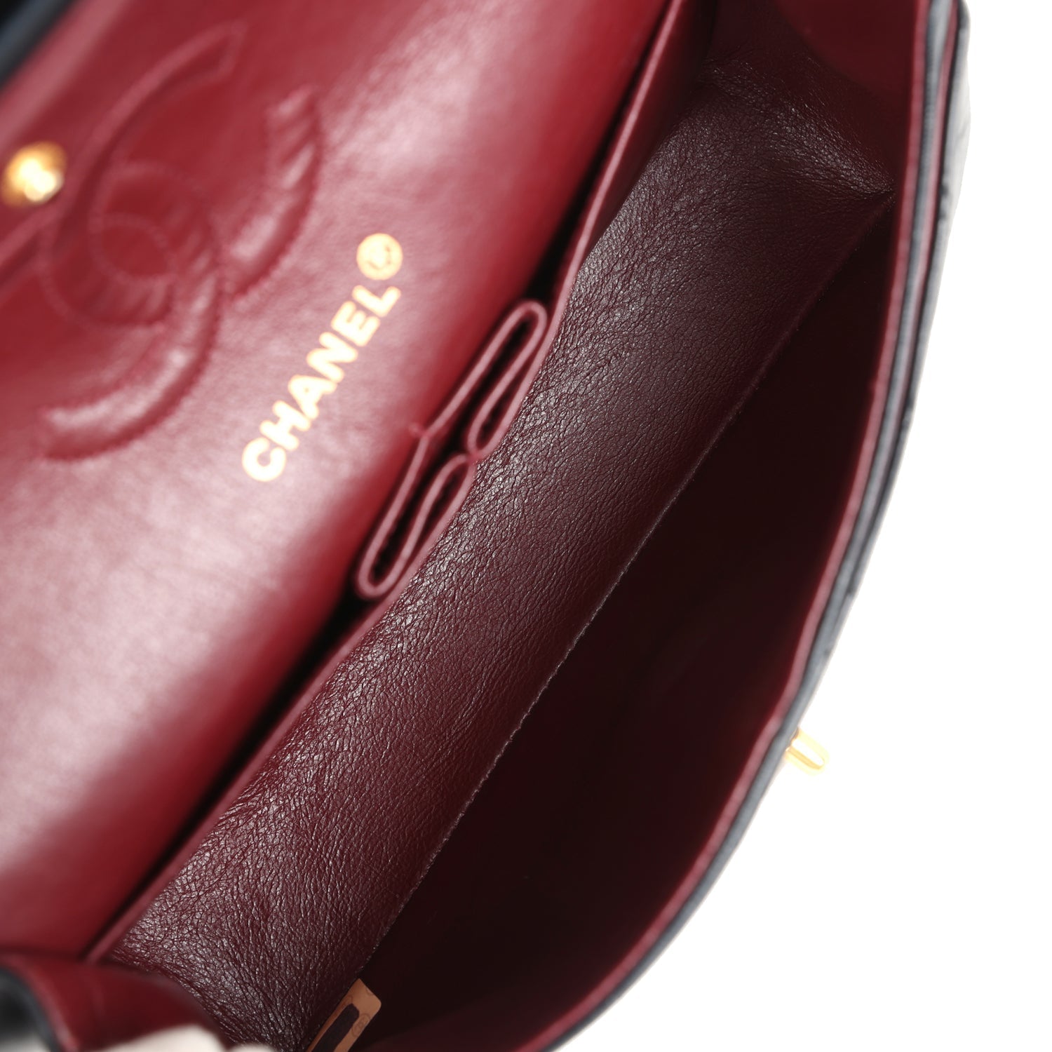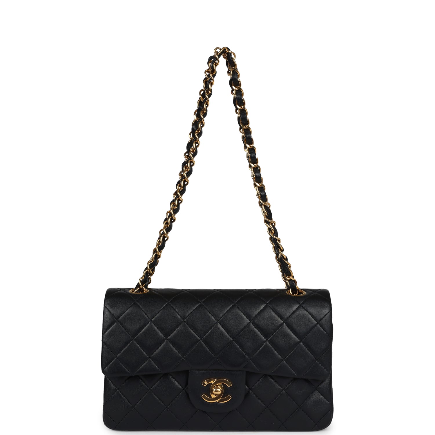 Vintage Chanel Small Classic Double Flap Black Lambskin Gold Hardware