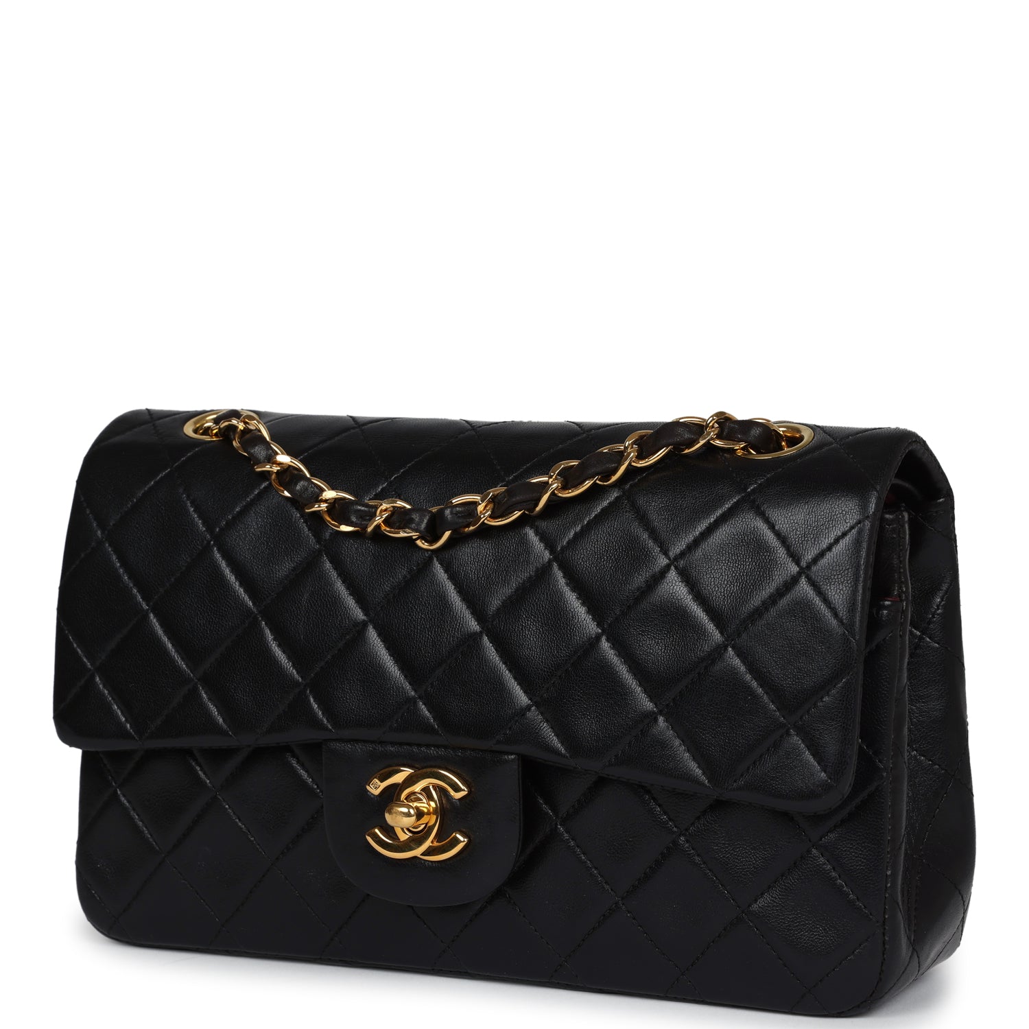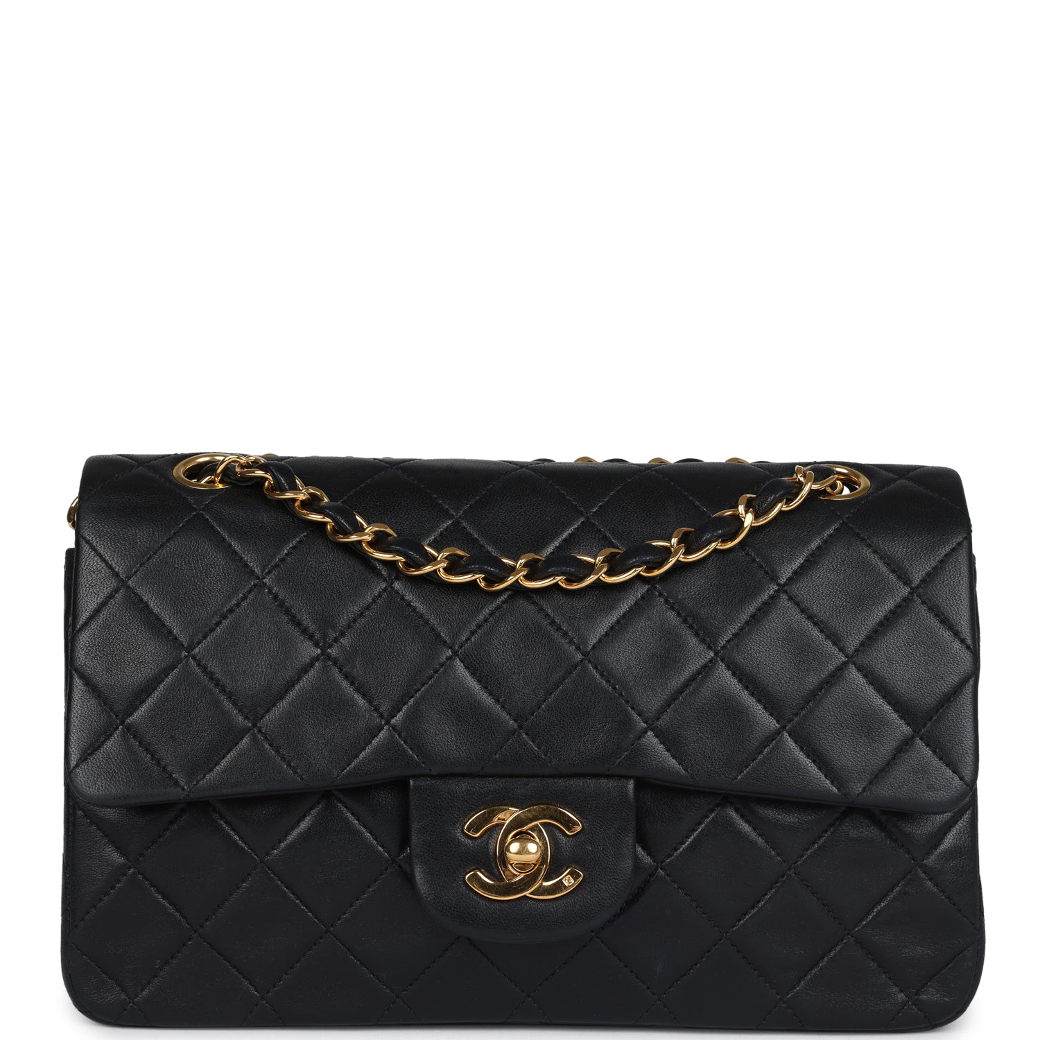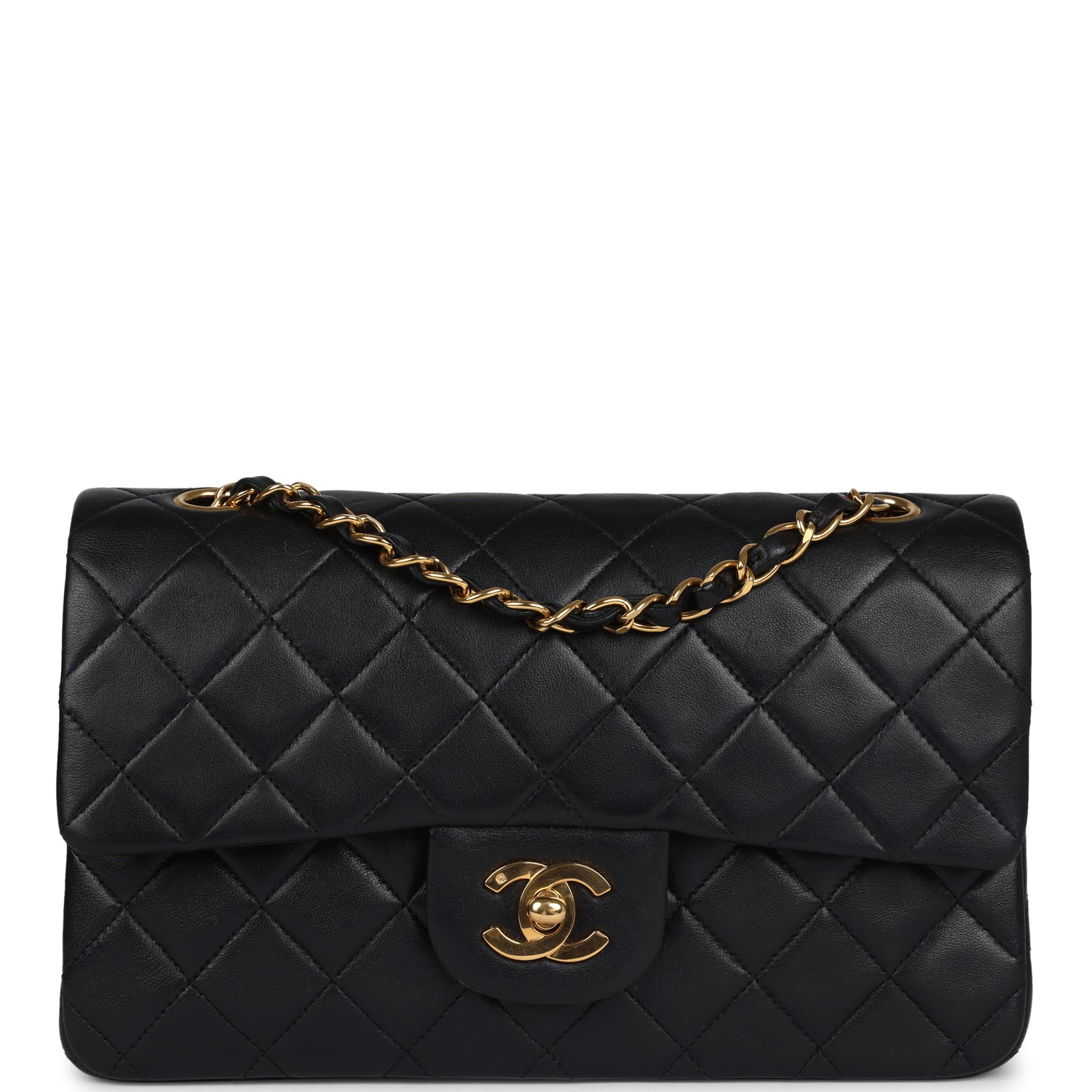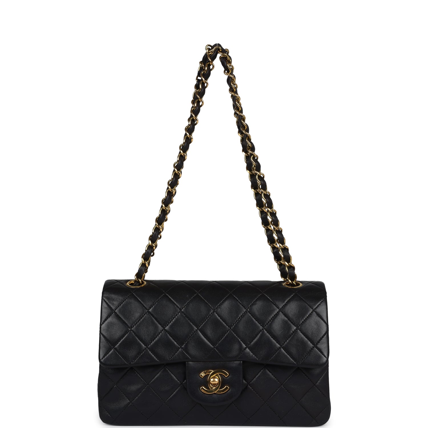 Vintage Chanel Small Classic Double Flap Black Lambskin Gold Hardware