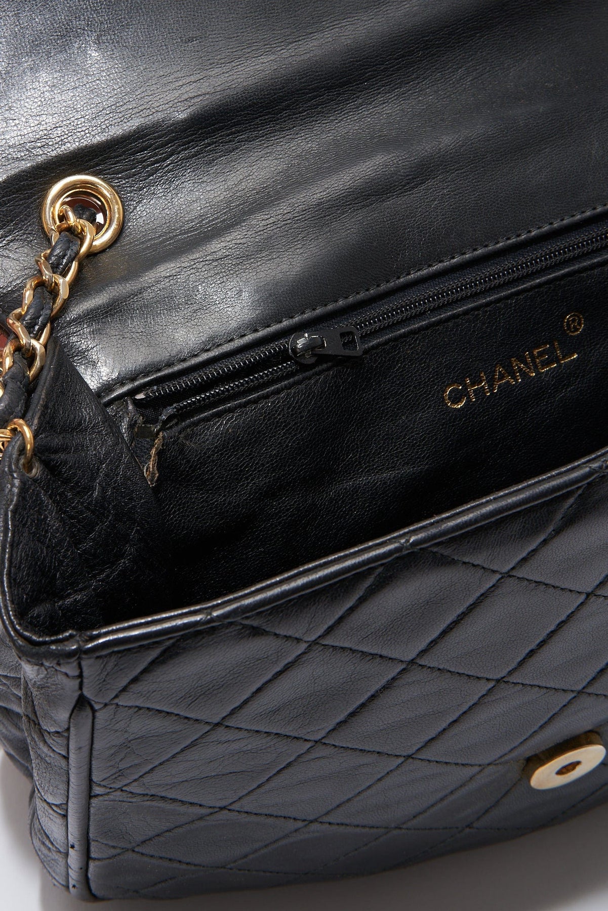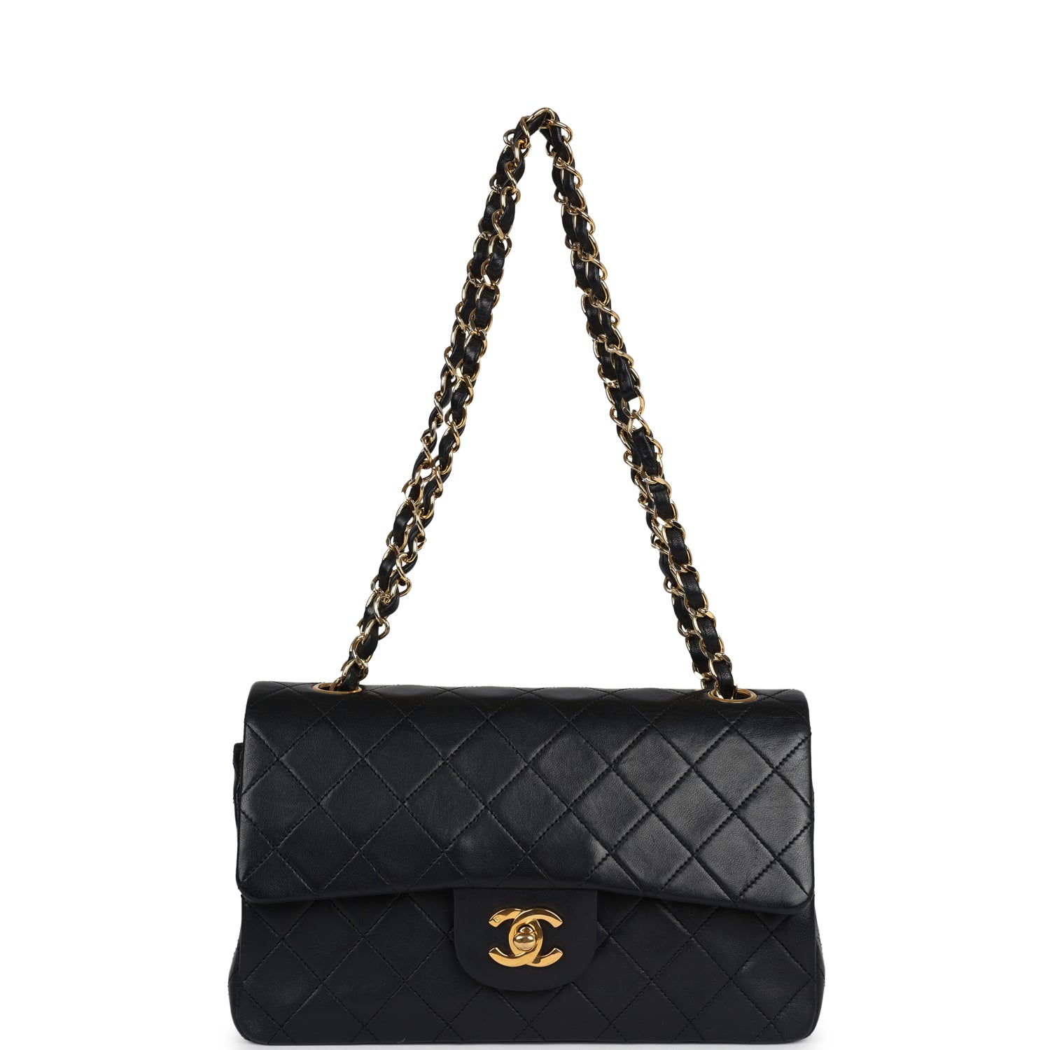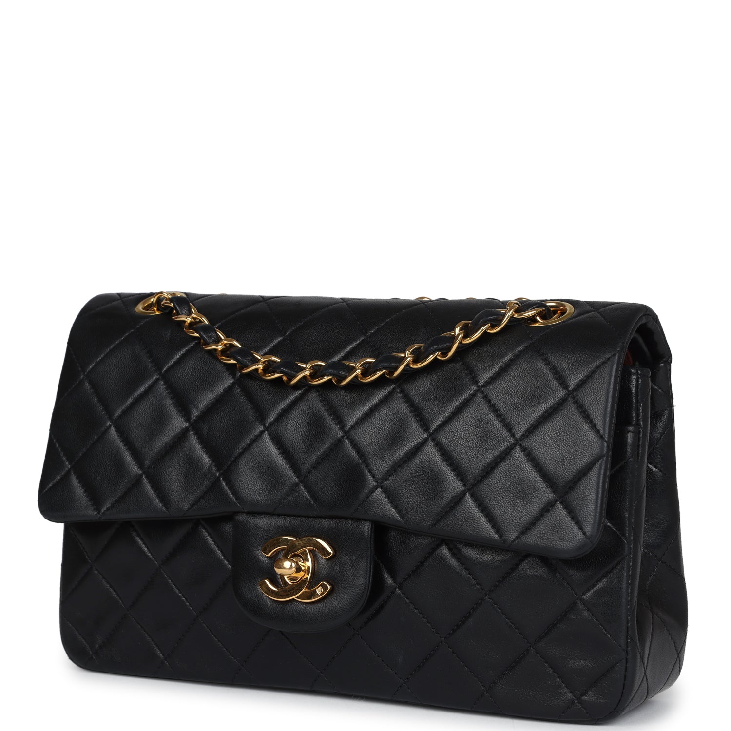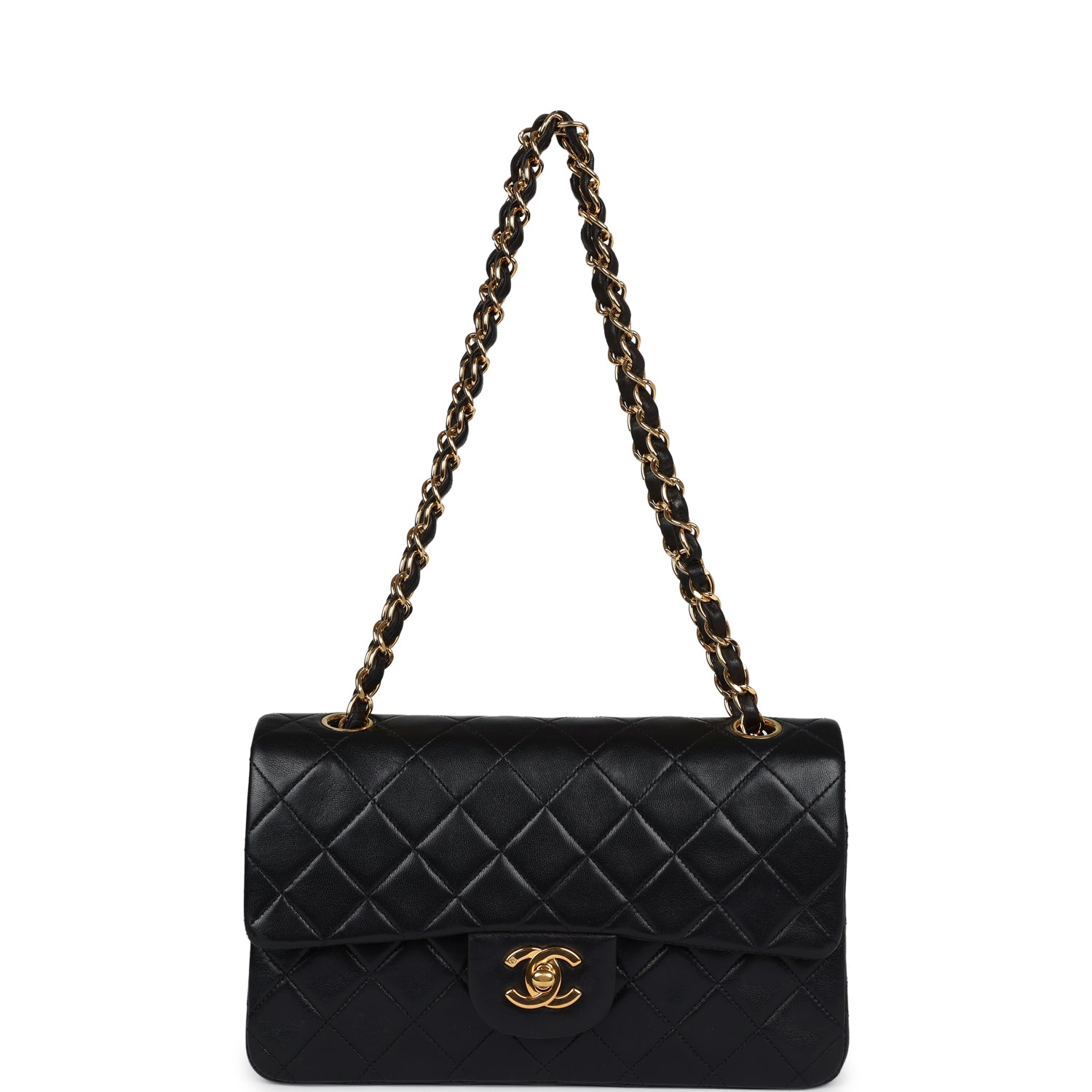 Vintage Chanel Small Classic Double Flap Black Lambskin Gold Hardware