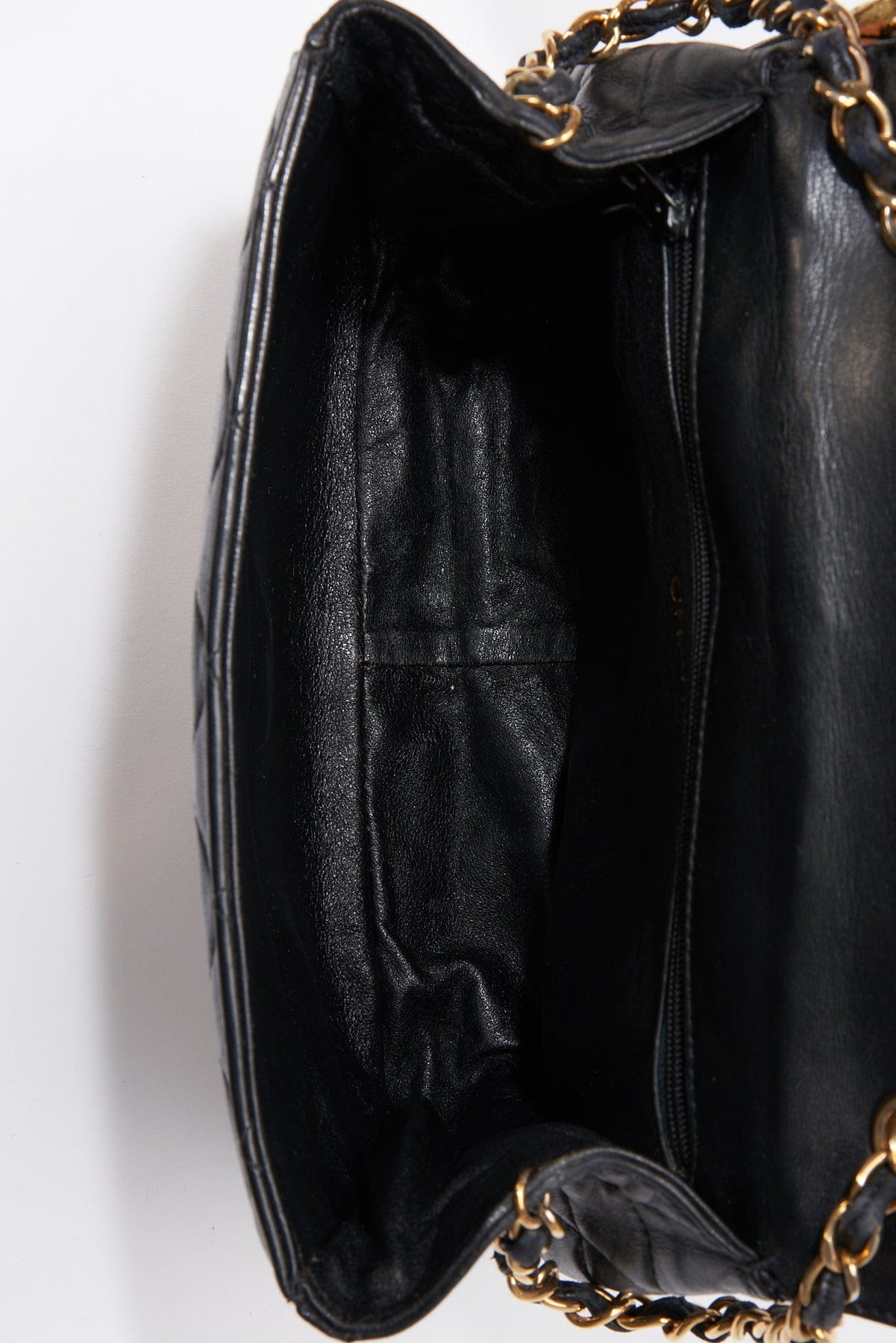 Regular price $2,040.00 Sale price $410.00 Save $1,630.00A beautiful vintage Chanel single flap crossbody bag made from quilted black lambskin leather and features the sought after CC tassel charm. Inside the bag has an interior zipped pocket for valuables.