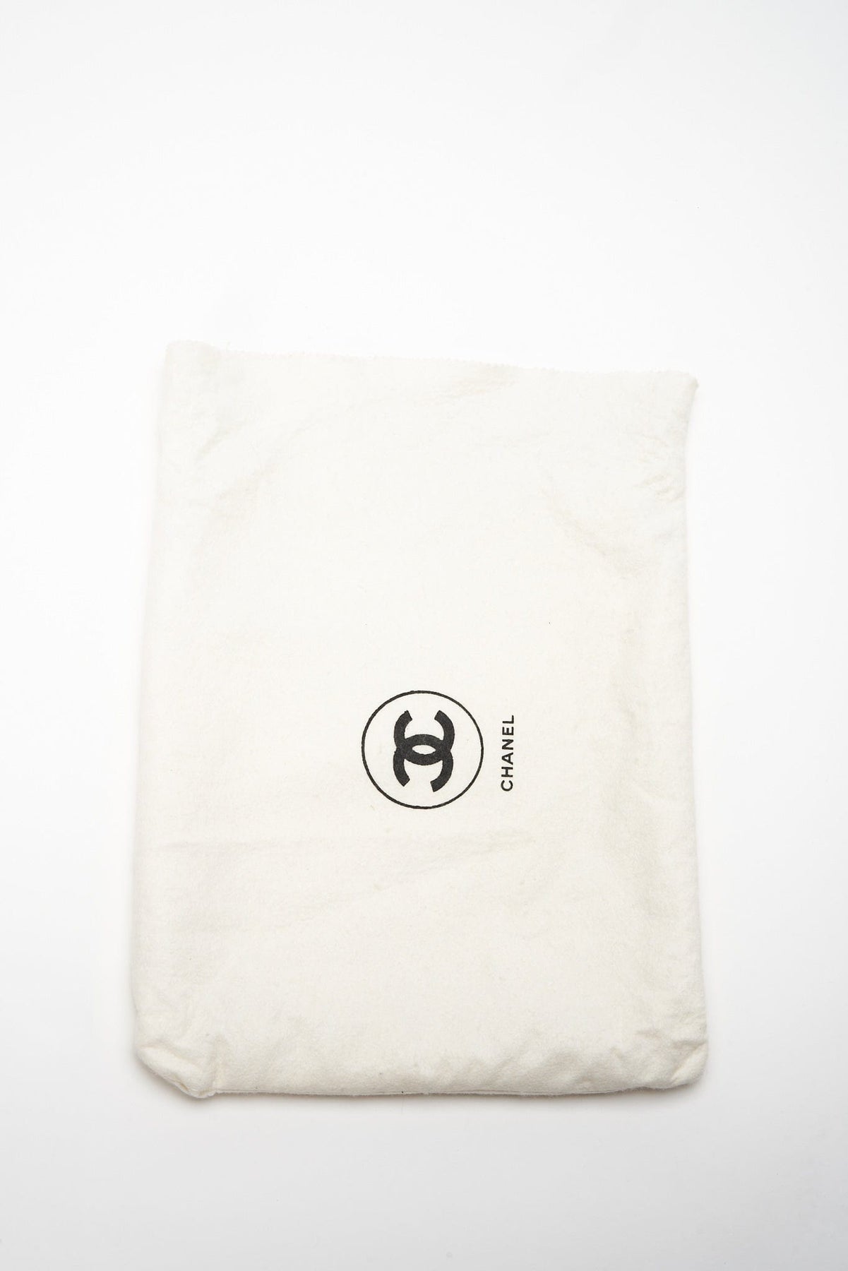 The serial number sticker is still attached and tells us this bag was made between 1989-1991. This bag also comes with the original Chanel dust bag.