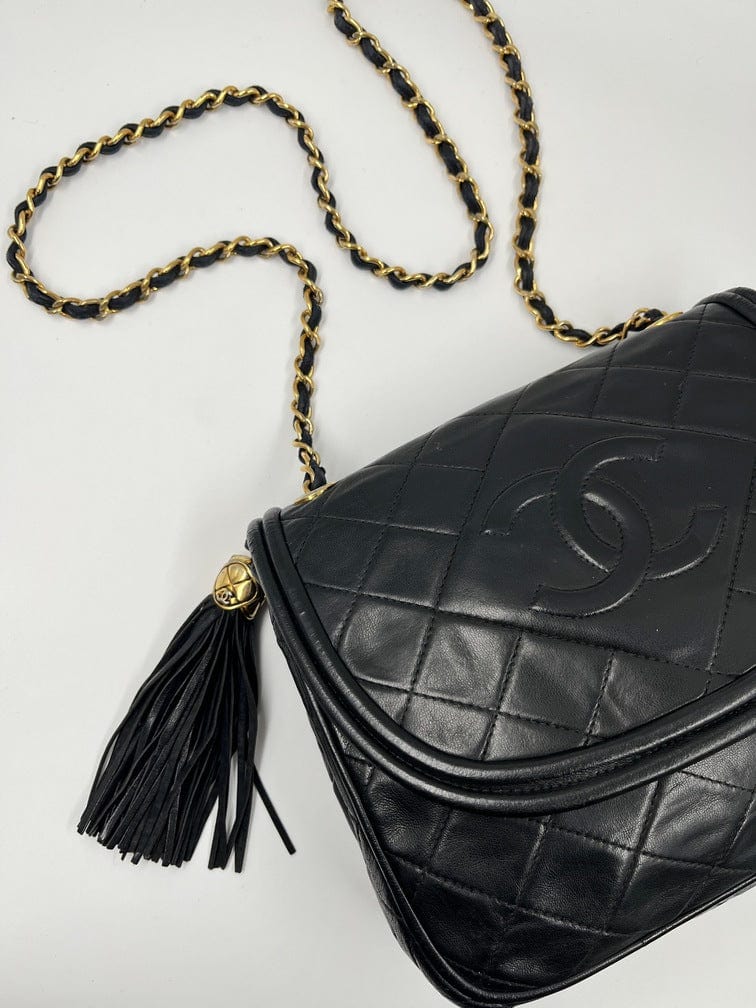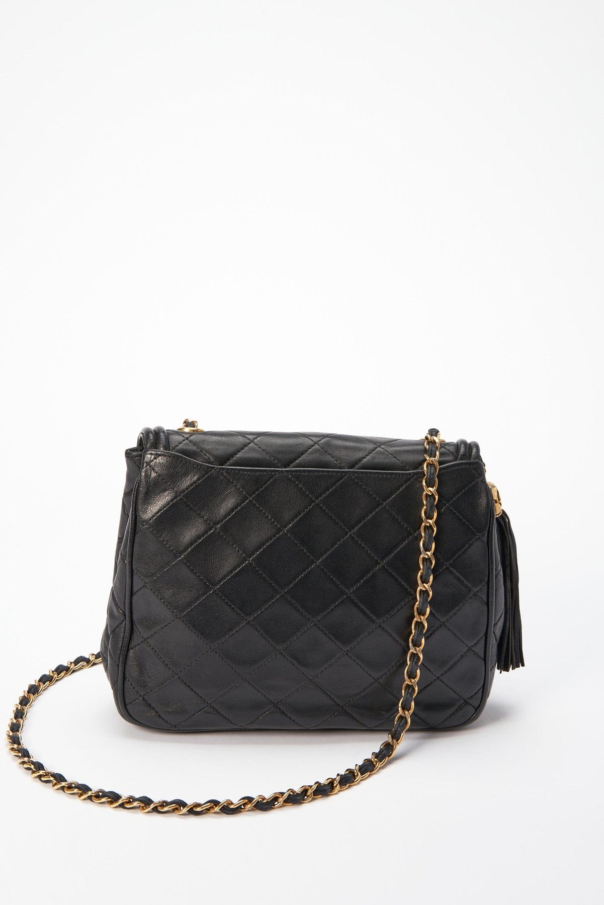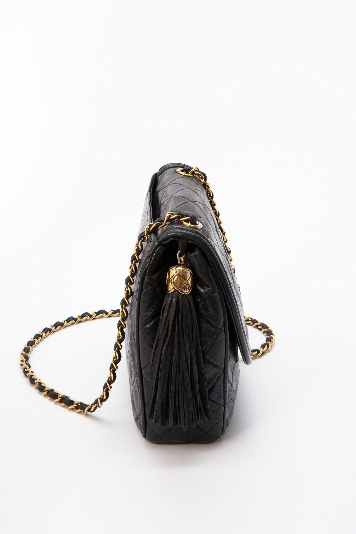 Vintage Chanel Single Flap Bag with Tassel - Black