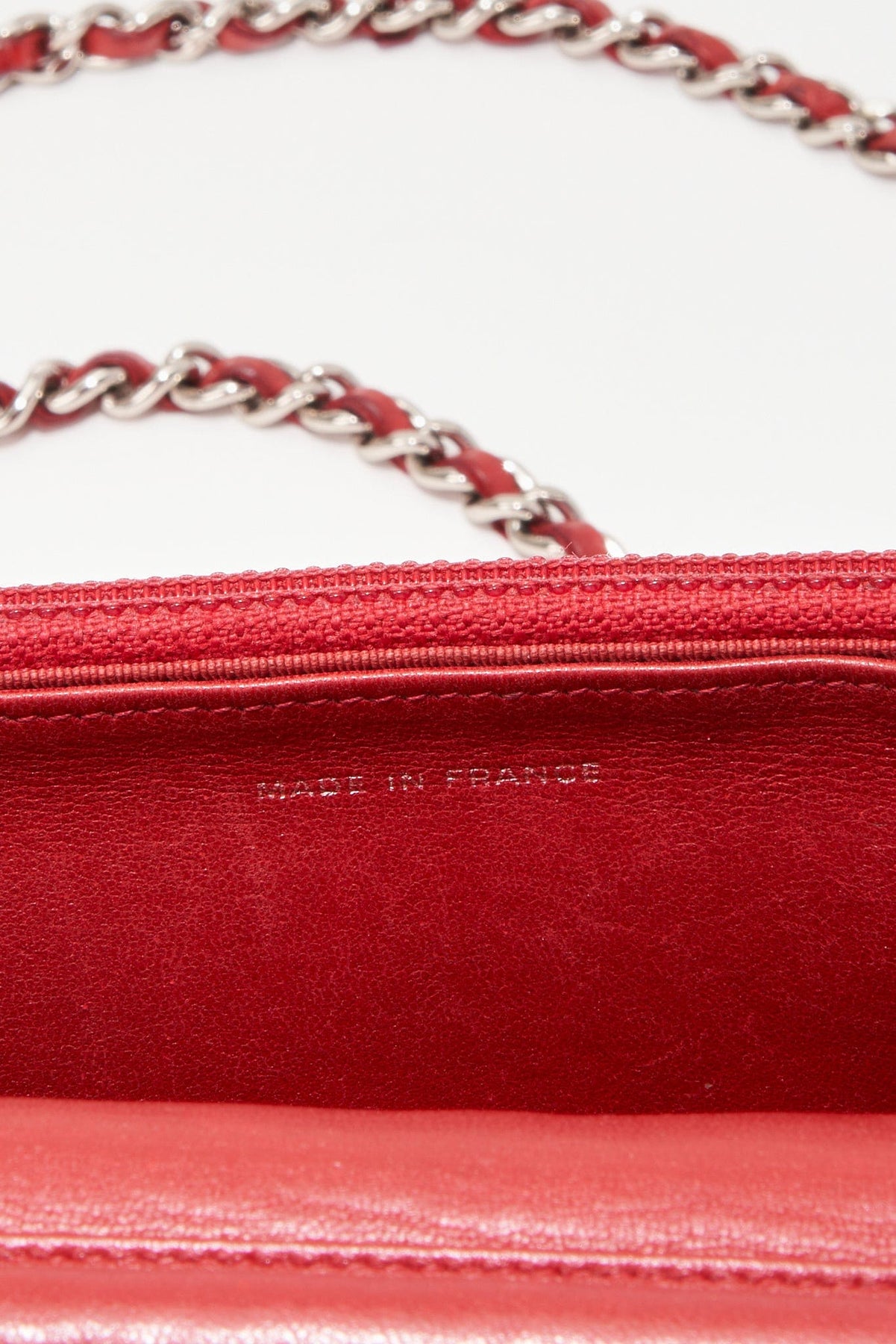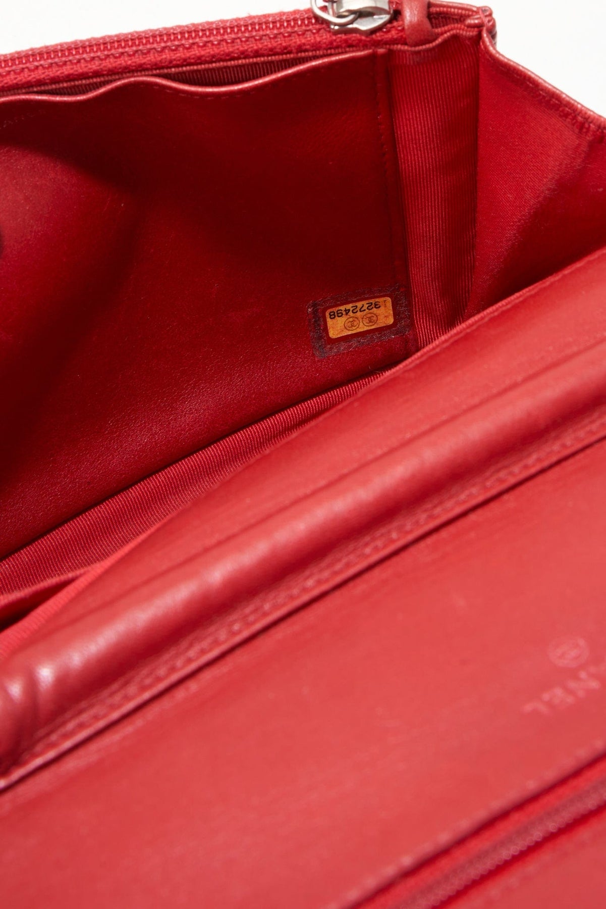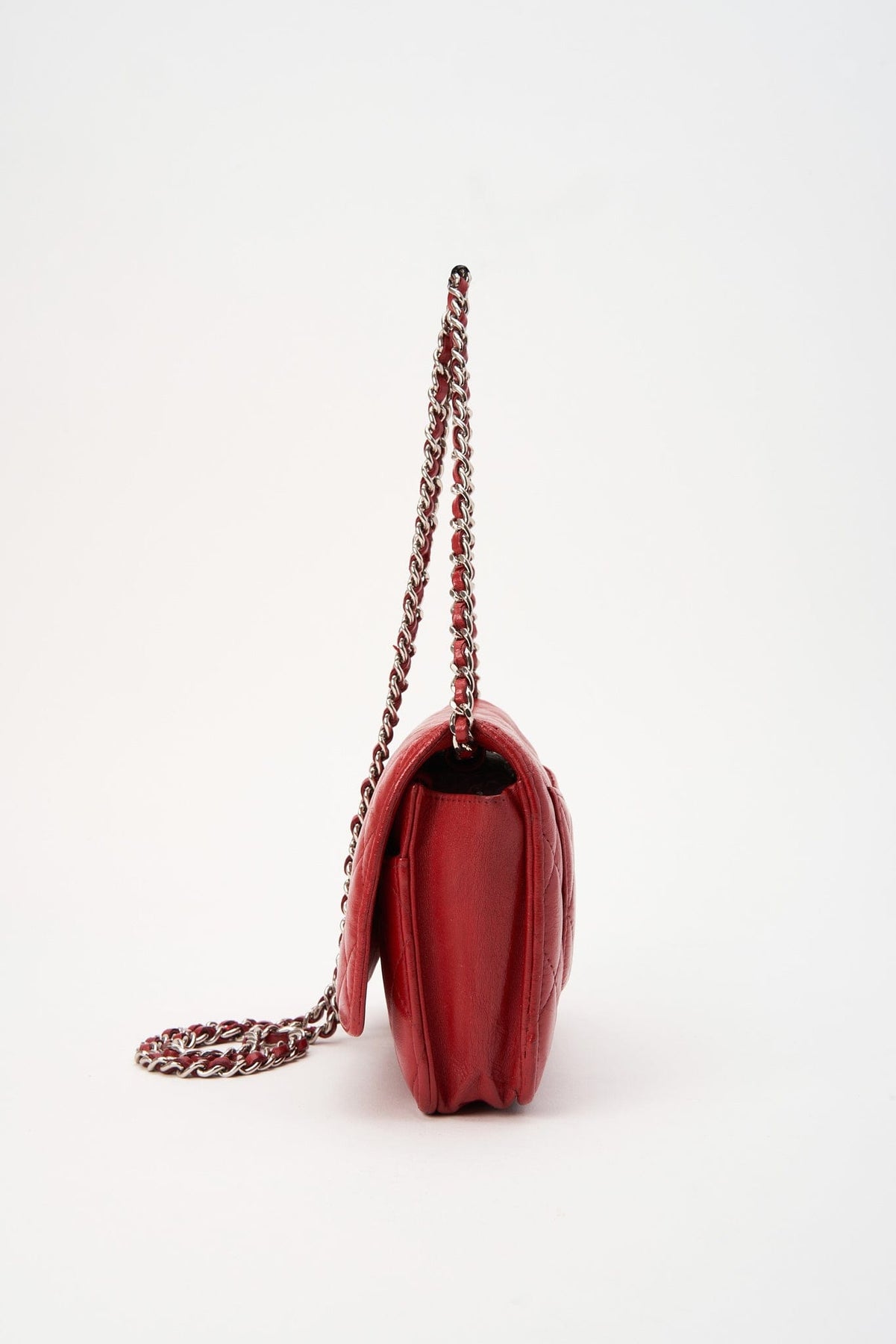Regular price $2,250.00 Sale price $440.00 Save $1,810.00This Small Classic Flap Bag is in red lambskin leather with gold tone hardware and features a front flap with signature CC turnlock closure, half moon back pocket, and adjustable interwoven gold tone chainlink and Red leather shoulder strap.
