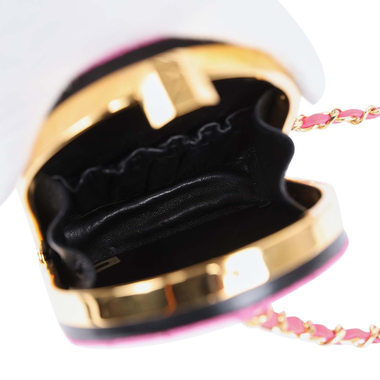 Condition: Vintage; Excellent to Mint - The bag retains its structure. There is no plastic on the hardware. The exterior leather is clean overall with minor wear to the contrasting white patent CC logo. The top handle is a little loose. The interior has scratching and press marks to the leather near the slip pocket. The date stamp sticker is legible and still intact.