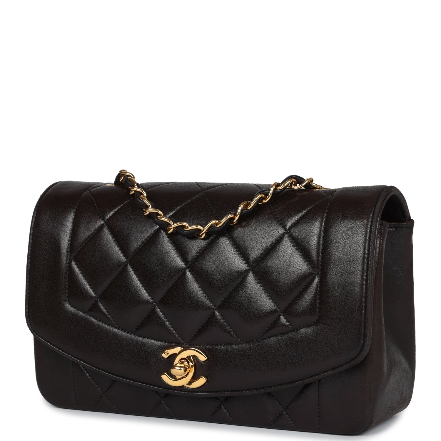 Vintage Chanel Small Diana Flap Bag Black Lambskin Gold Hardware