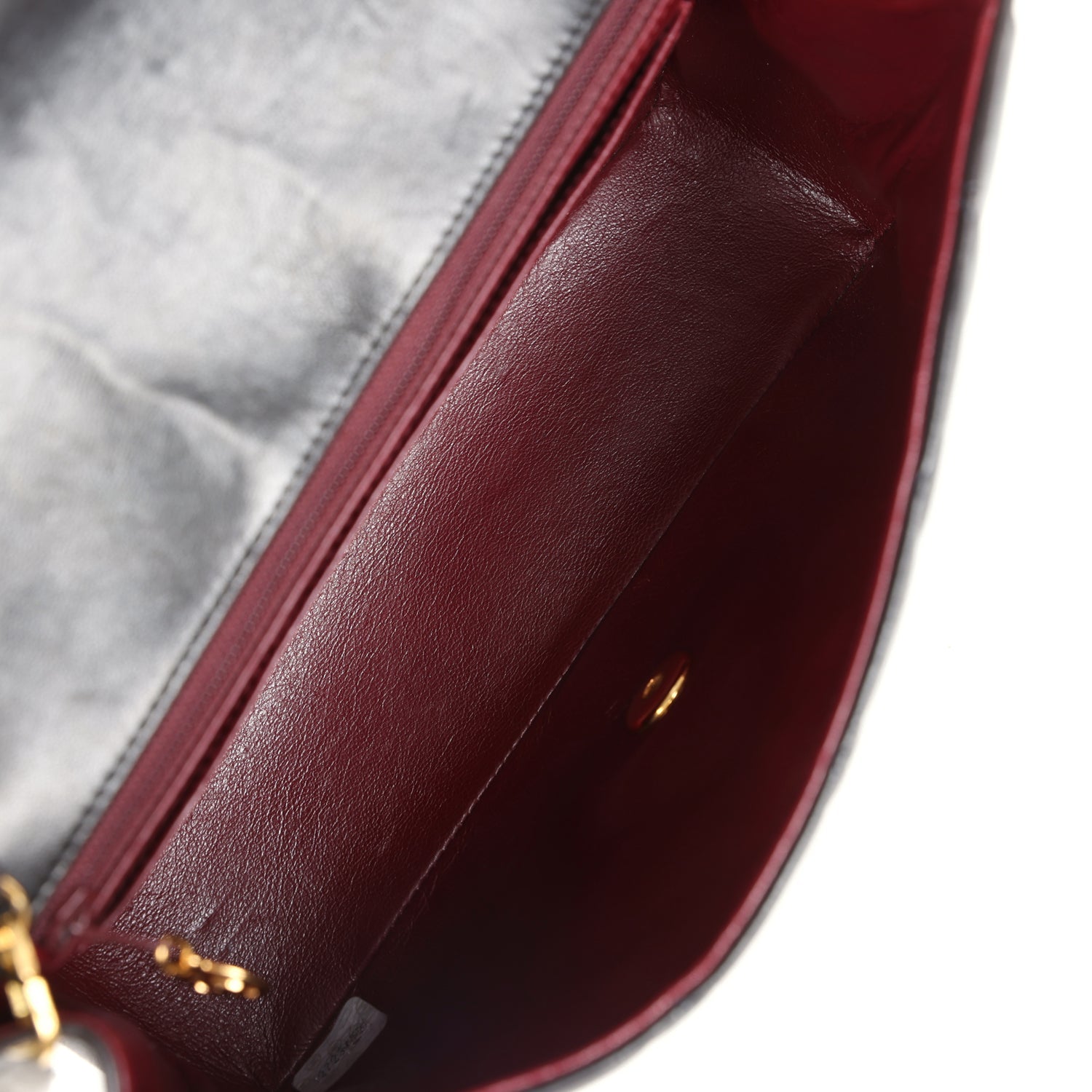 Regular price $17,430.00 Sale price $1,190.00 Save $16,240.00The interior is lined in burgundy leather with the "love letter" zipper compartment underneath the first flap, an "outer" slit pocket under the second flap, and an interior compartment with two open pockets separated by a "lipstick" compartment.