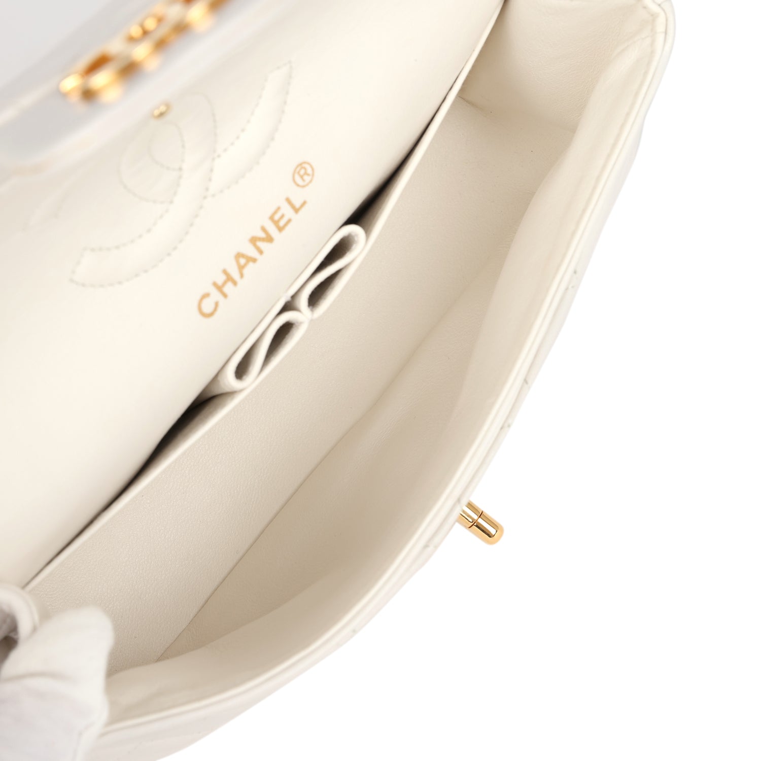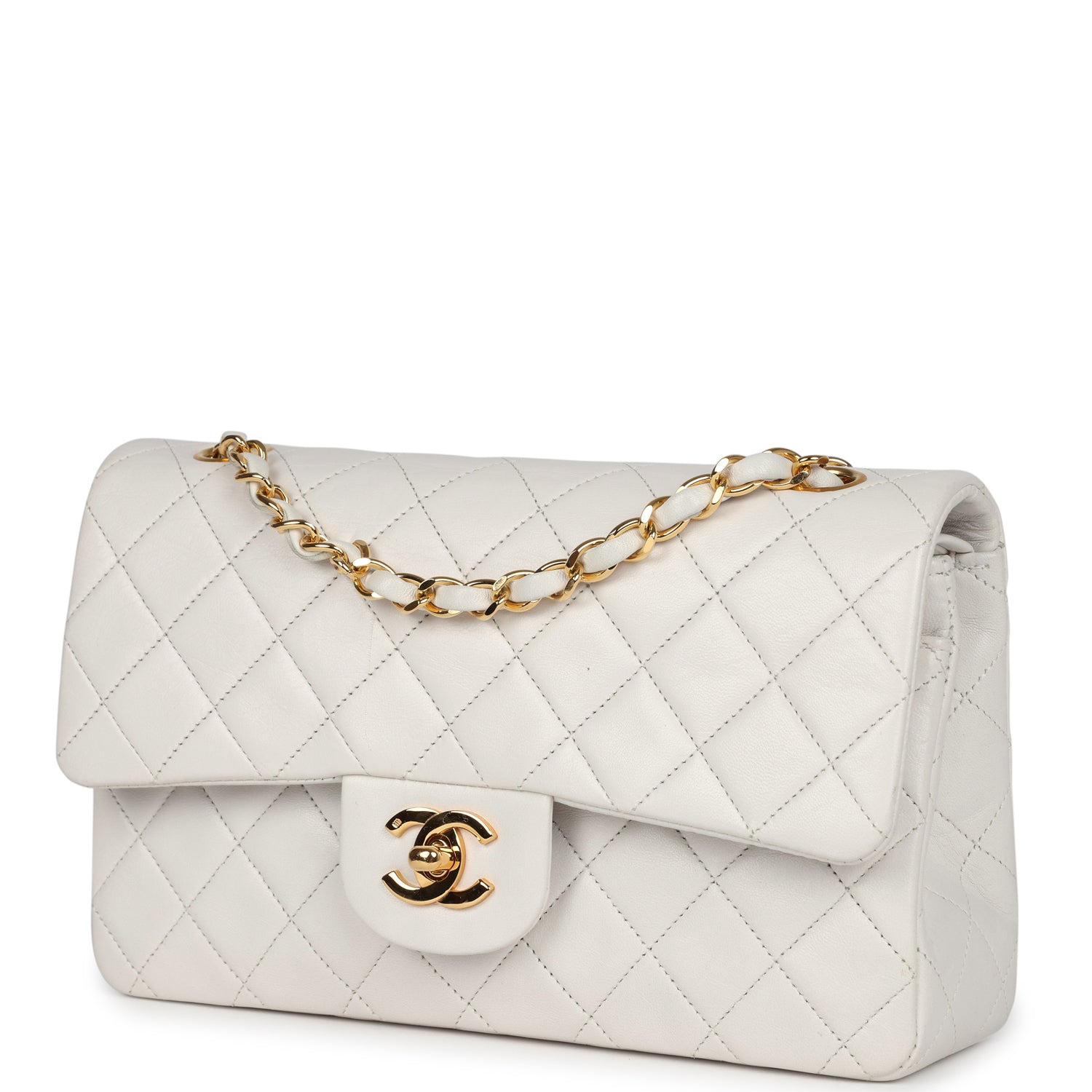 Vintage Chanel Small Classic Double Flap Bag White Lambskin Gold Hardware