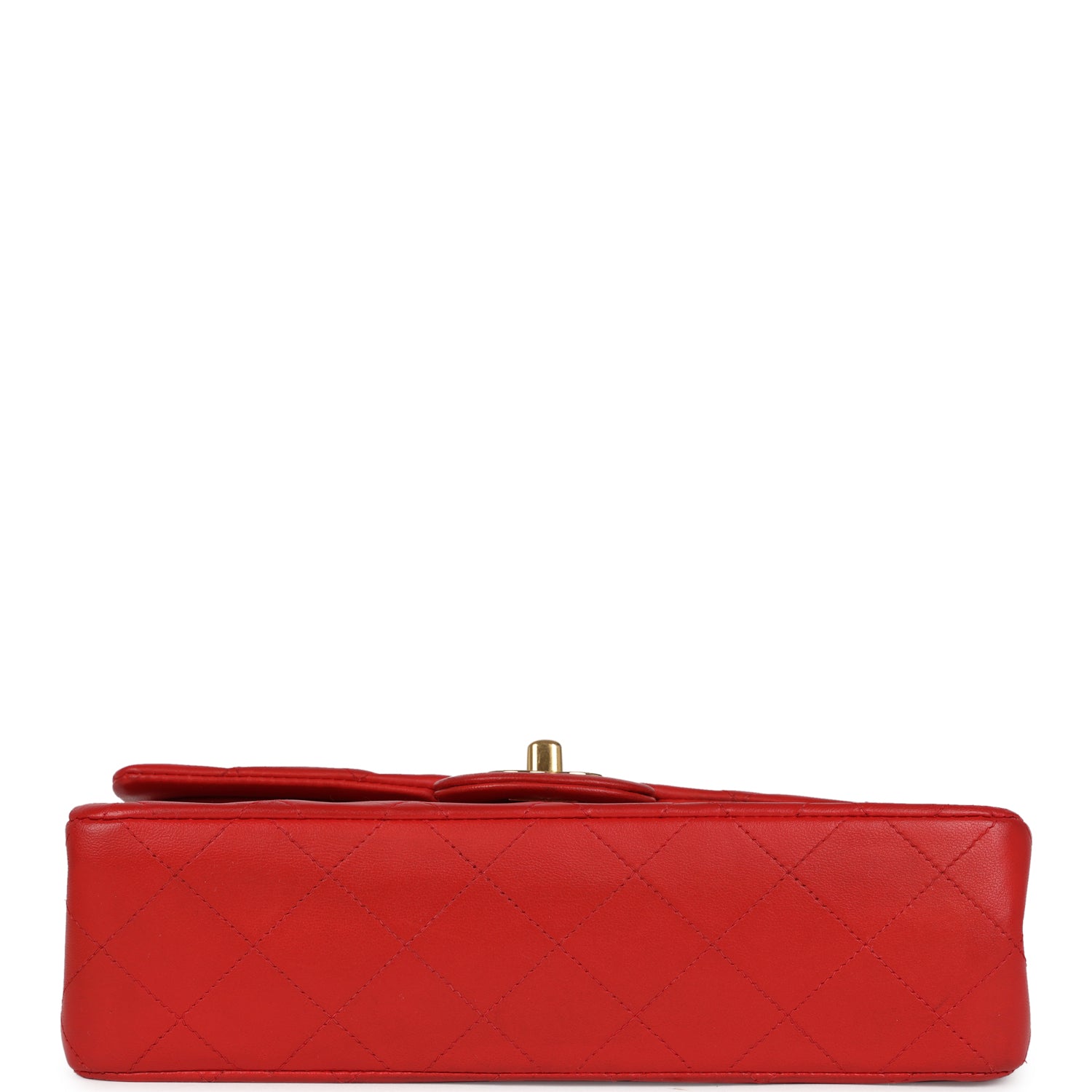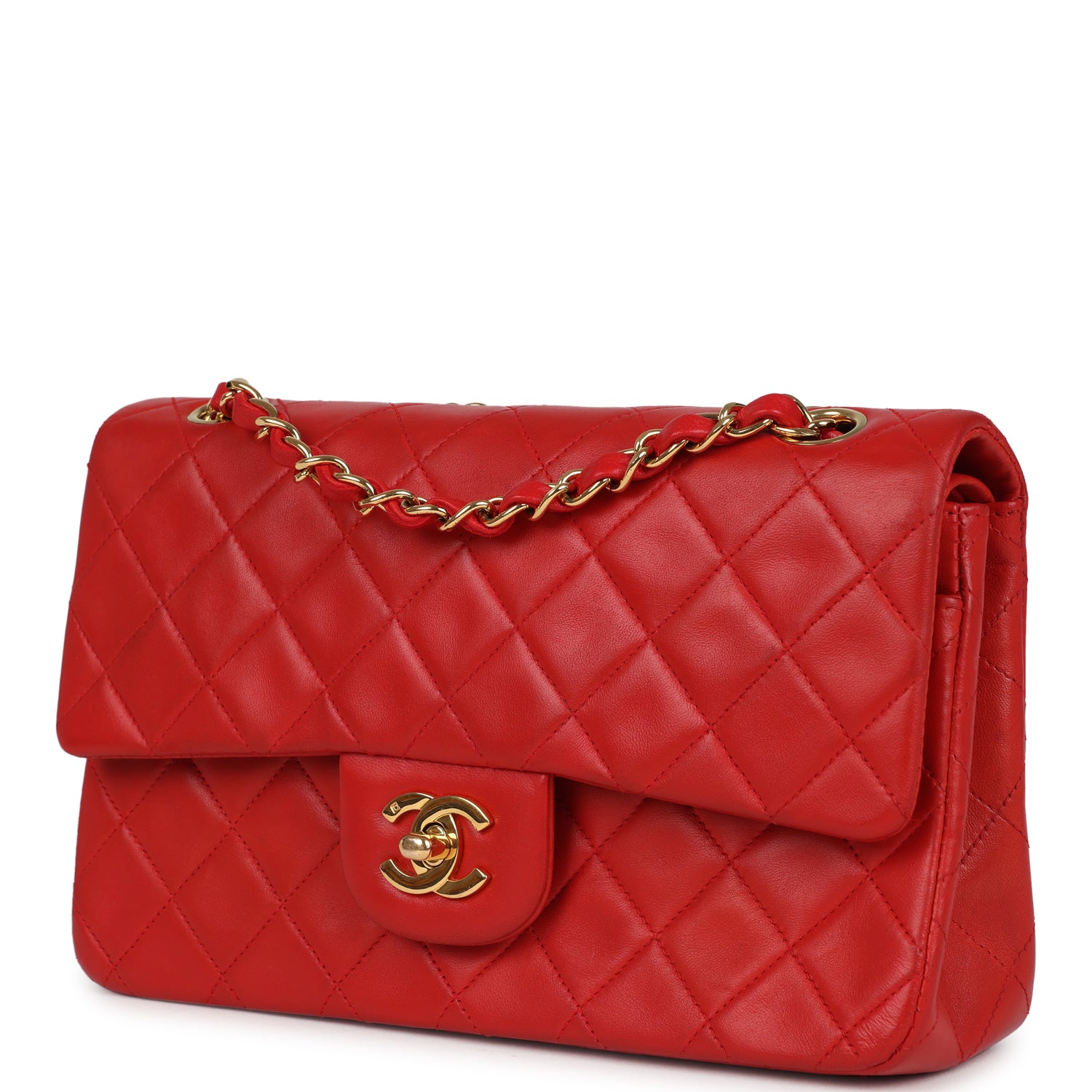 Vintage Chanel Small Classic Double Flap Bag Red Lambskin Gold Hardware