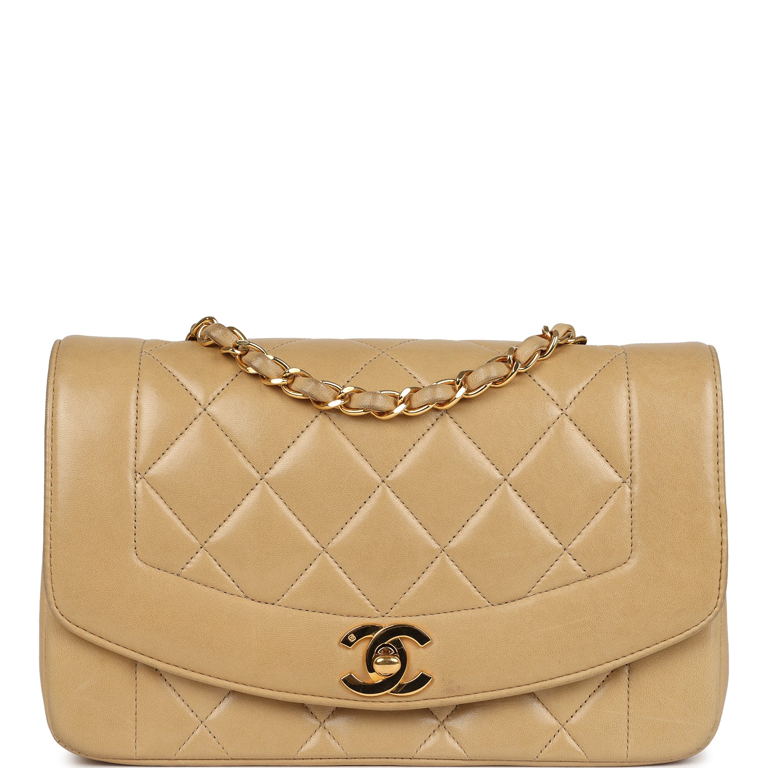 Vintage Chanel Small Diana Flap Bag Beige Lambskin Gold Hardware