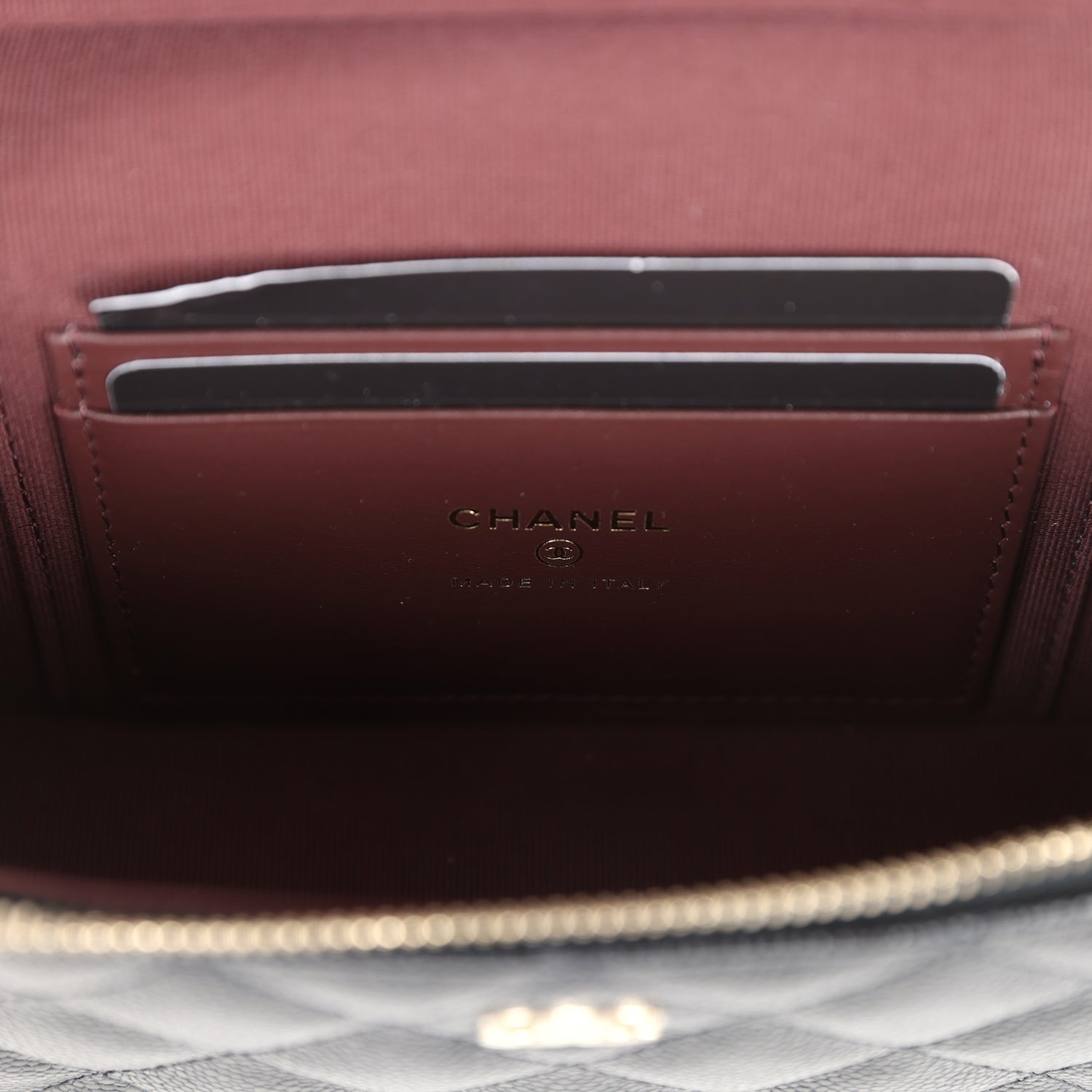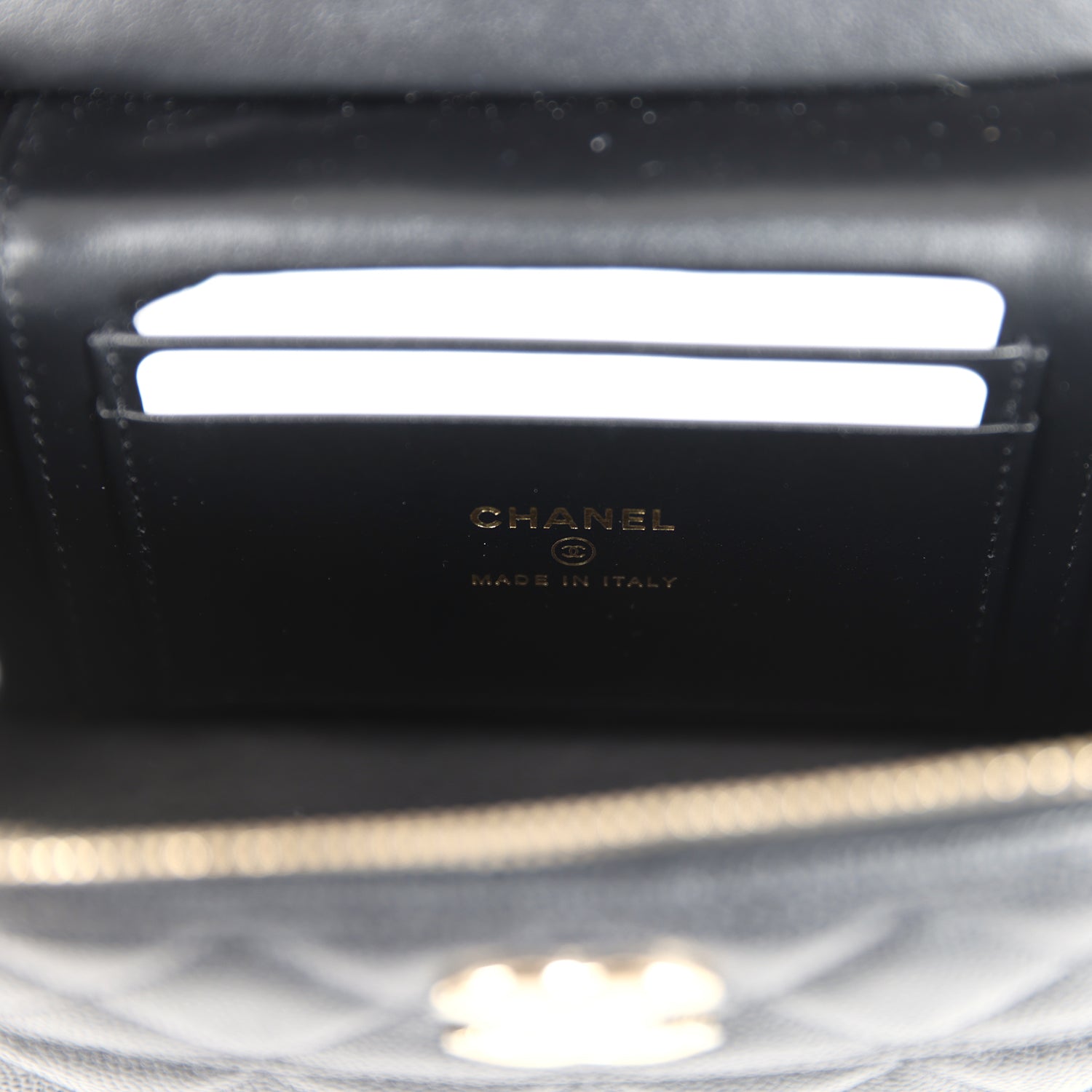 CHANEL CC Top Handle Zip Around Vanity Case with Chain Quilted Caviar Small