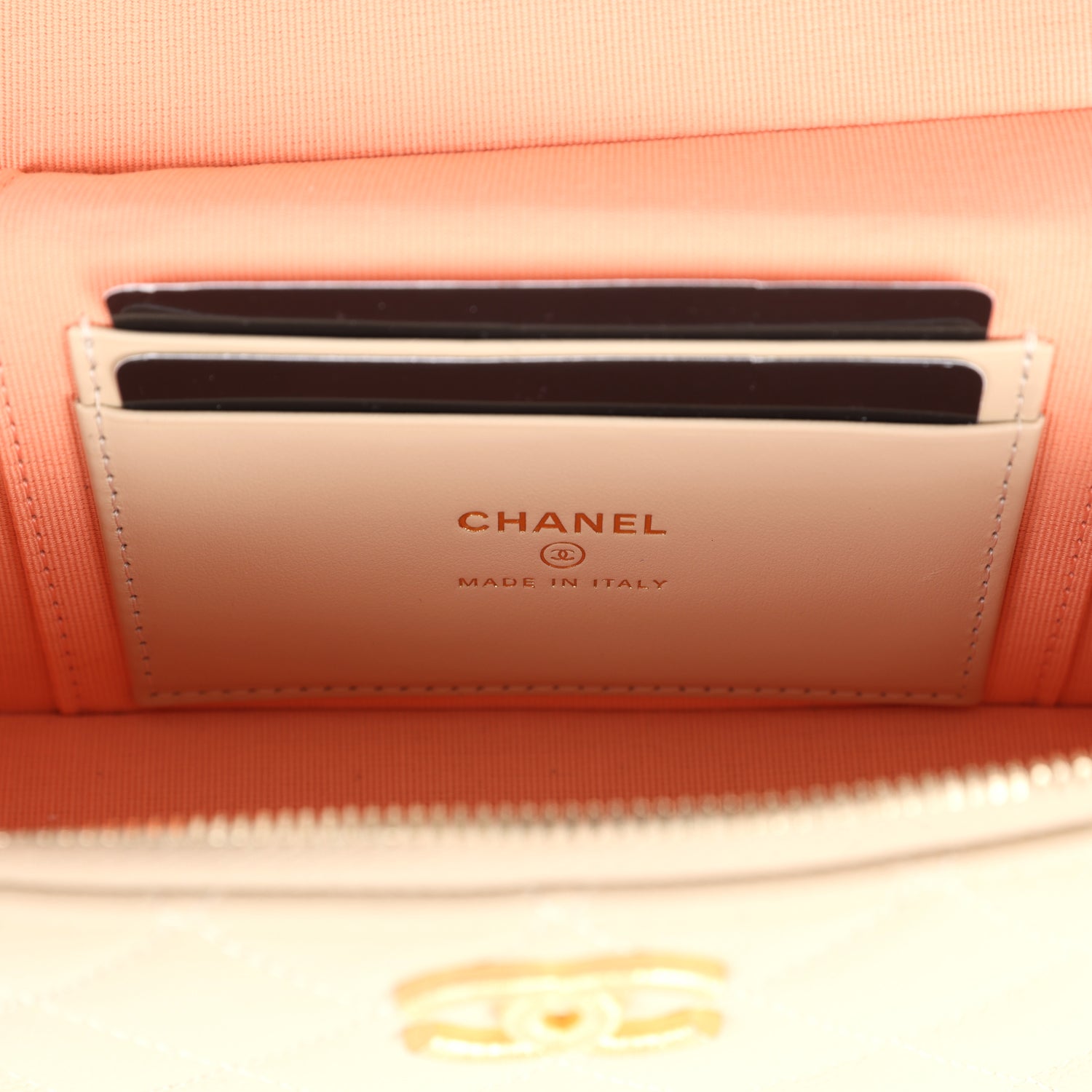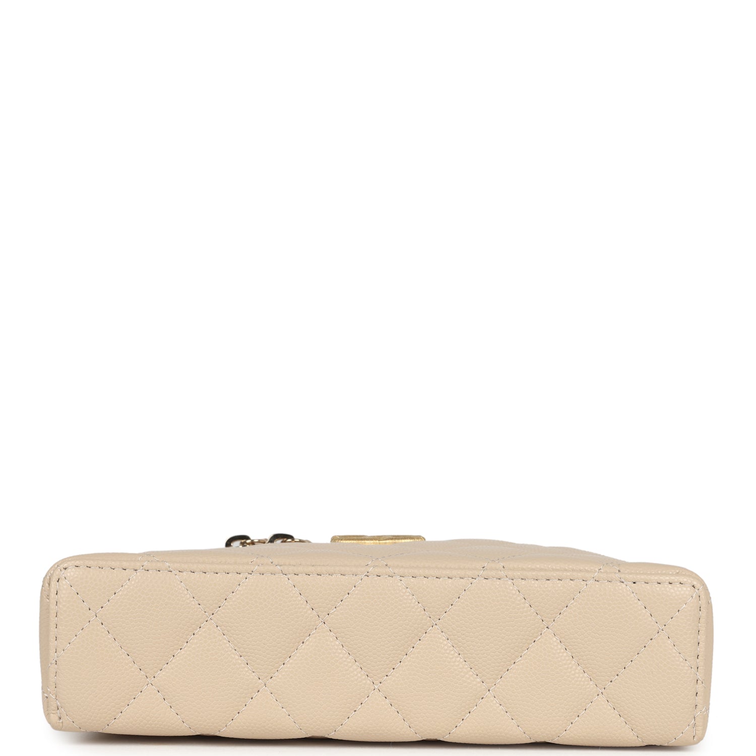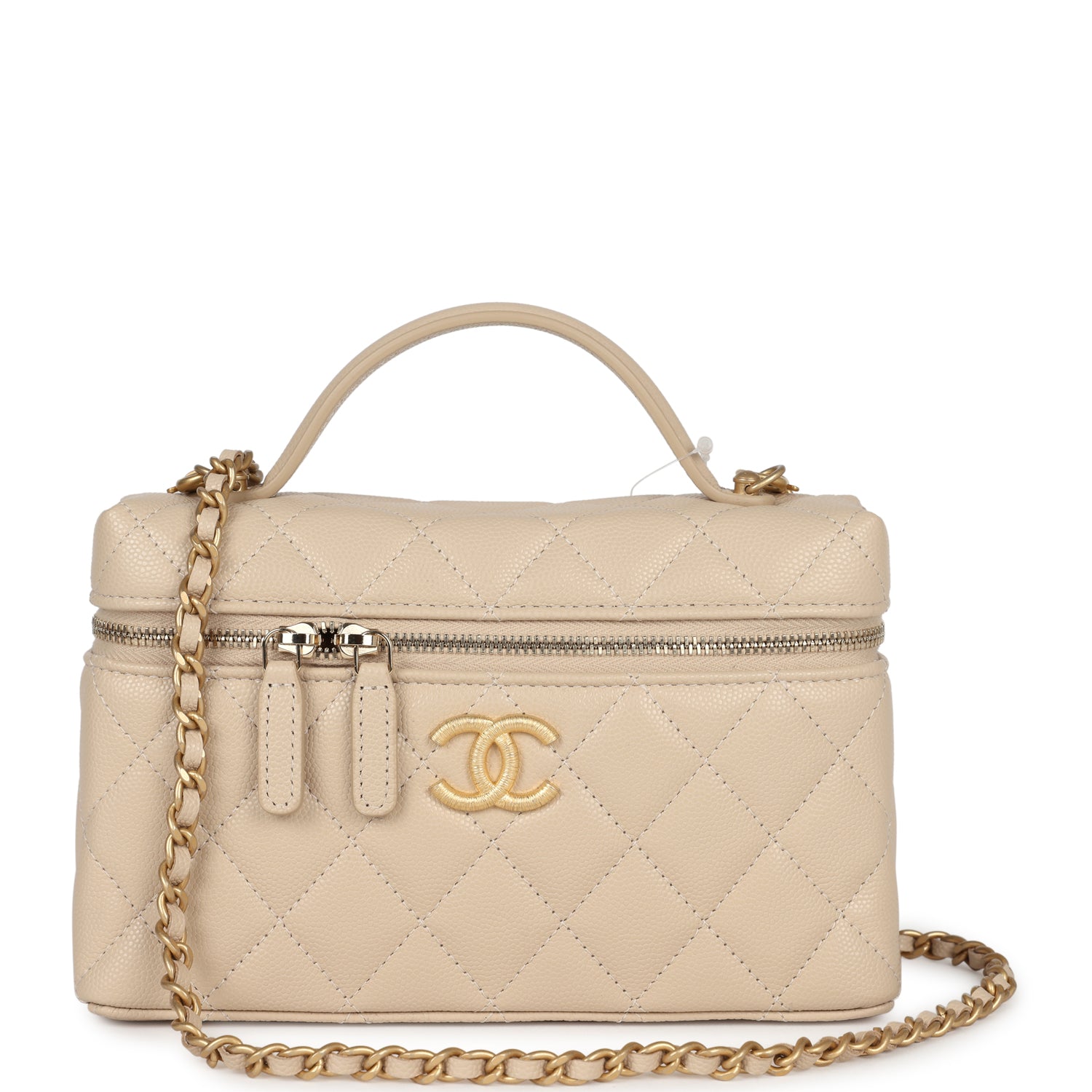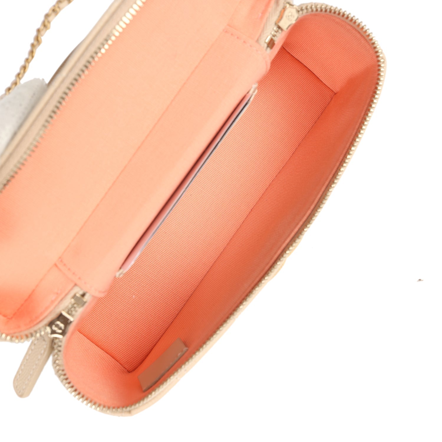 Chanel CC Top Handle Long Vanity Case With Chain Light Beige Shiny Caviar Brushed Gold Hardware