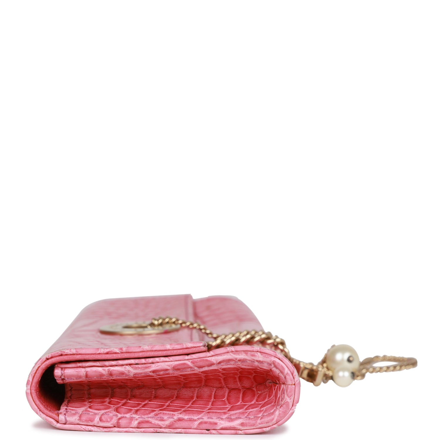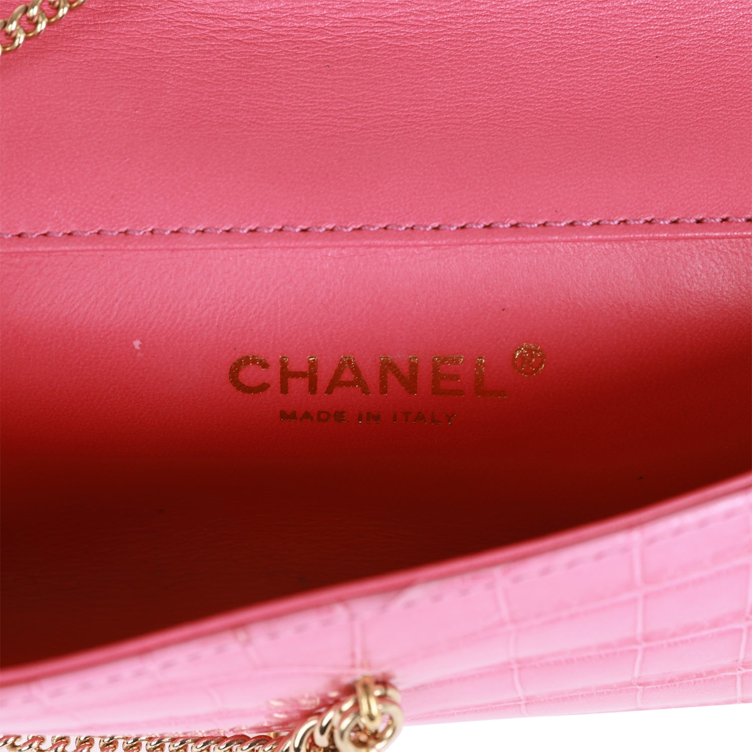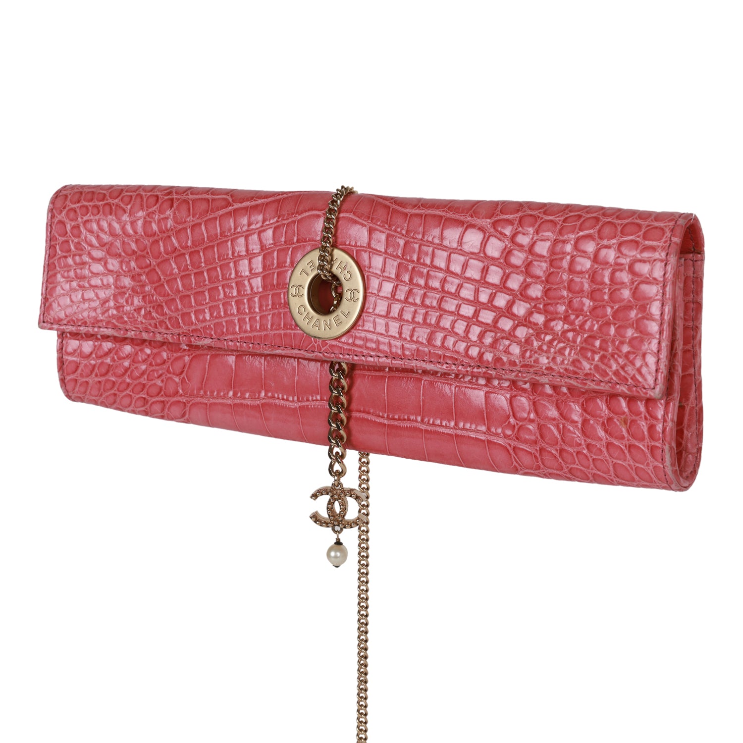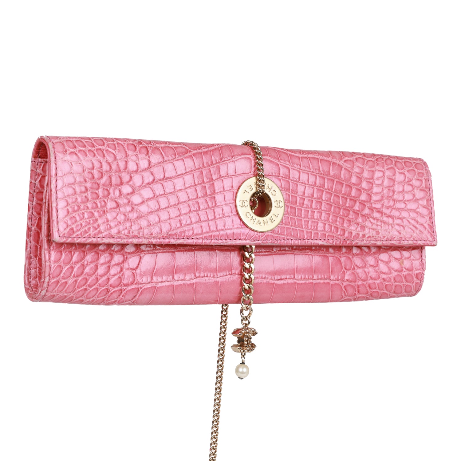 Chanel Chain Envelope Evening Clutch Bag Pink Crocodile Gold Hardware