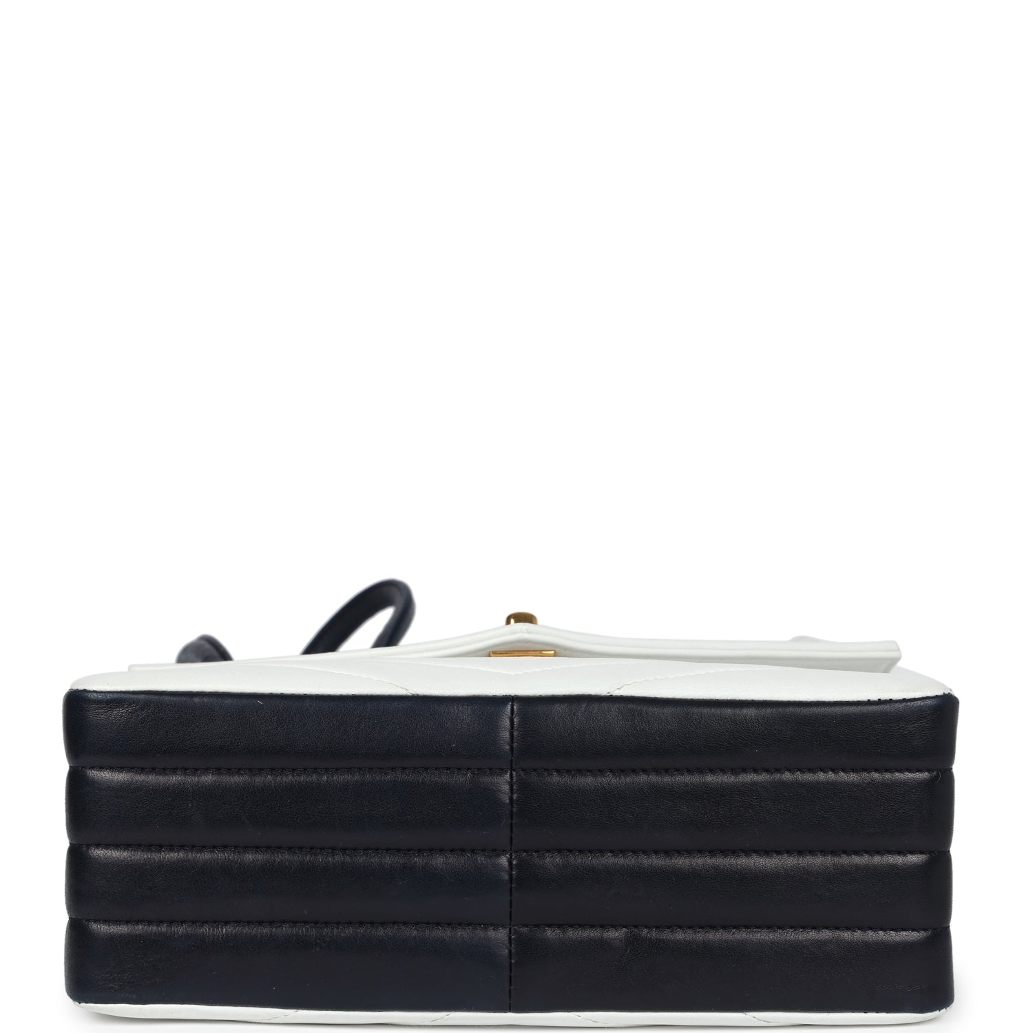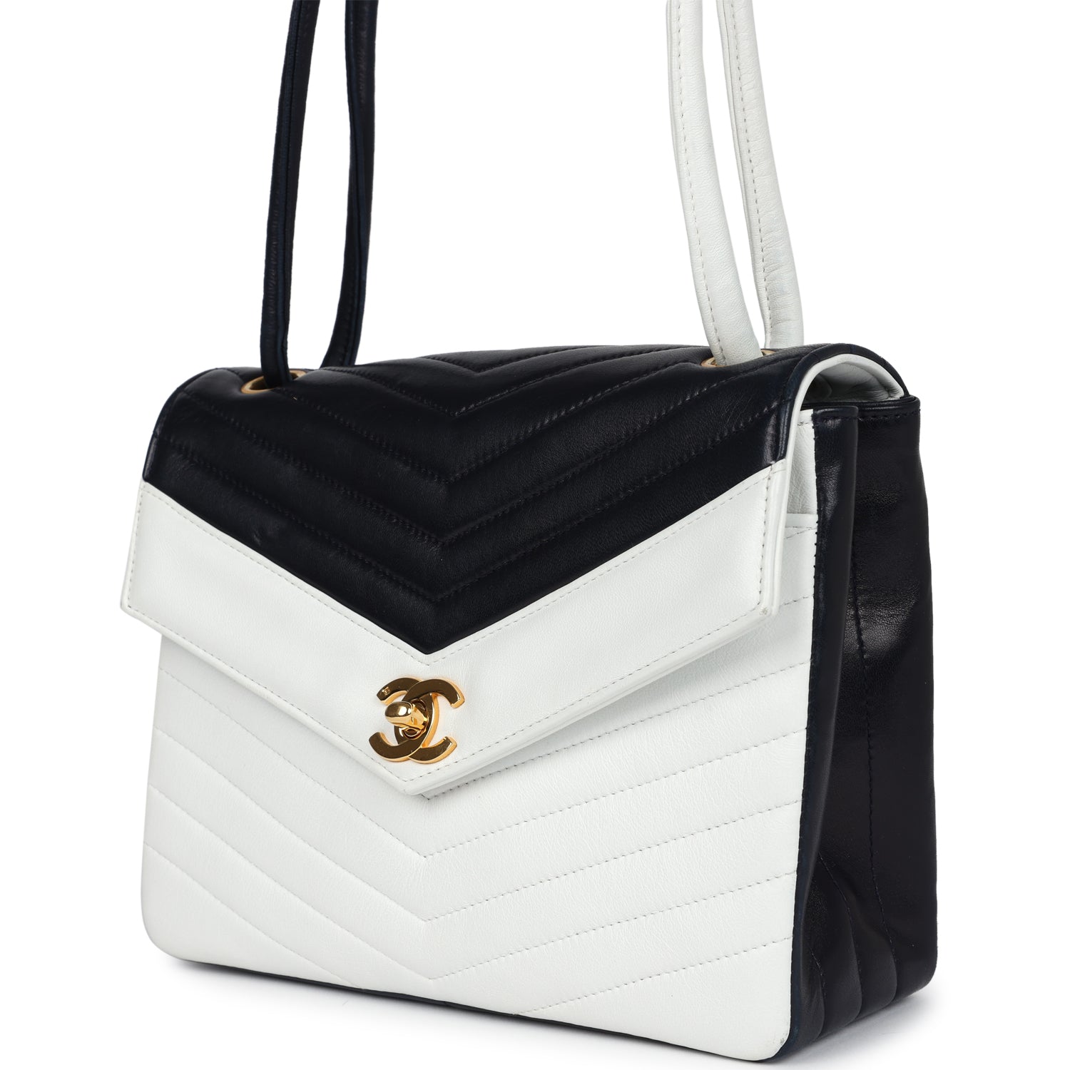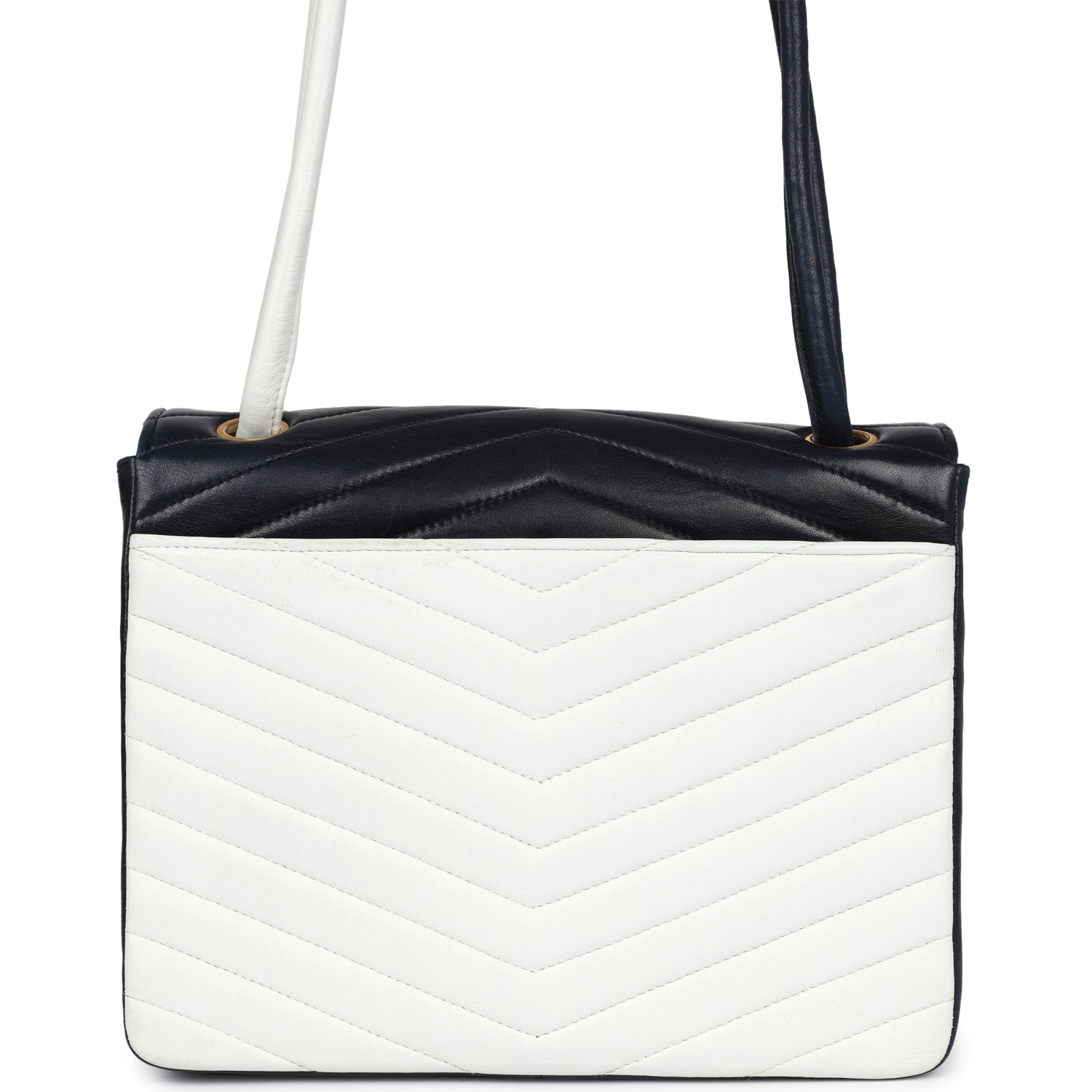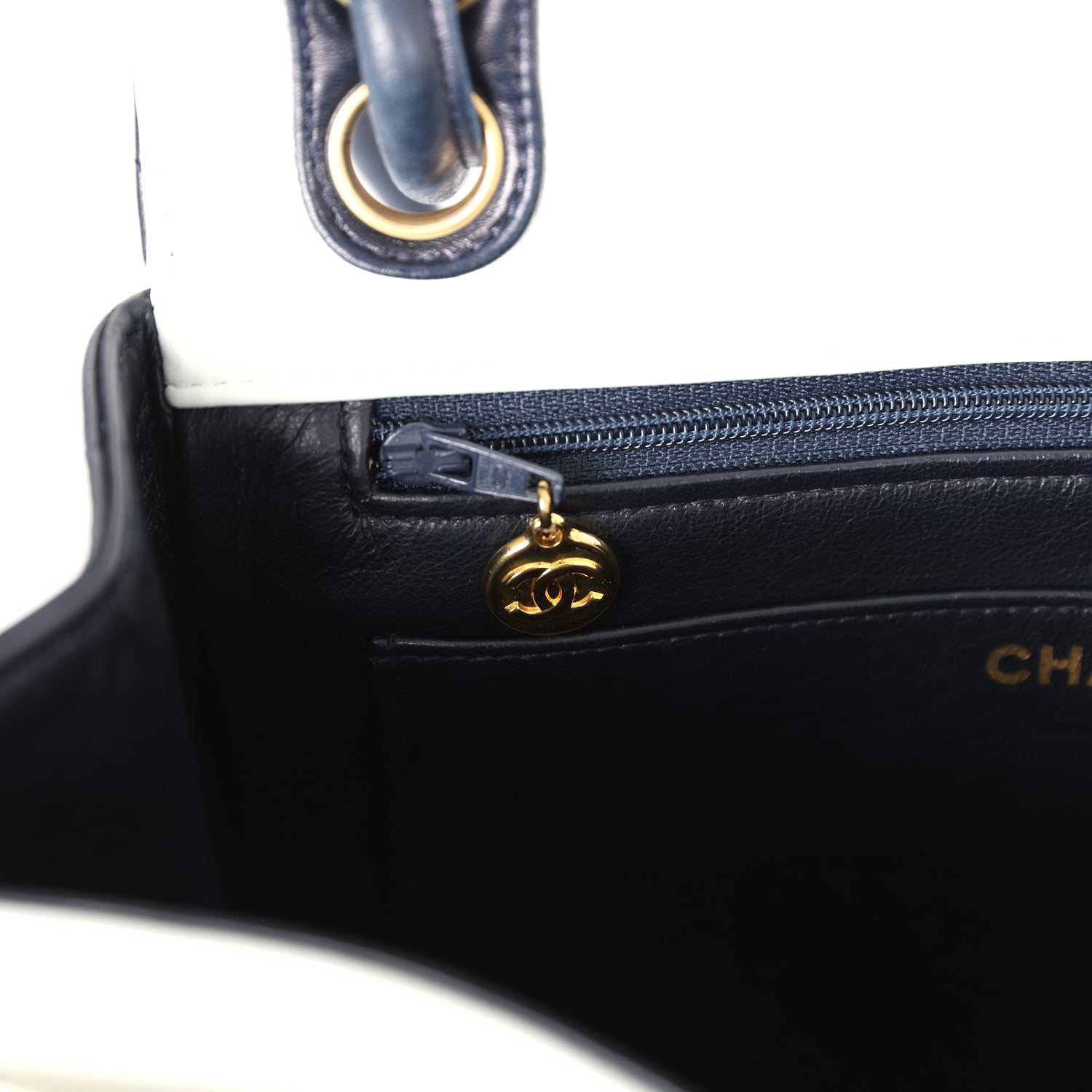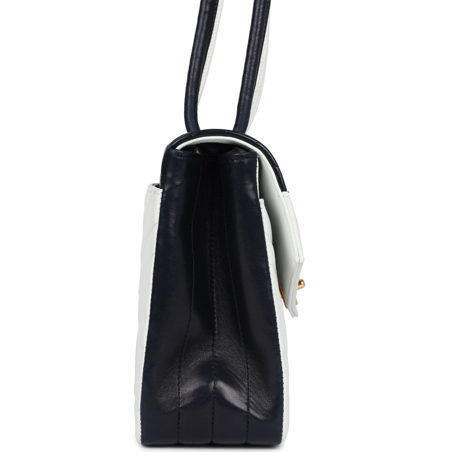 Chanel Chevron Envelope Flap Shoulder Bag Navy and White Lambskin Gold Hardware
