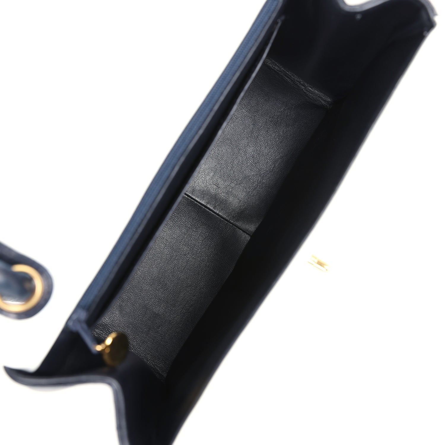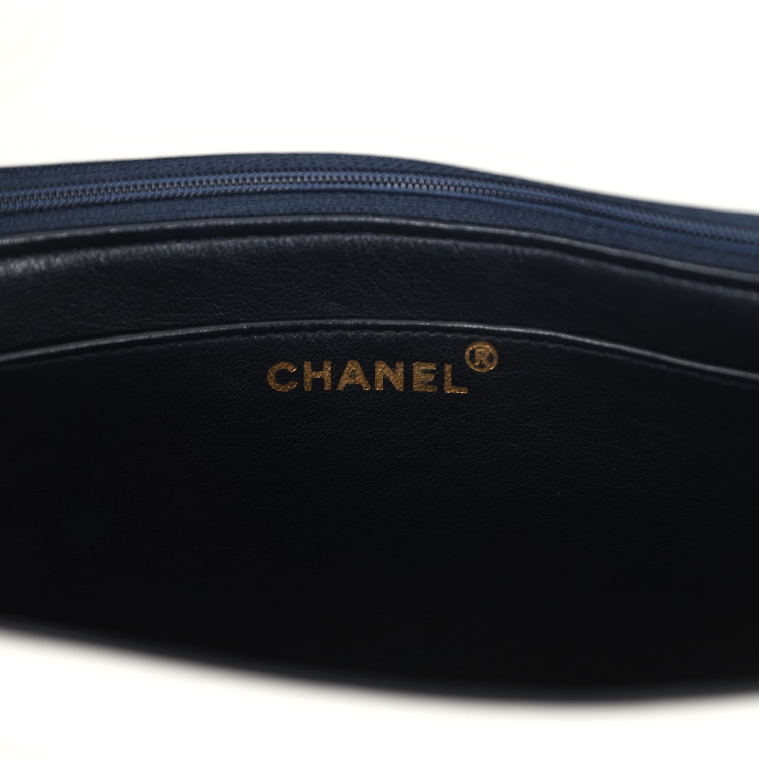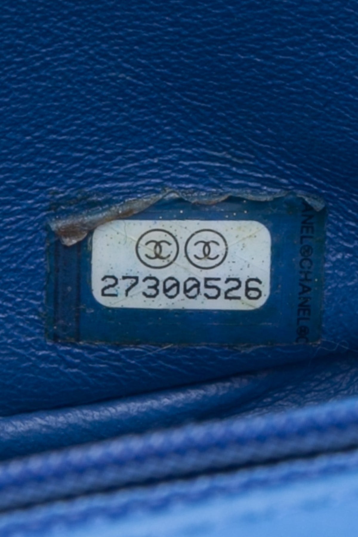 Regular price $2,390.00 Sale price $450.00 Save $1,940.00The chic cross-body is finely crafted of luxurious royal blue chevron-quilted lambskin leather. The bag features a leather-threaded gold chain-link shoulder strap and a matching gold classic CC turn-lock on the crossover flap. This opens the bag to a smooth blue leather interior with zipper and patch pocket.