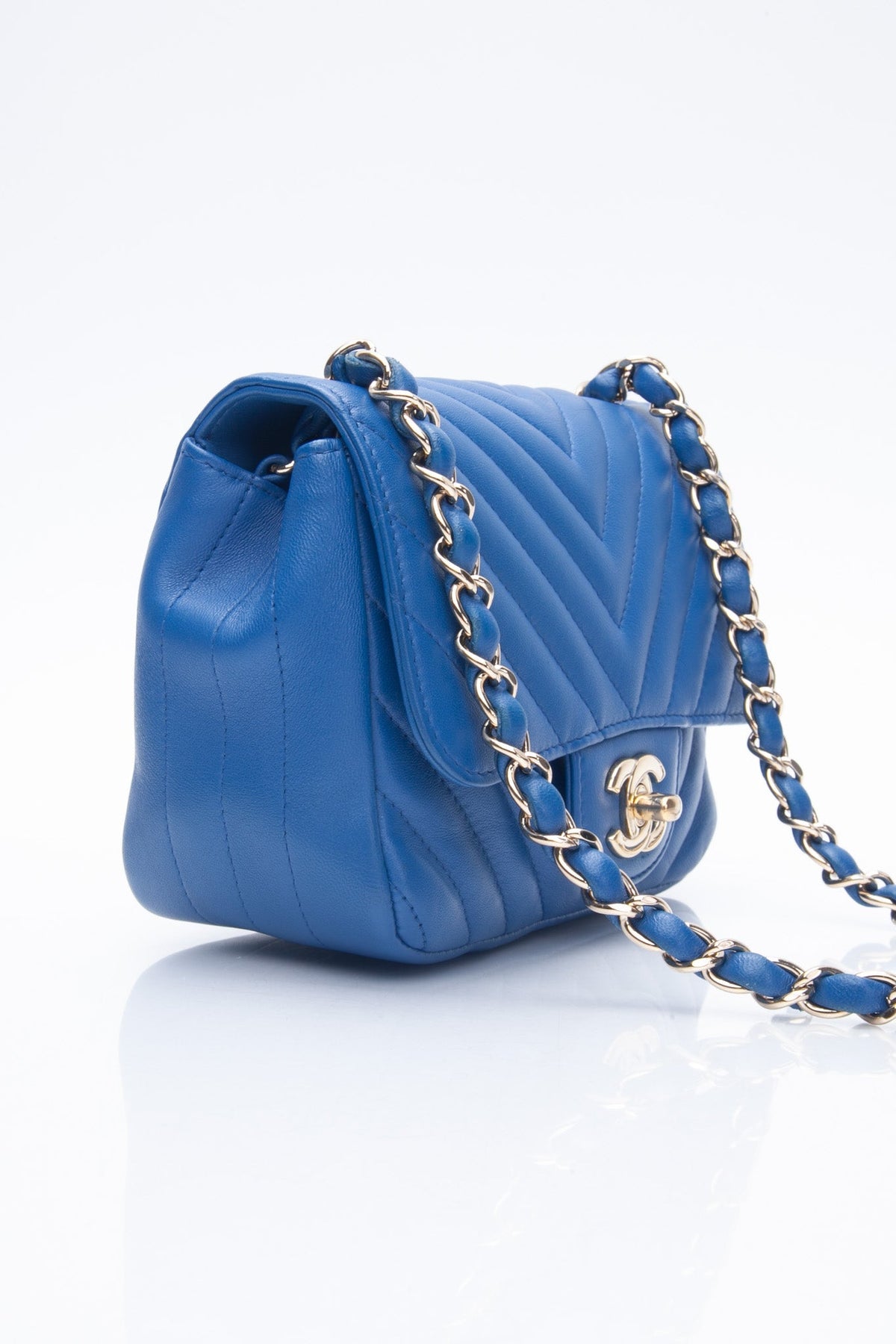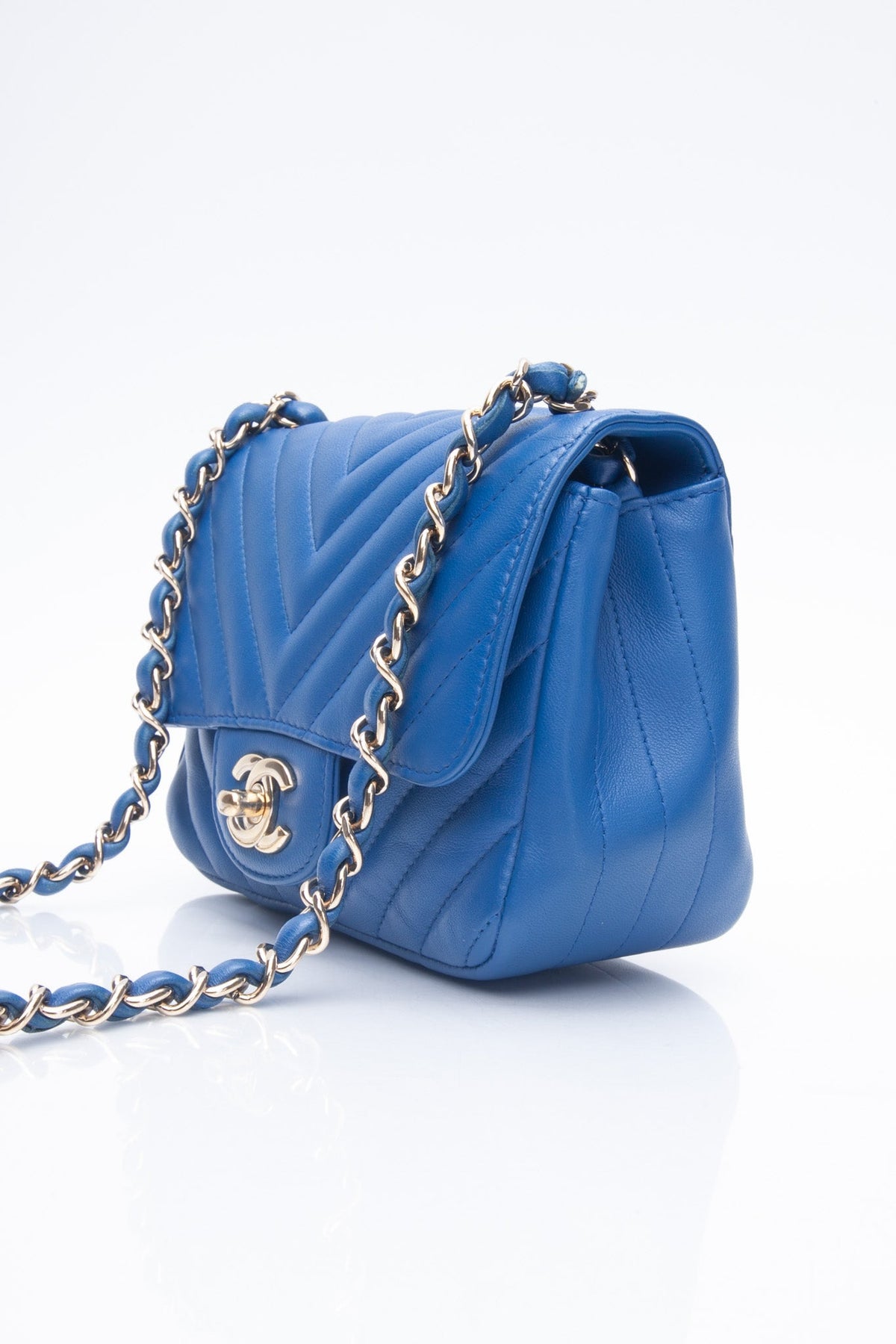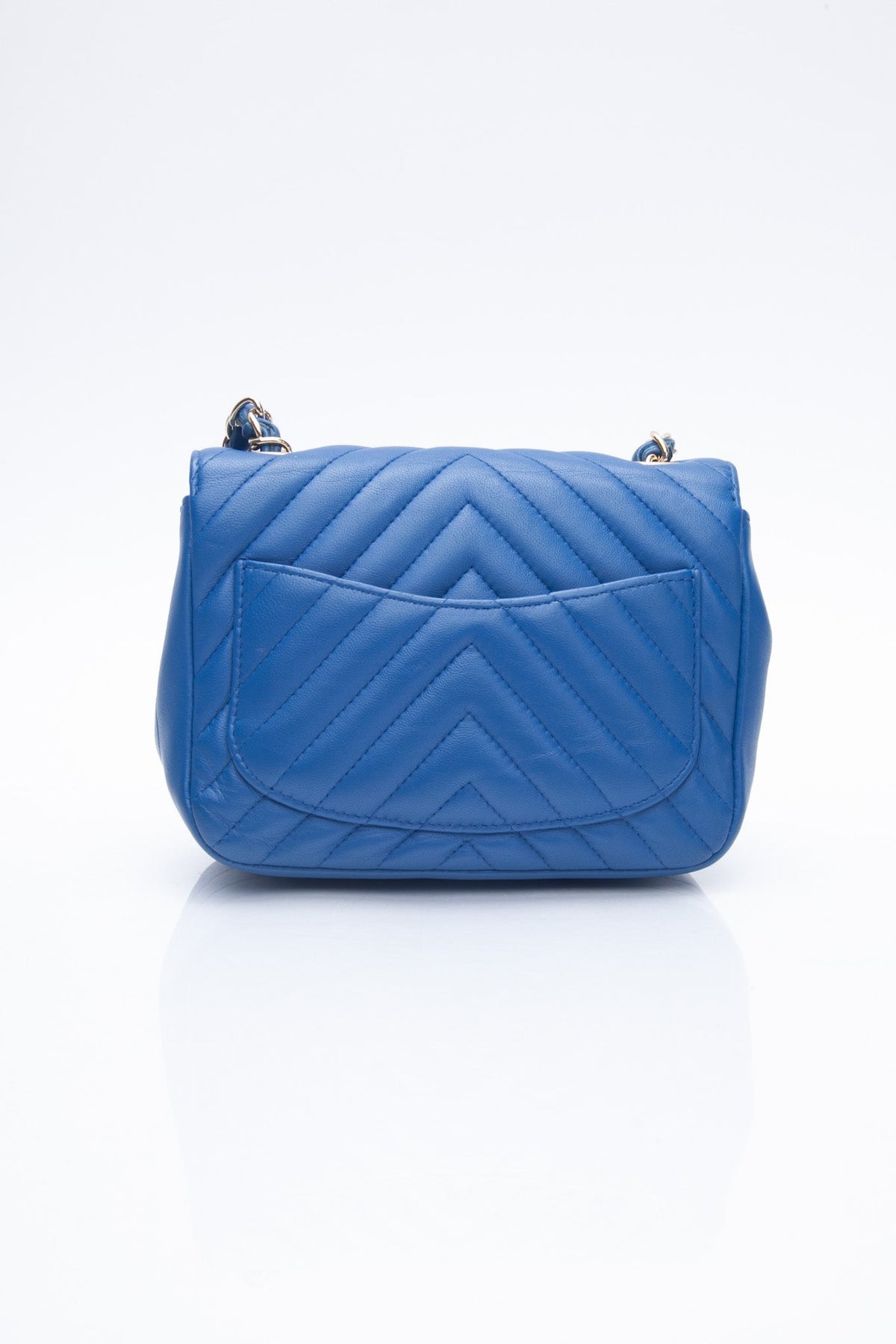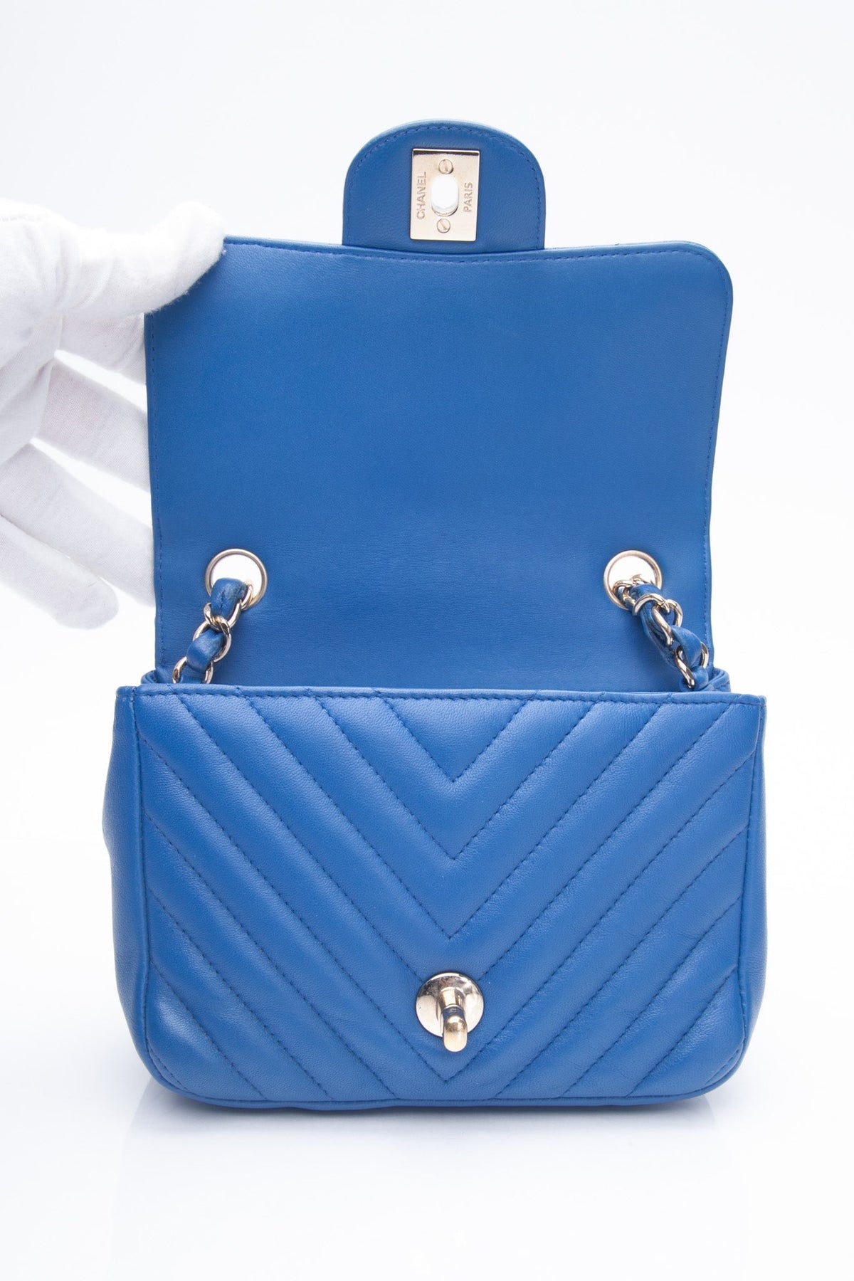 CHANEL Chevron Lambskin Blue Leather Square Mini Flap Bag