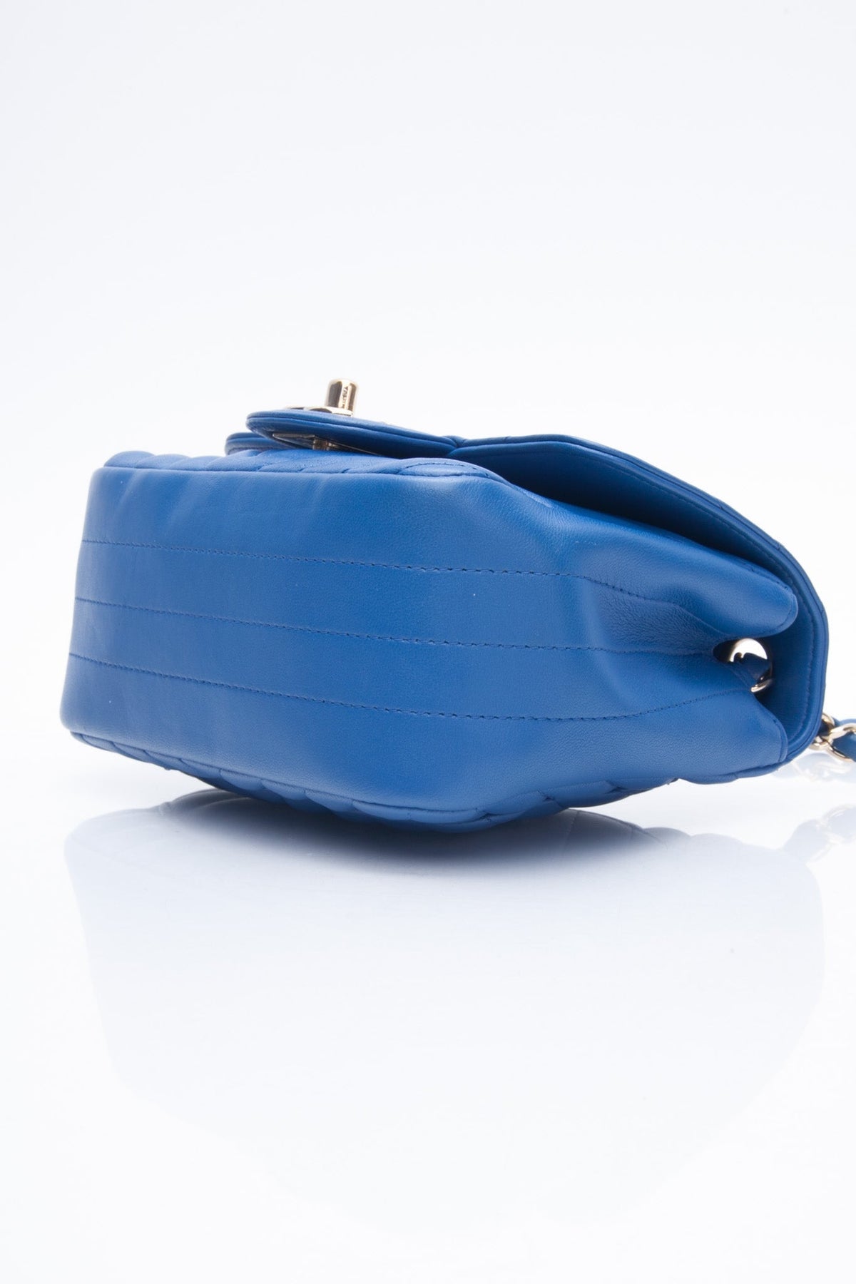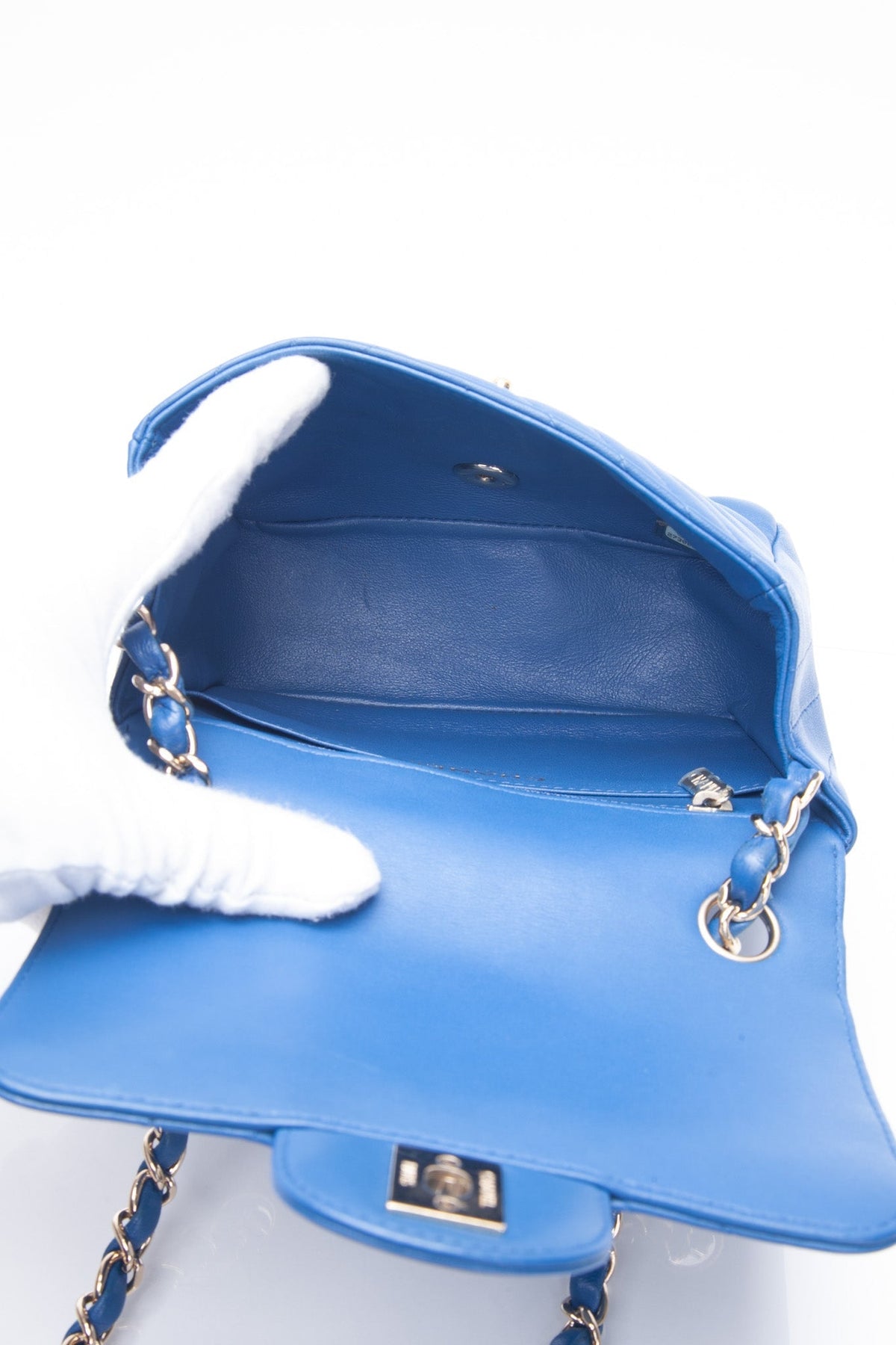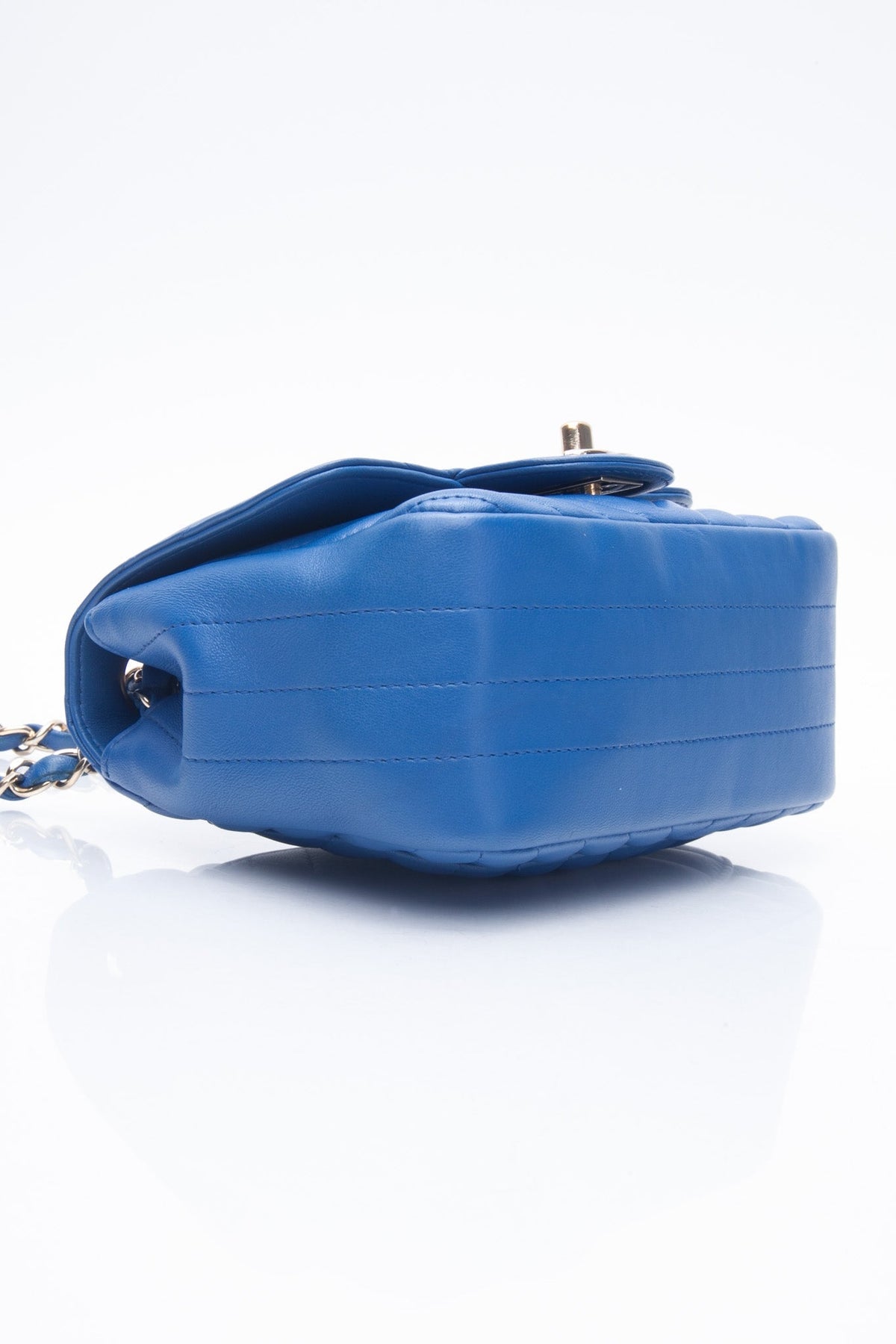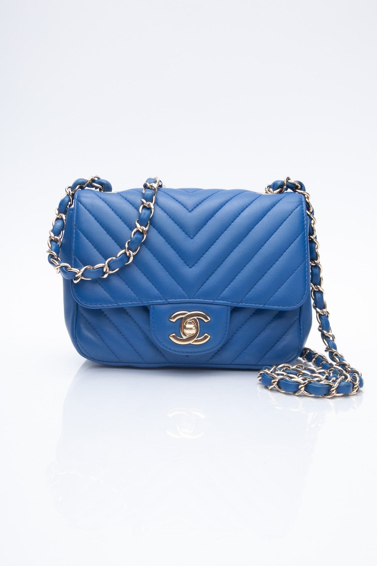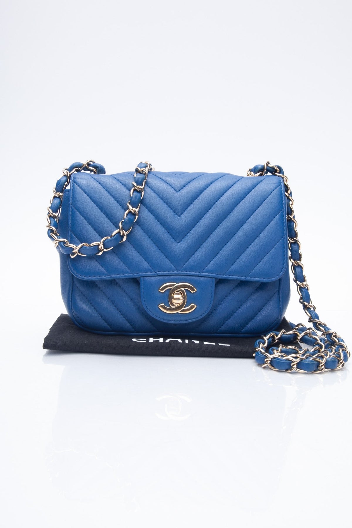CHANEL Chevron Lambskin Blue Leather Square Mini Flap Bag