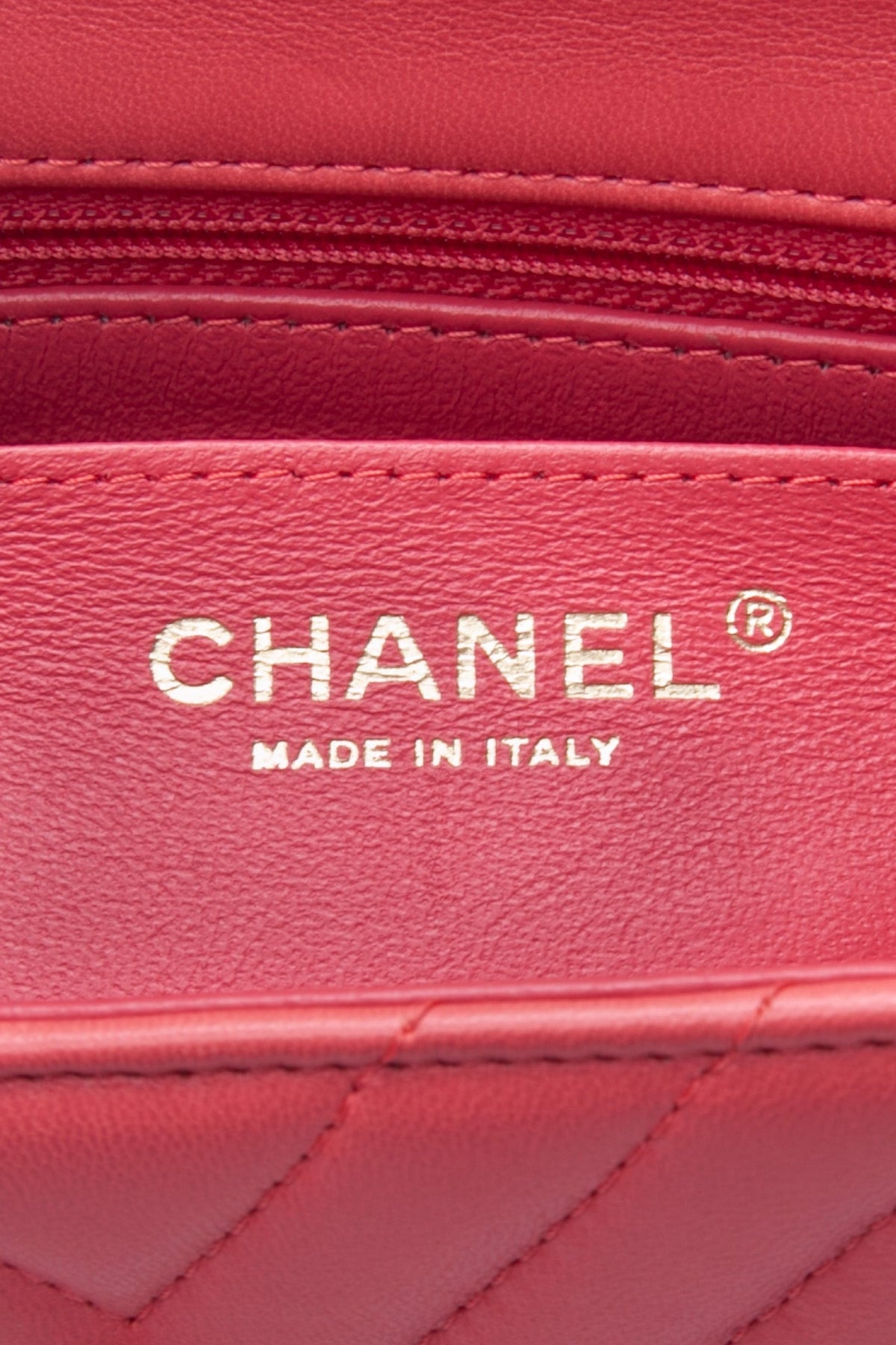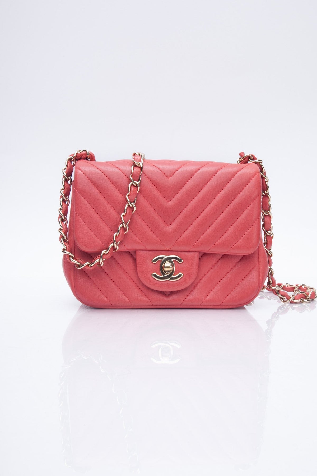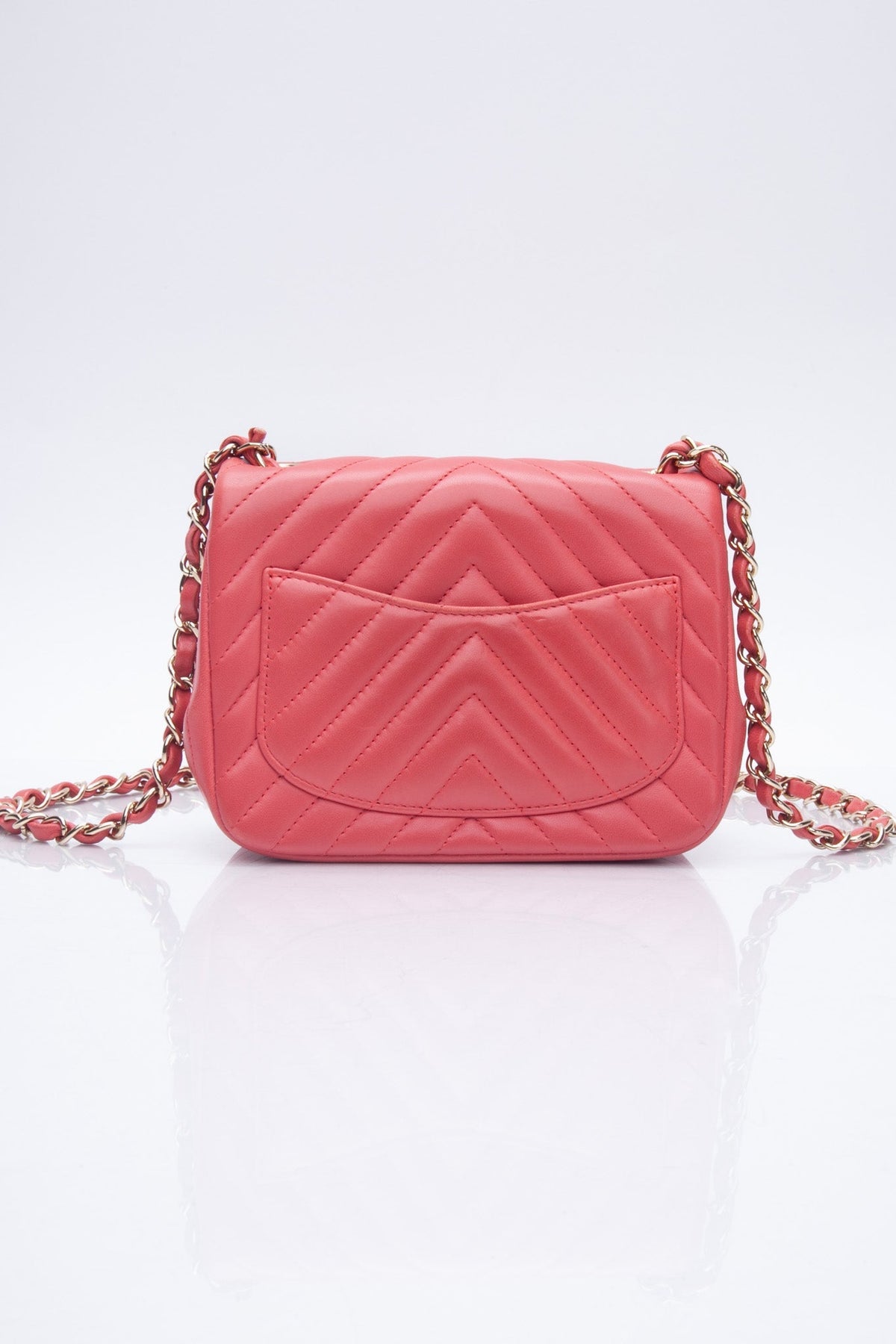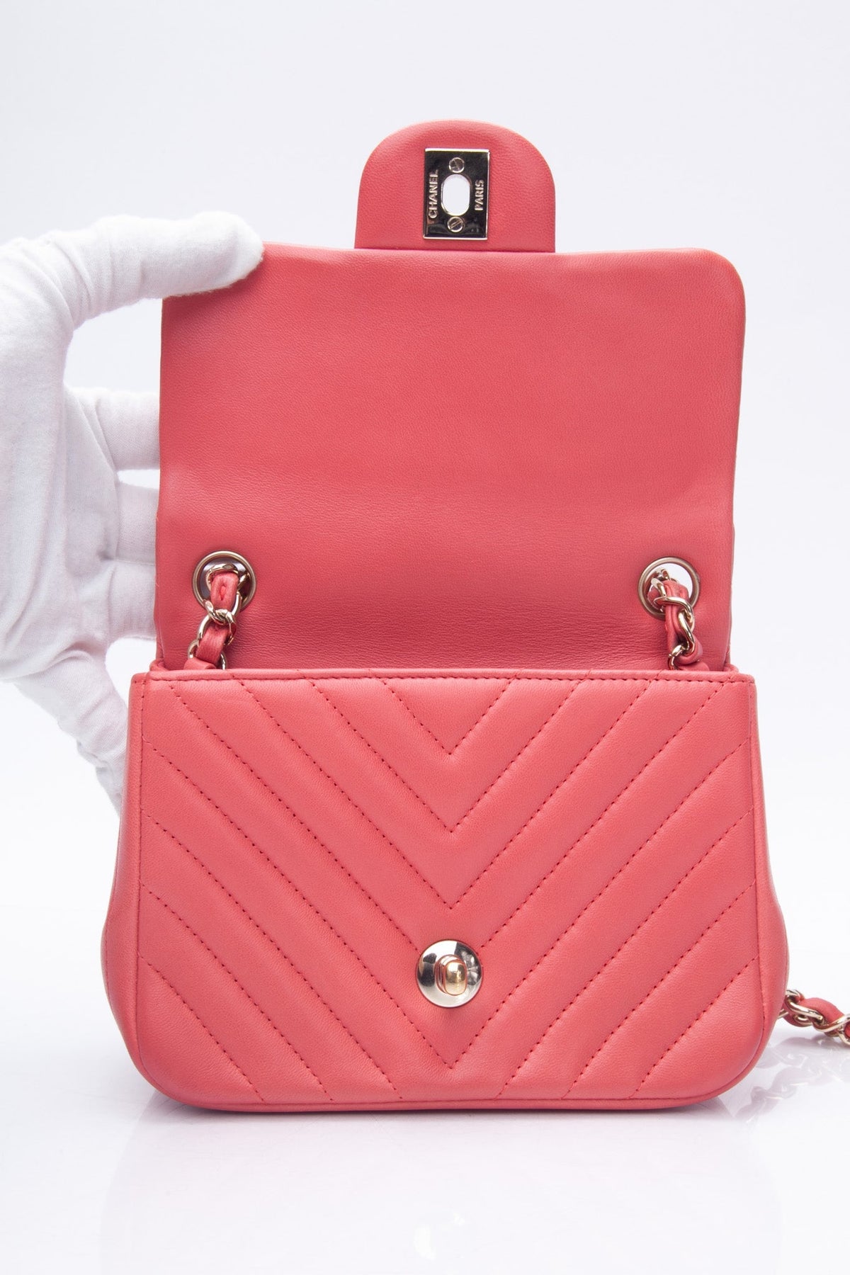 CHANEL Chevron Pink Lambskin Square Mini Flap Bag