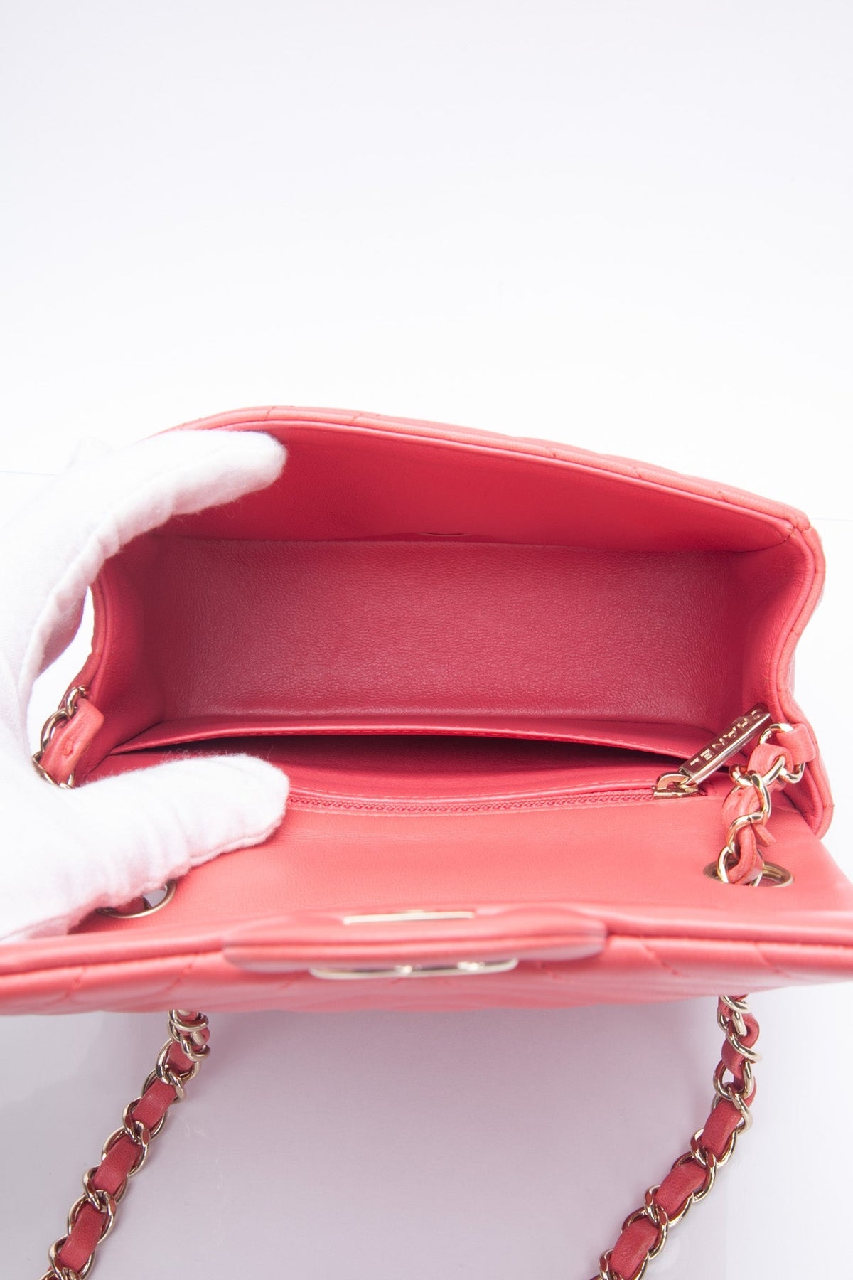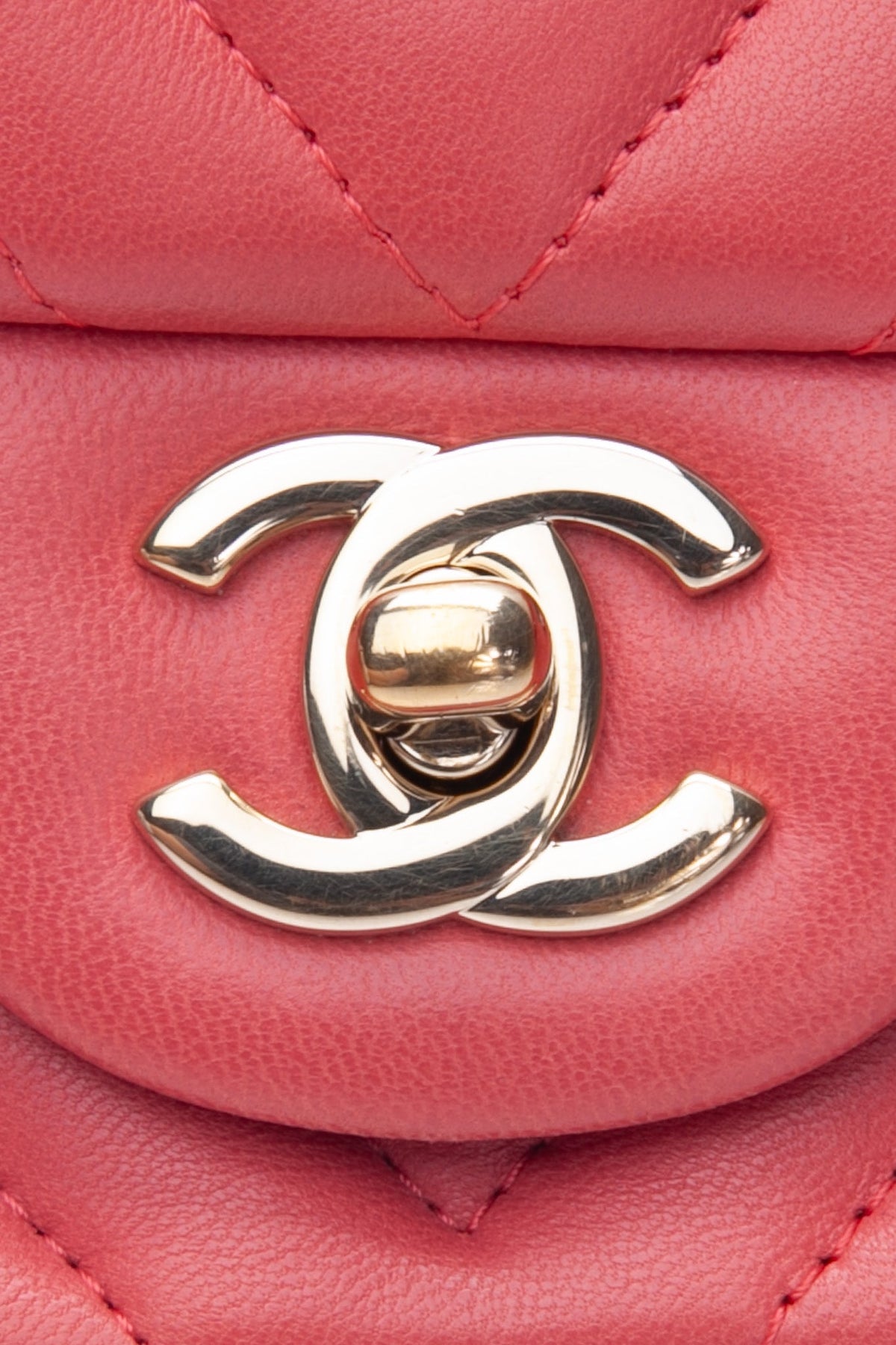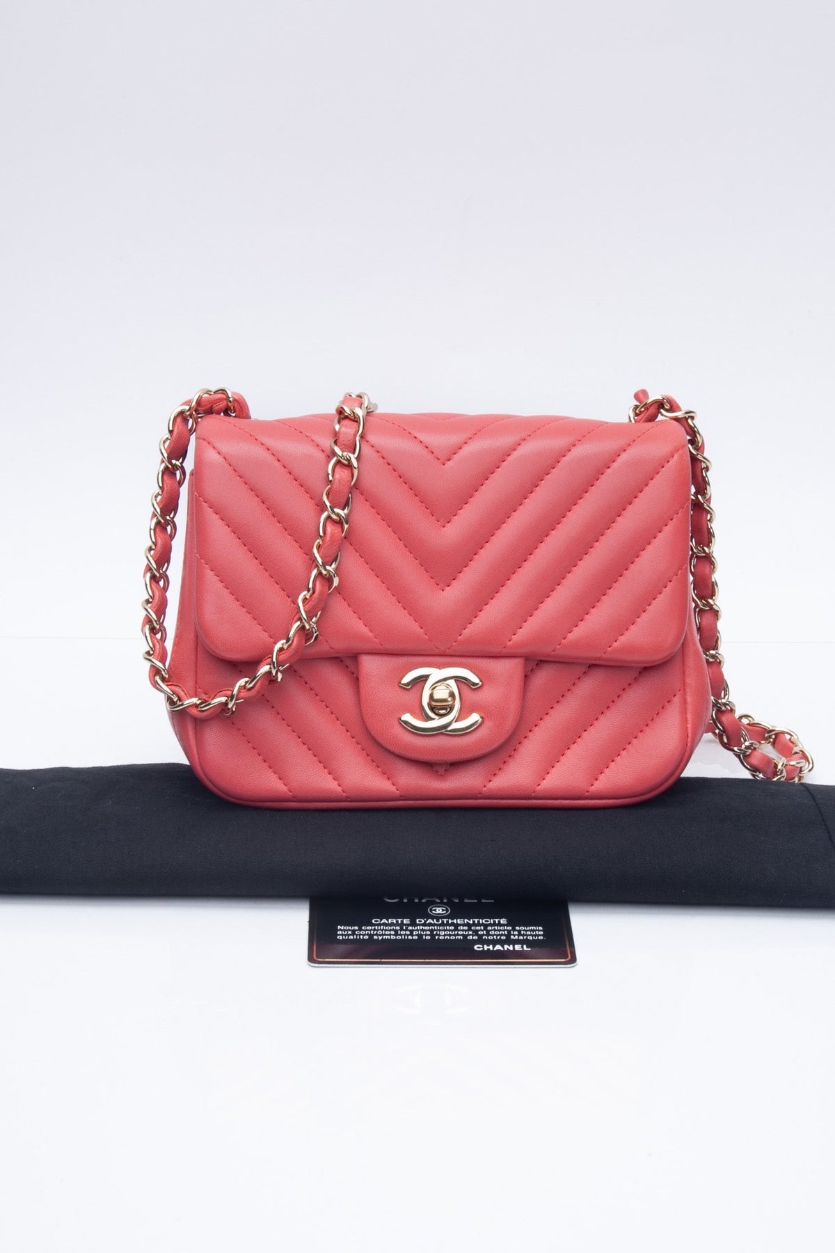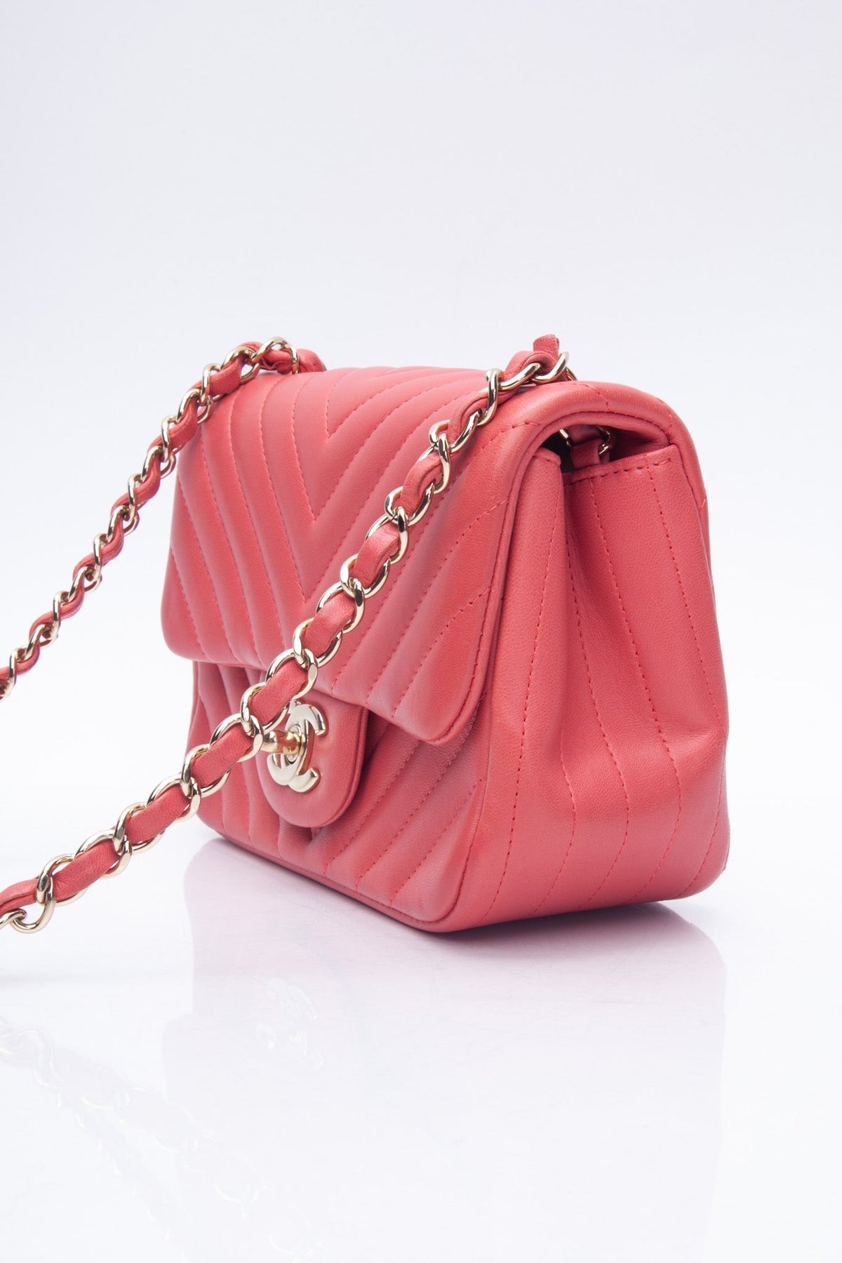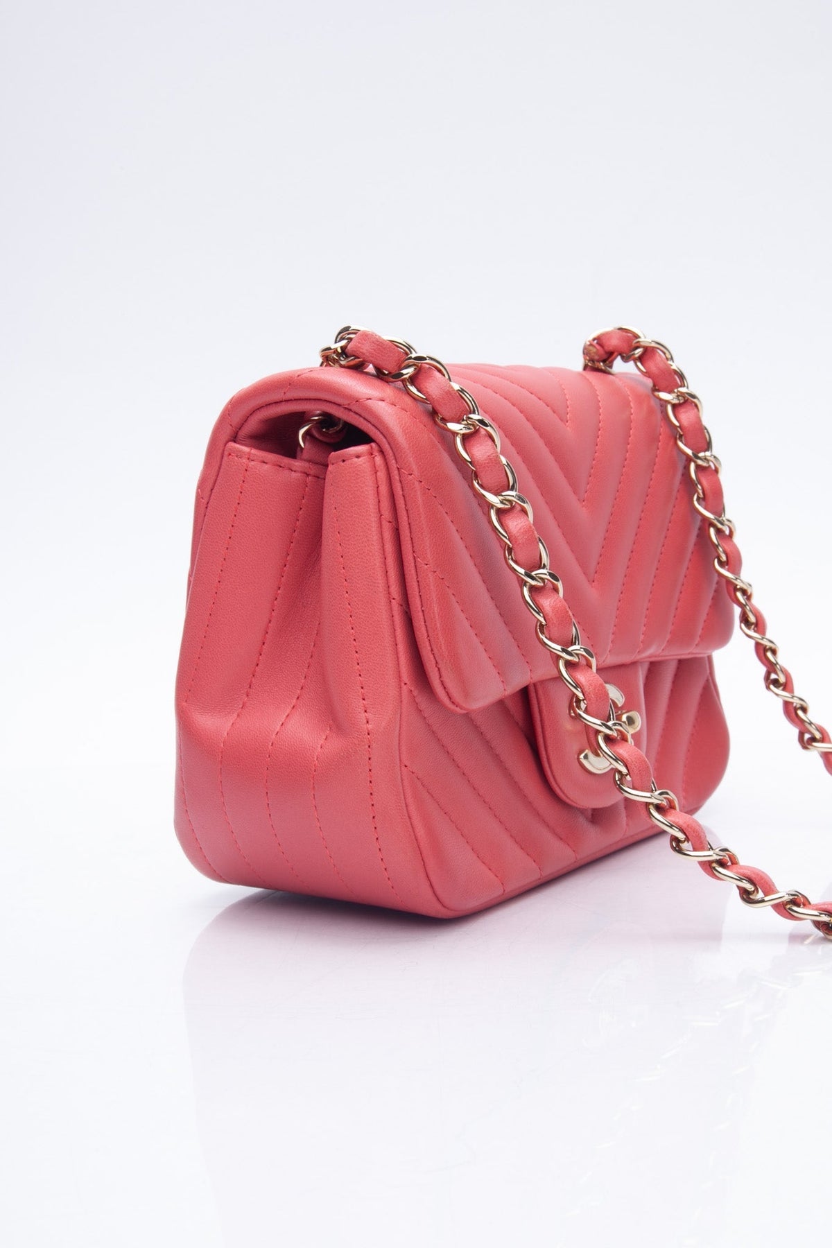CHANEL Chevron Pink Lambskin Square Mini Flap Bag