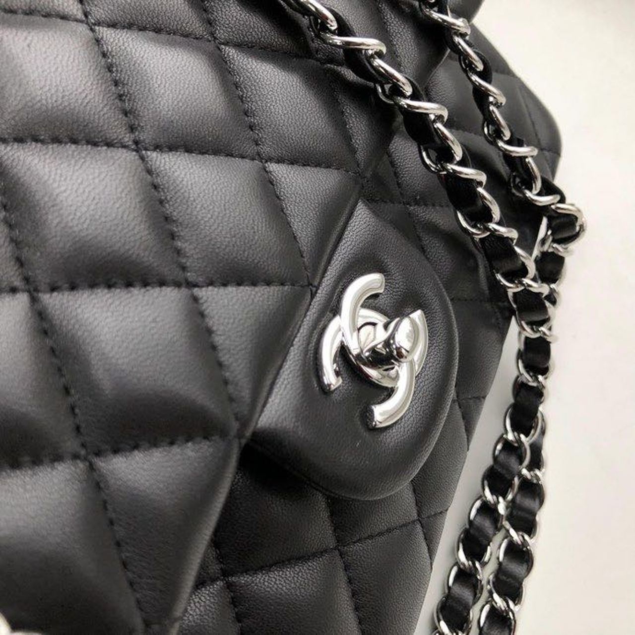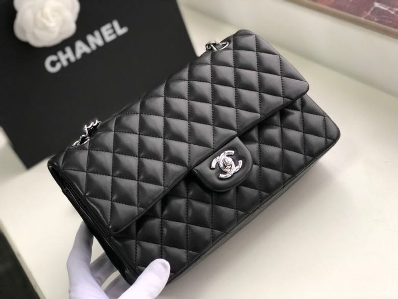 Chanel Classic Flap Bag 25cm Silver Hardware Lambskin Leather Spring/Summer Collection Black