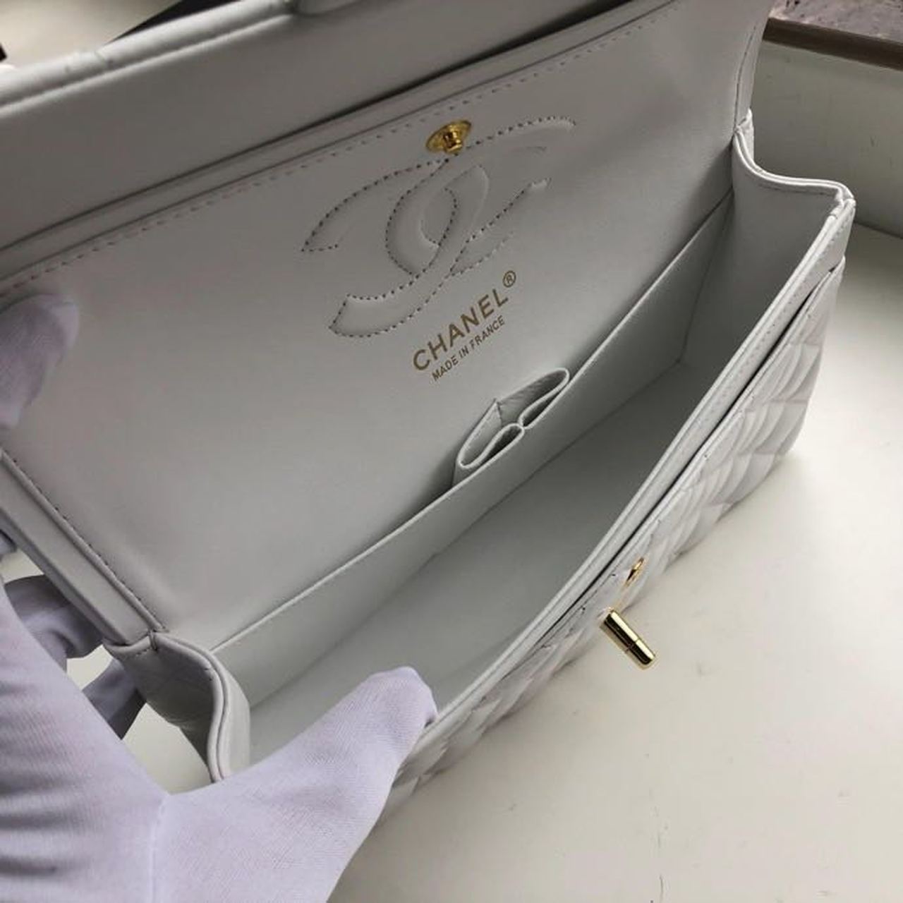 Chanel Classic Flap Bag 25cm Gold Hardware Lambskin Leather Spring/Summer Collection White